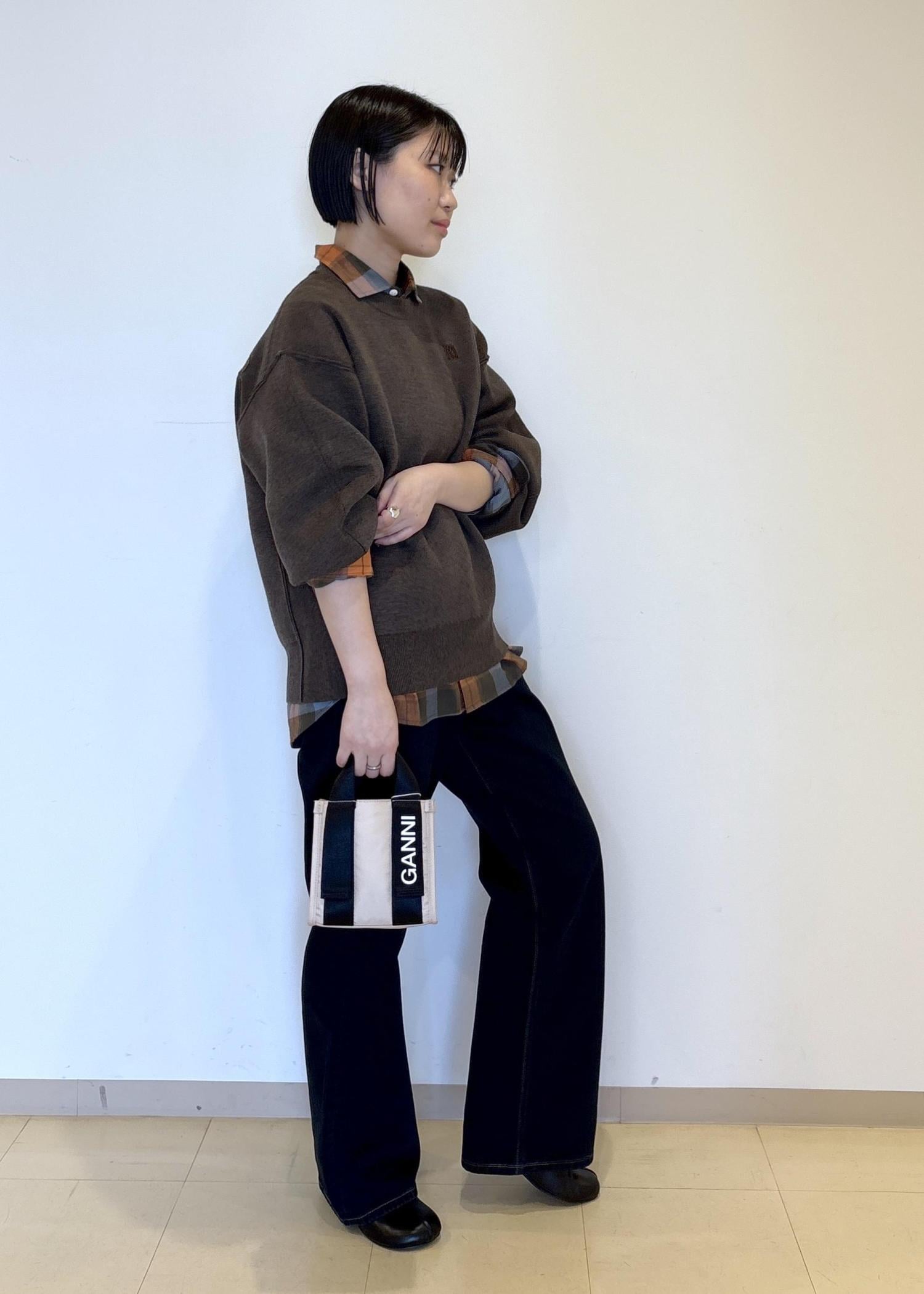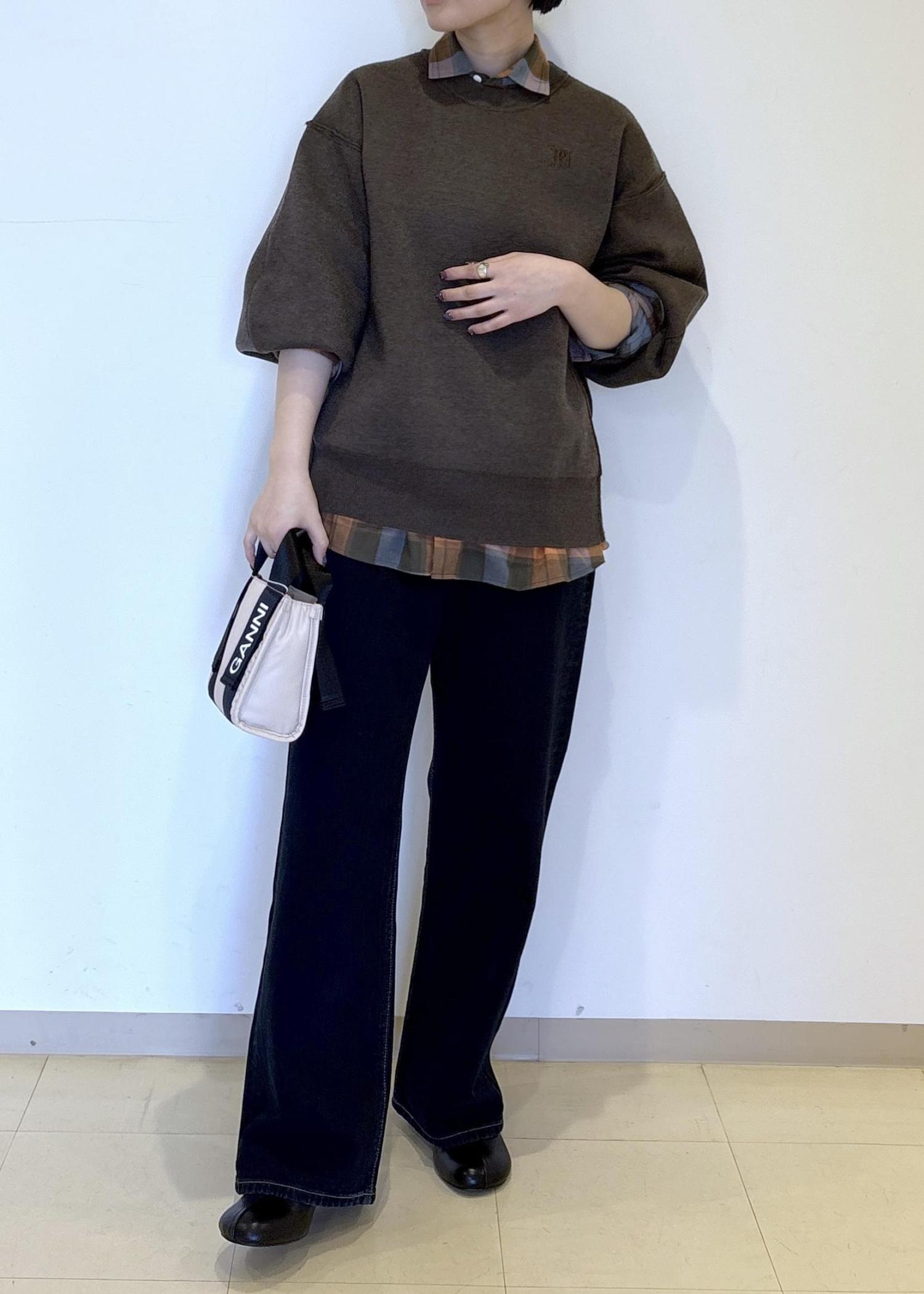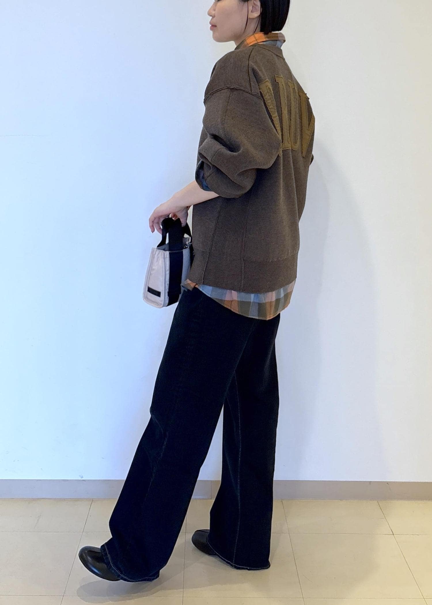 一枚でも素敵ですがチェックシャツやロンTとレイヤードするのも秋冬のおしゃれな楽しみですね。