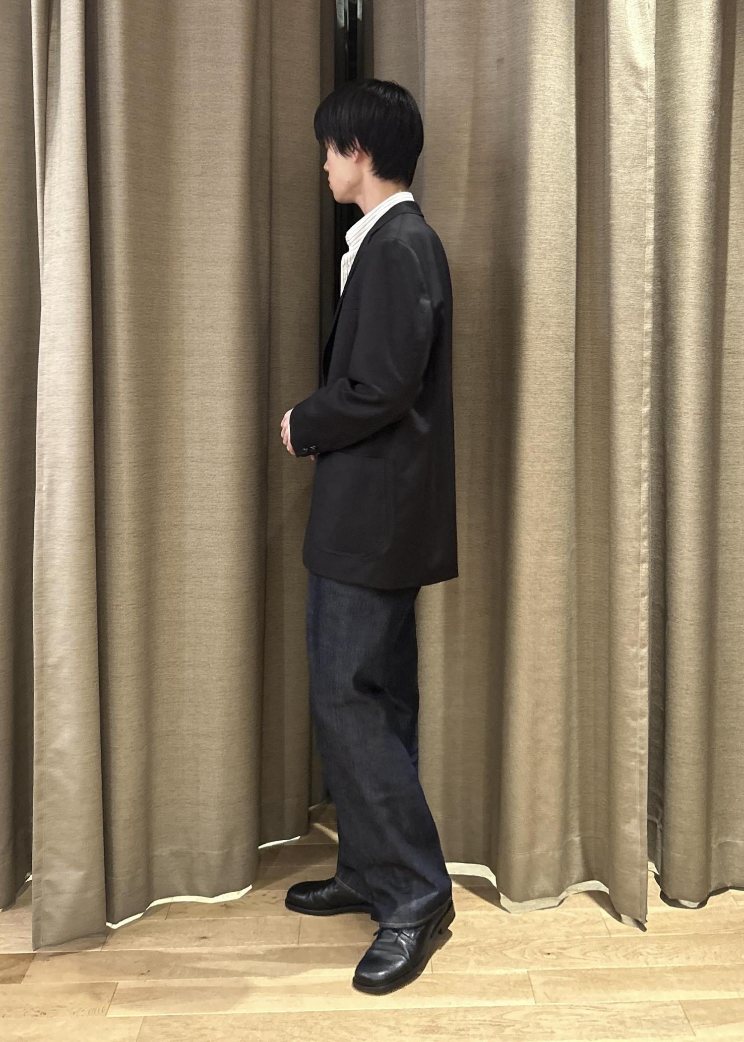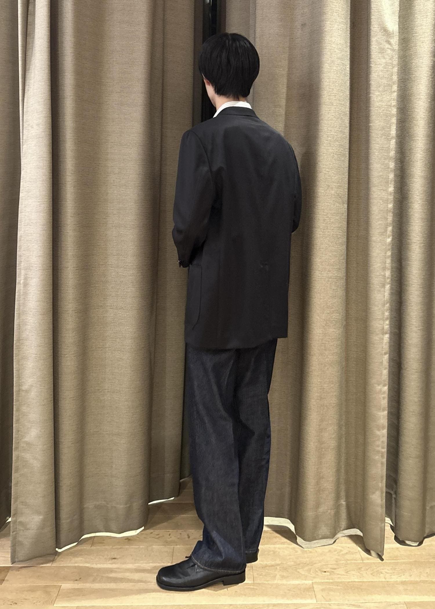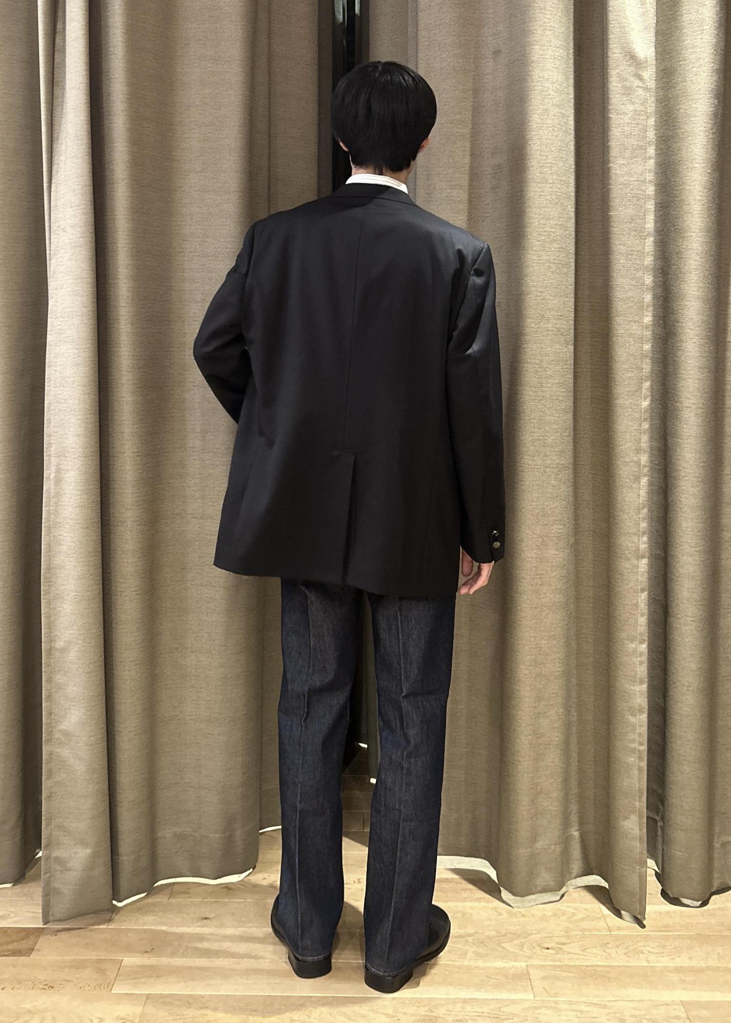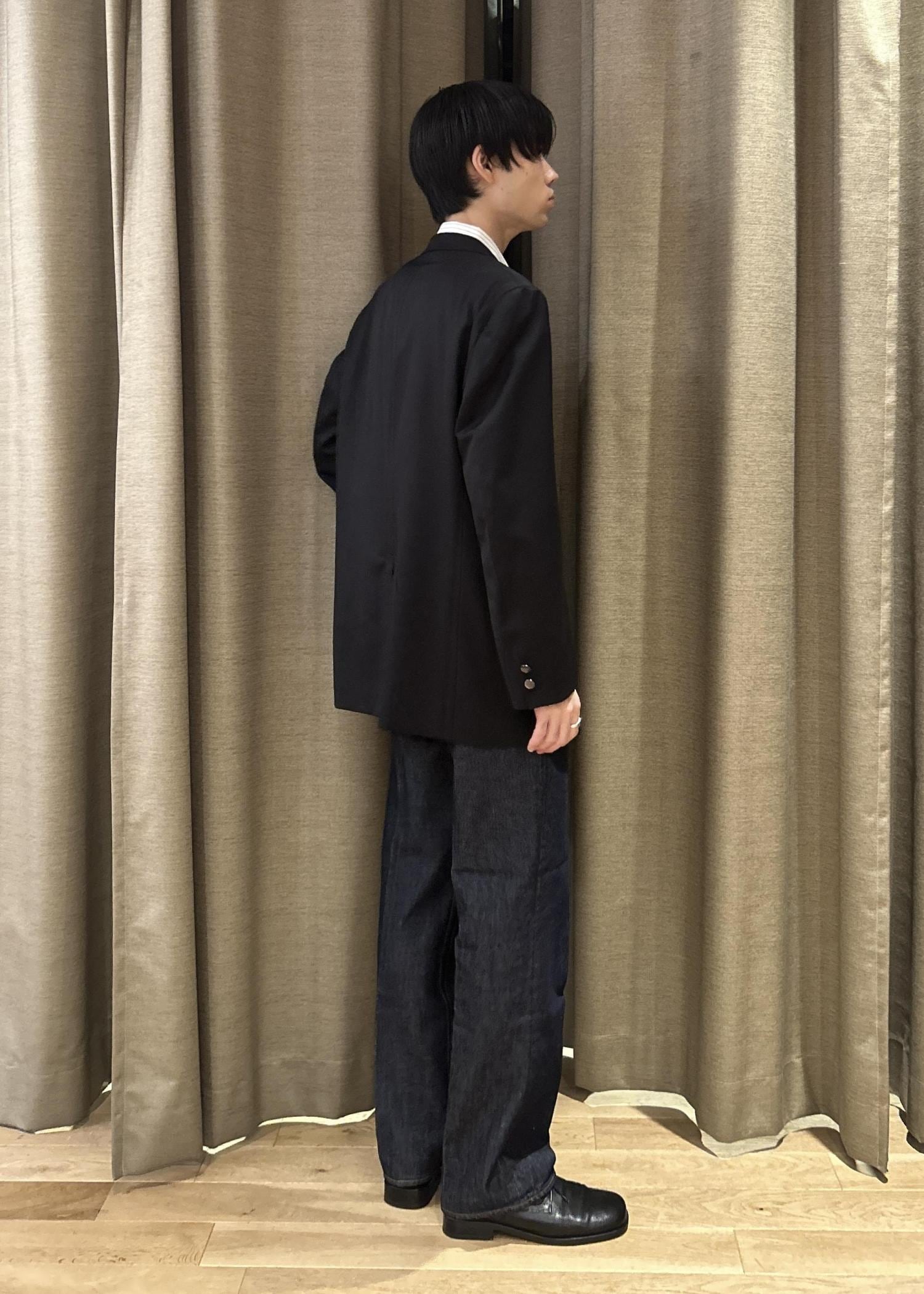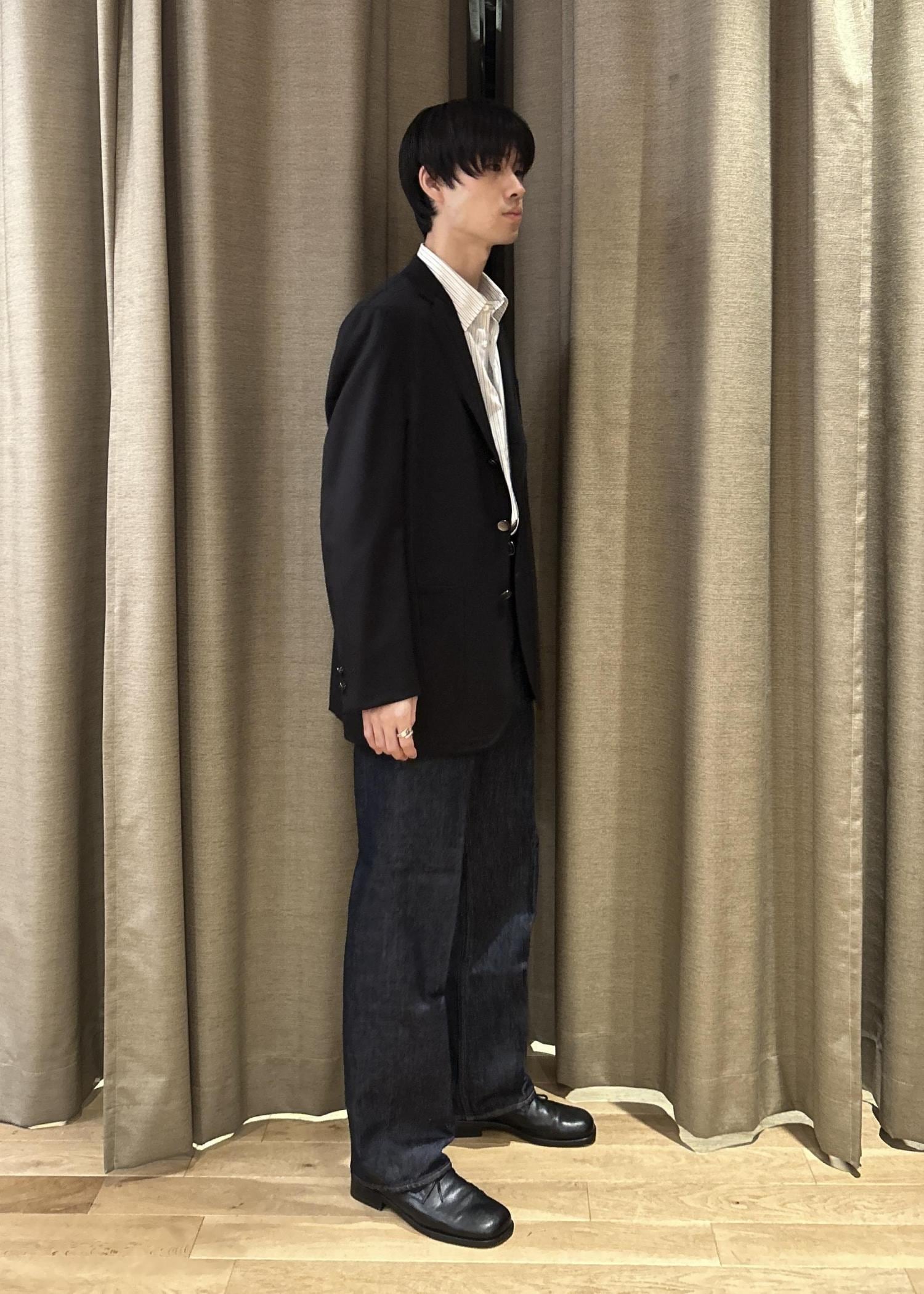 王道のデニム合わせでも濃紺でセンタープレスの入ったキレイめな印象のAURALEEのデニムで合わせて、別注ブルックスのモードな雰囲気を壊さないスタイリングにしました。