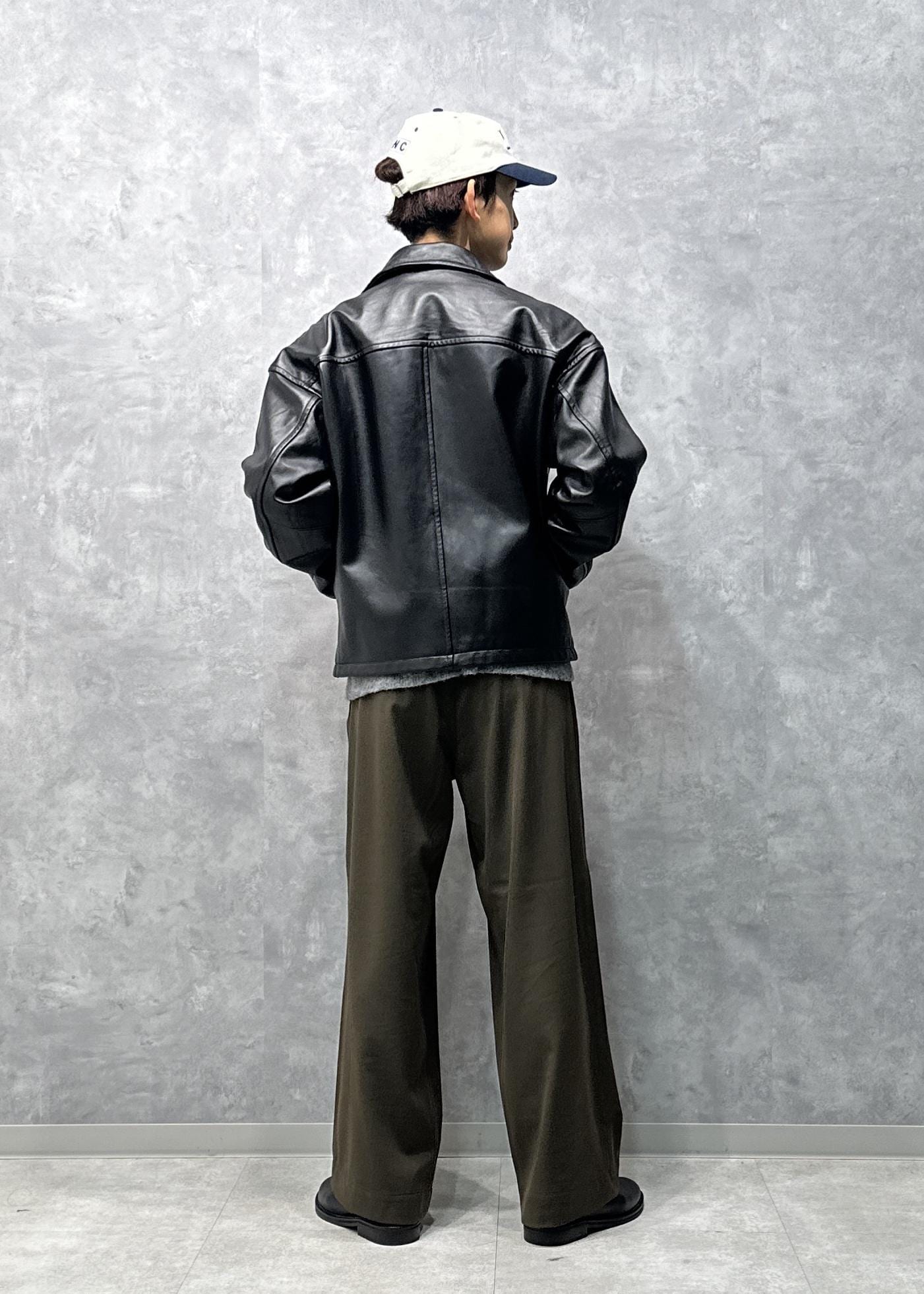 ニュージーランド産ラムレザーを使用したレザージャケット。今っぽい大きいサイズ感です。滑らかで硬すぎないので新品の状態でも着やすいかと。経年変化も楽しめるので、年齢を重ねていってもずっと気に入って着用していただけたら嬉しいです。