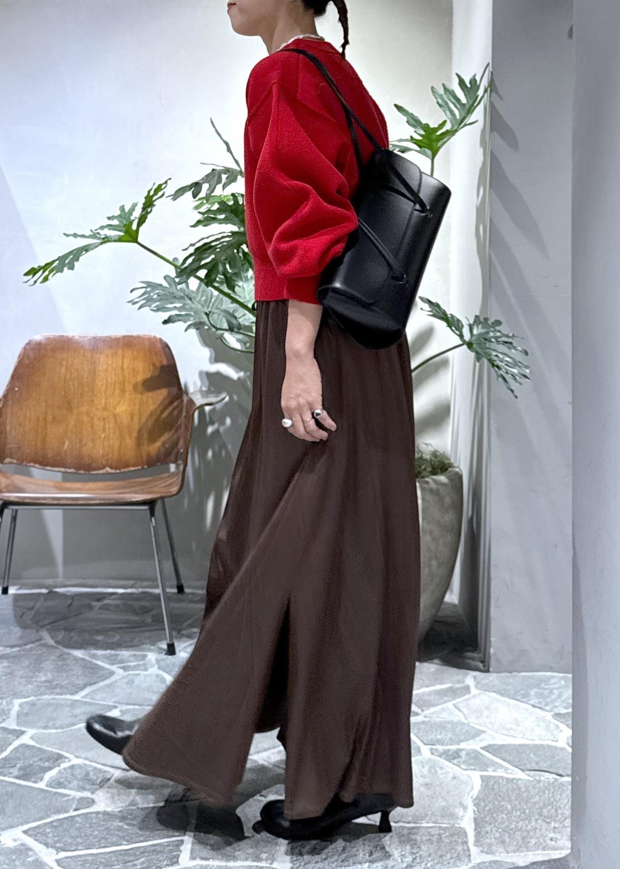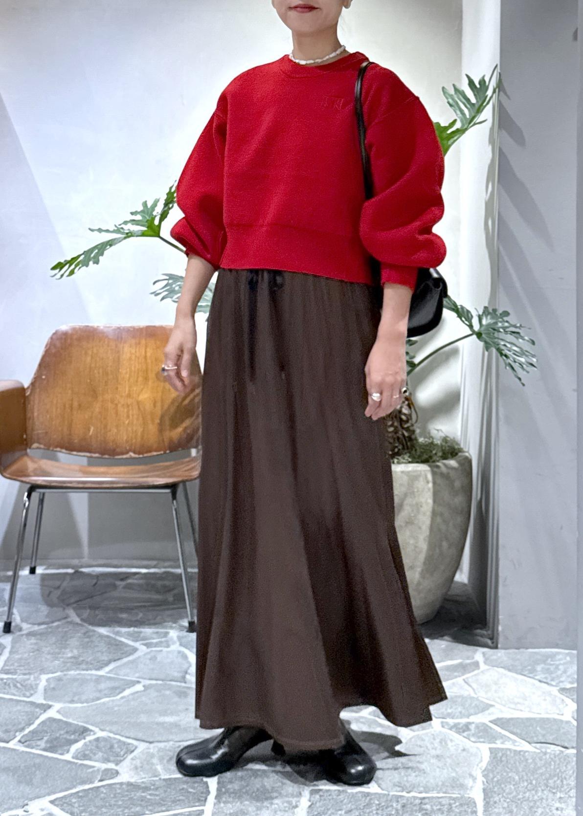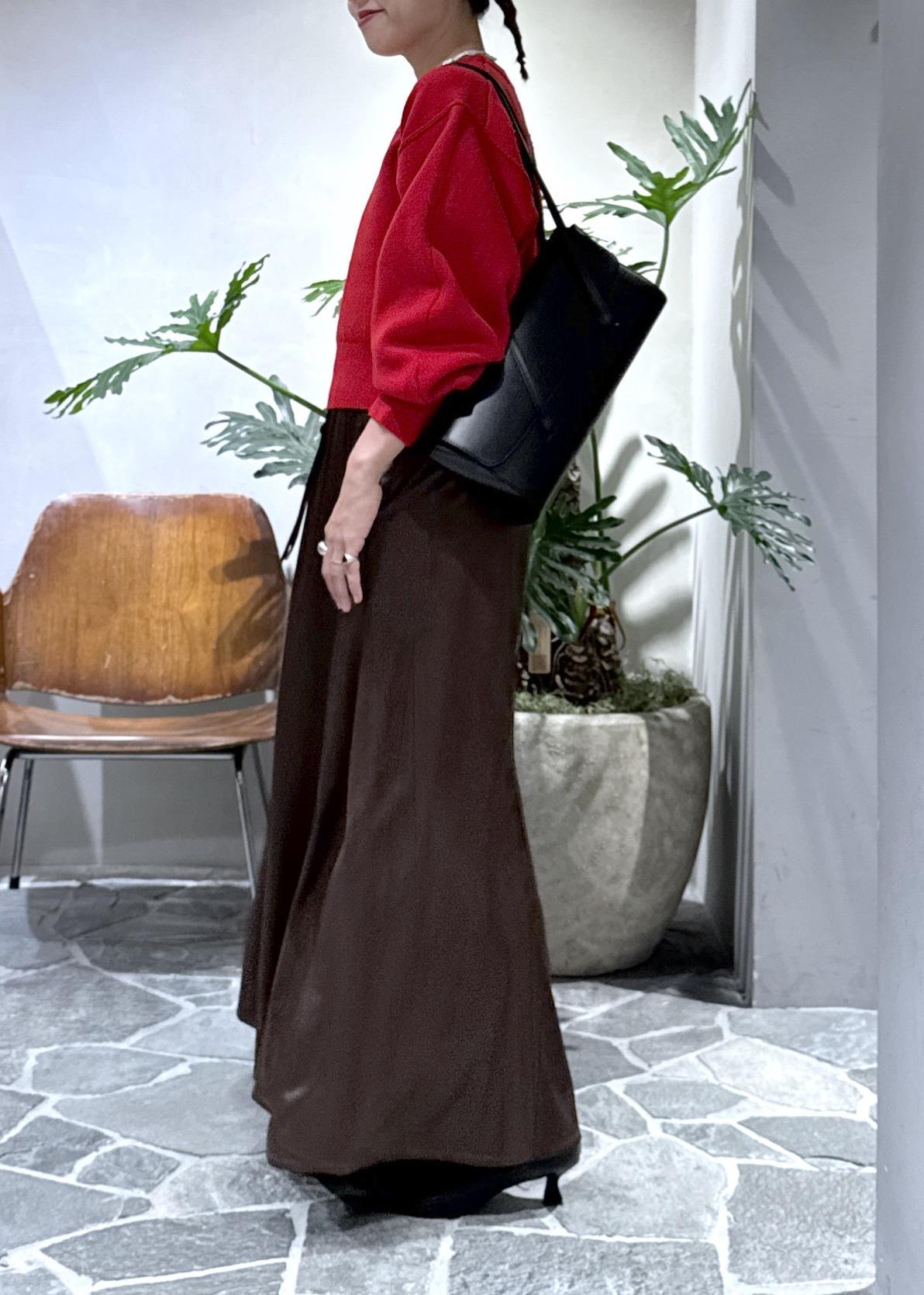 アームが丸くて、目線がきゅっと上がるのでロングスカートやワイドパンツのボリュームのあるボトムスと相性抜群です。