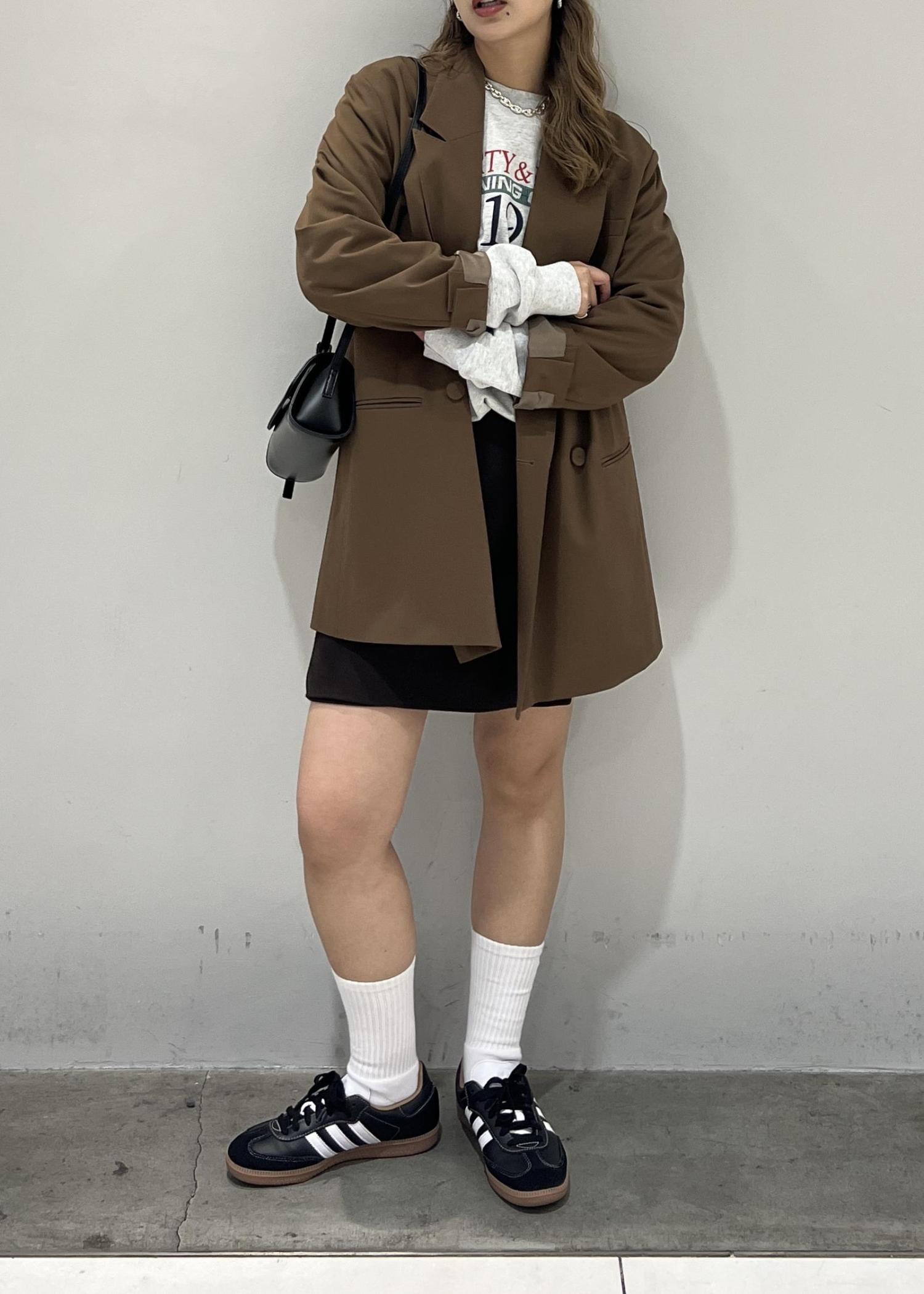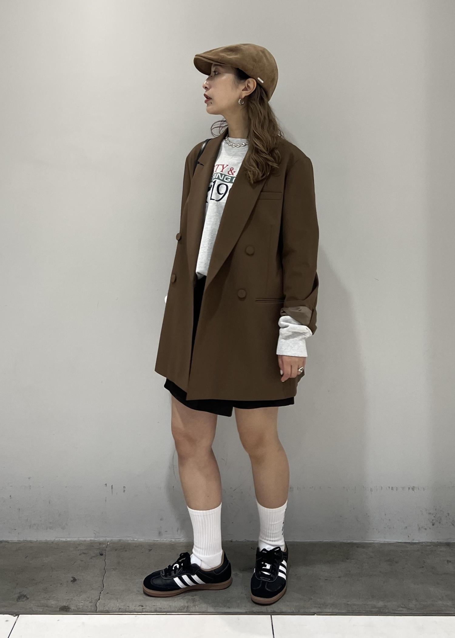 ハーフパンツにスウェットでカジュアルなスタイリングにジャケットを合わせて少し大人っぽさも加えました!
