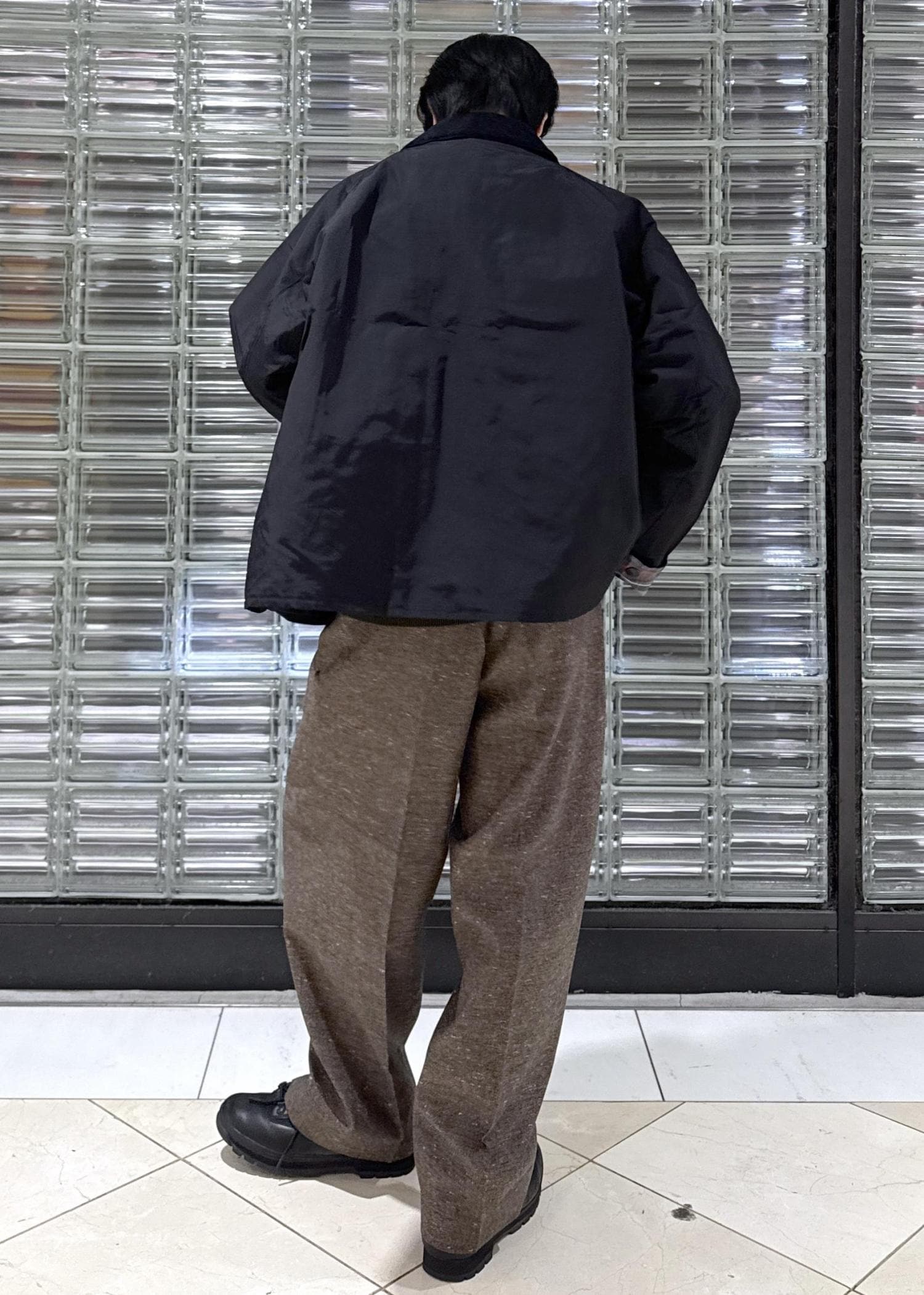 ADAM ET ROPÉ HOMMEハードクロス 2プリーツ スラックスダークブラウン系 / M¥35,200レビュー程よくゆとり感があり、独特な生地感が魅力です