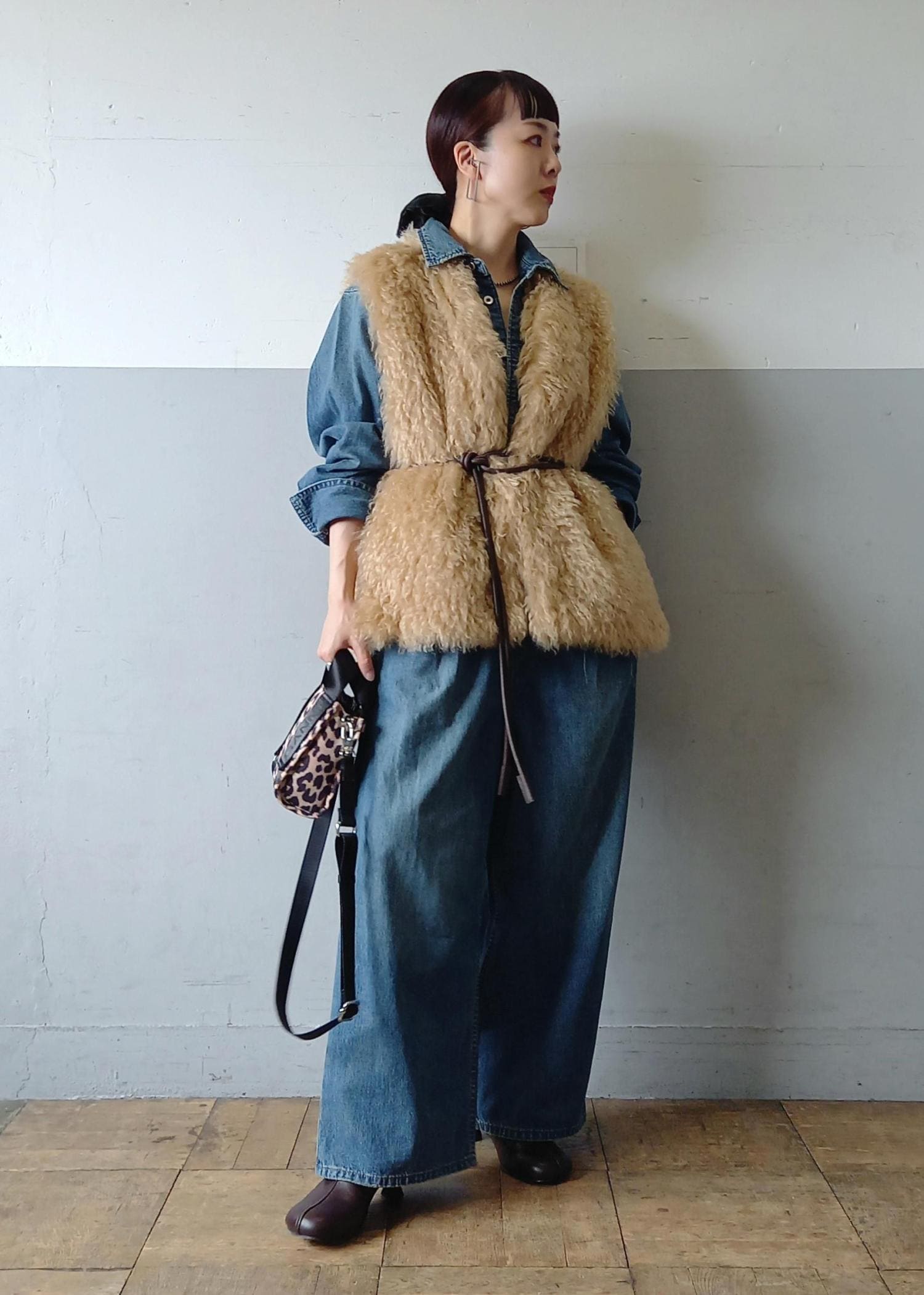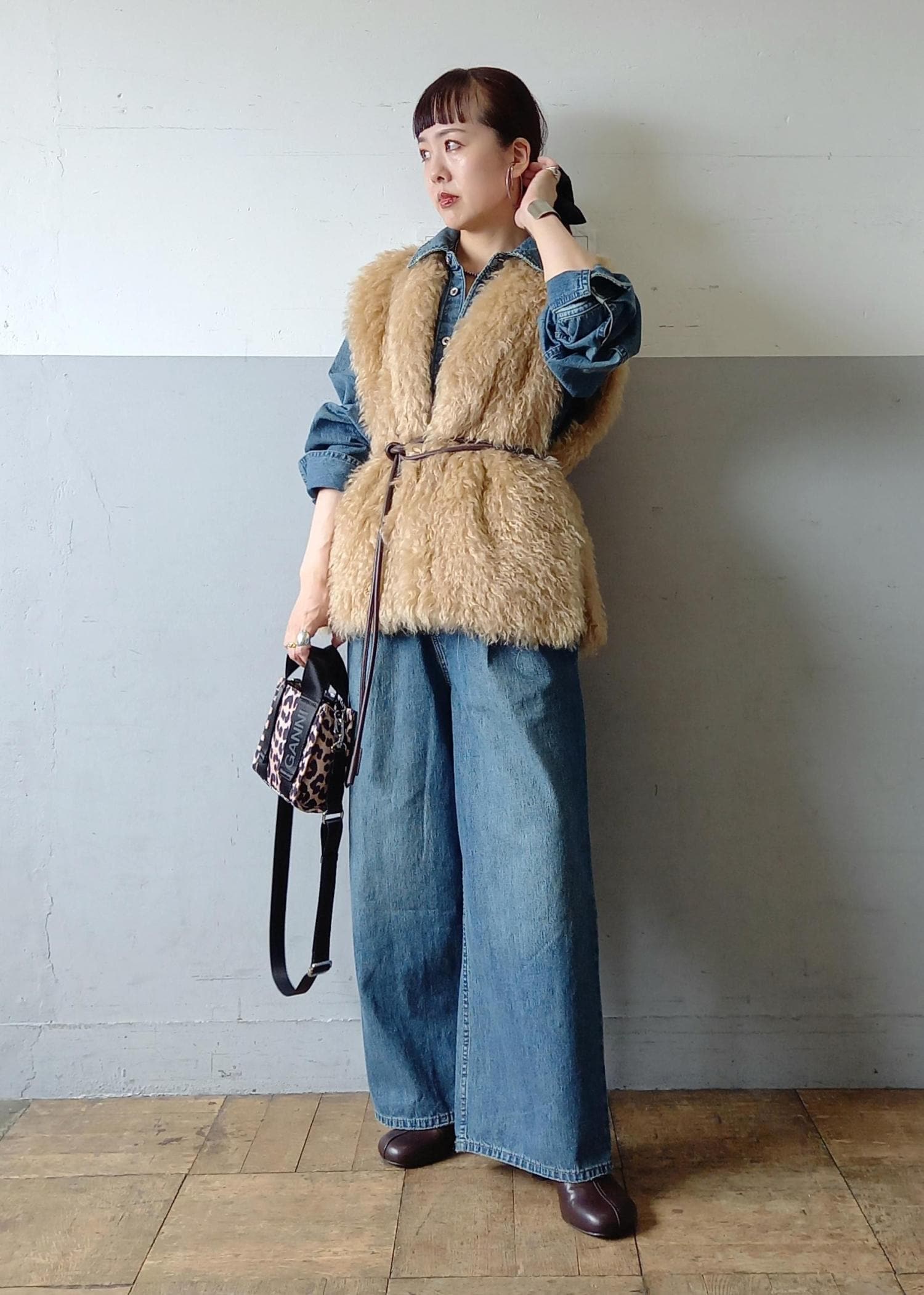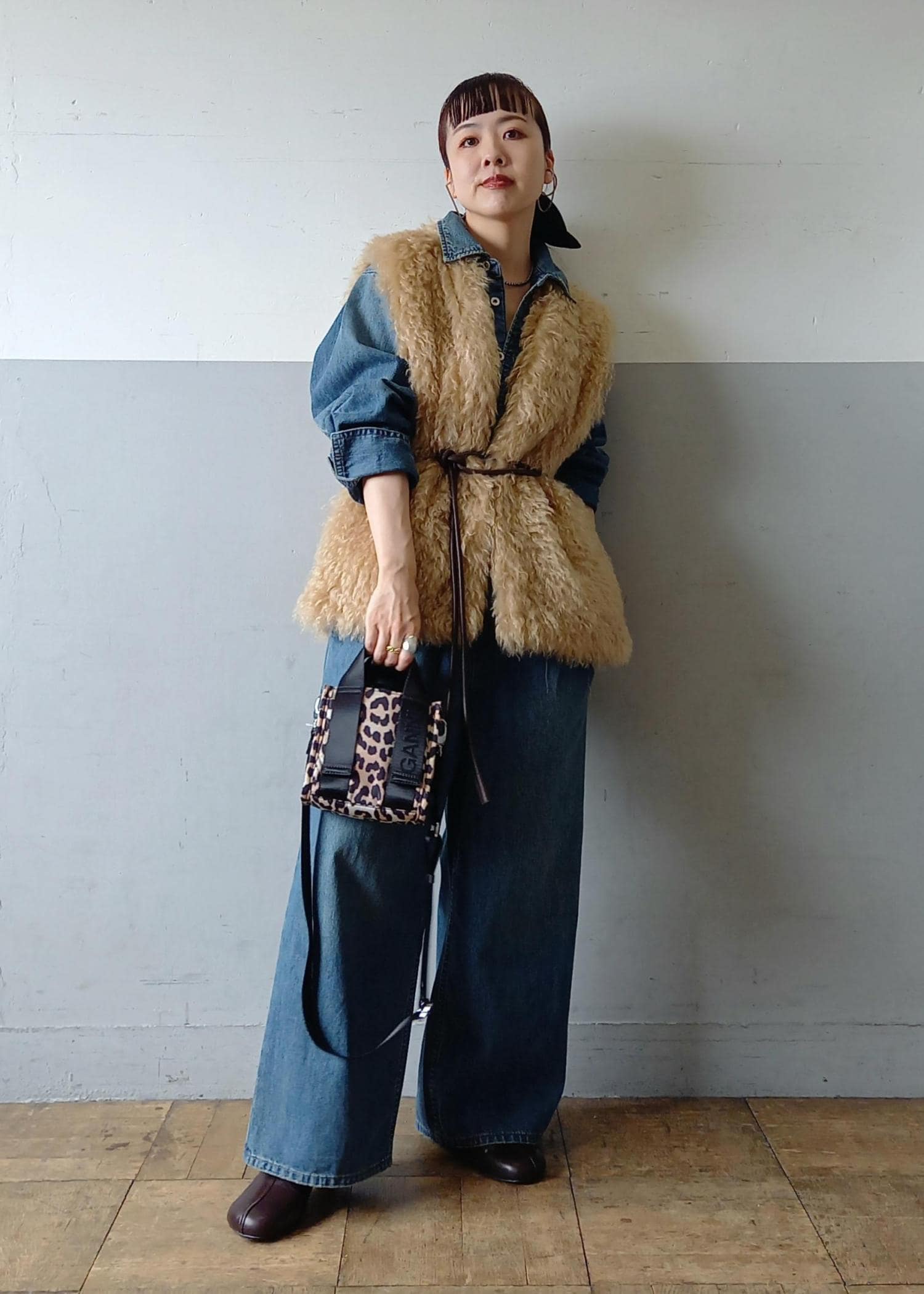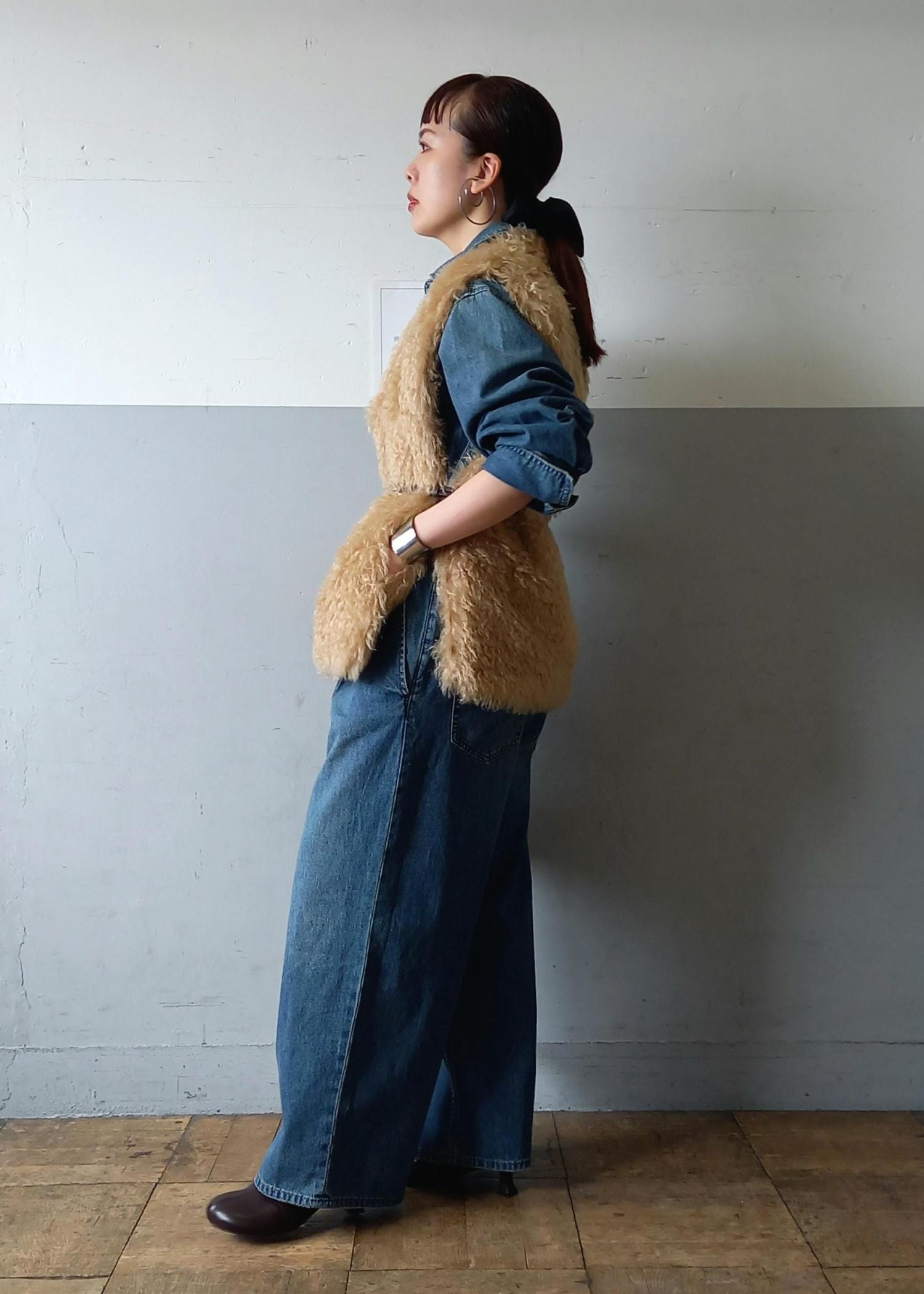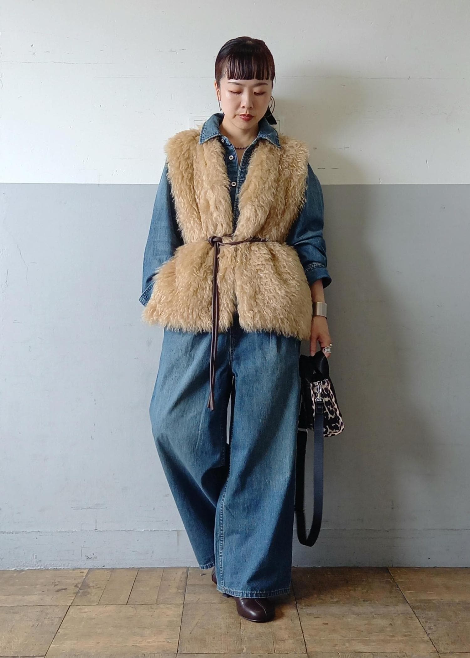 ほっこりとしないようにデニムのジャンプスーツと合わせました☺️