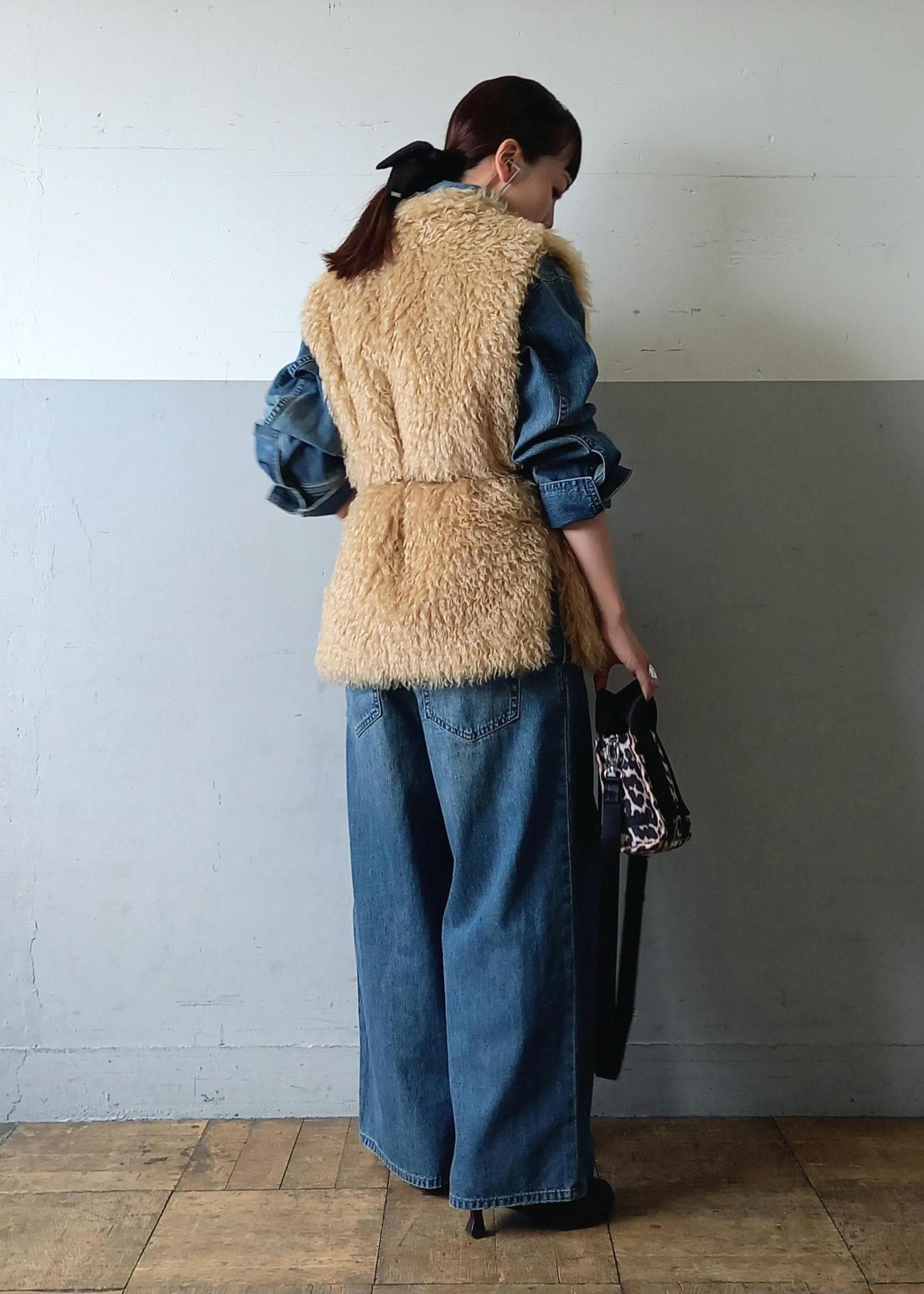 テディベアのようなファージレがポイントのコーディネート。