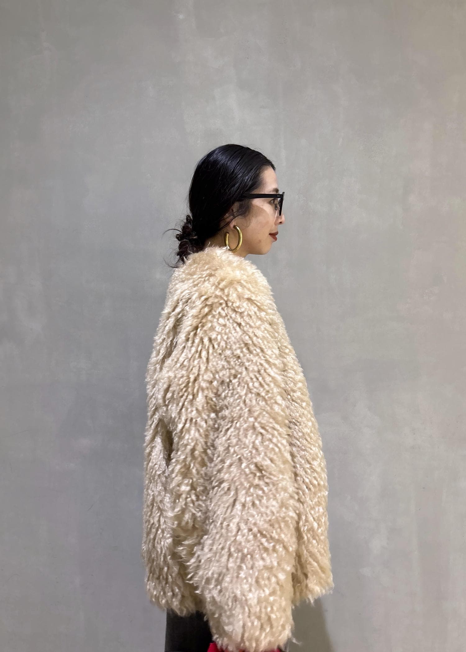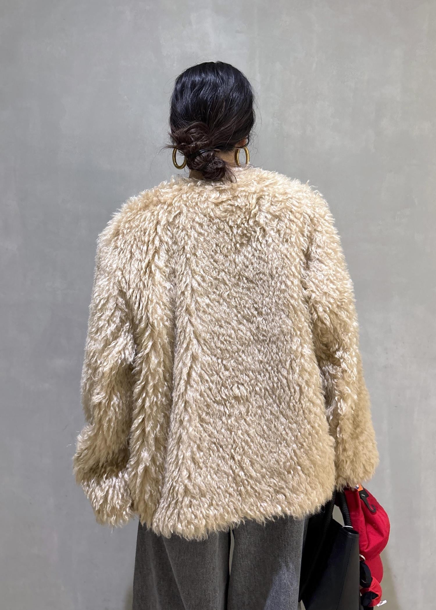 ADAM ET ROPÉ FEMMESteiffファーコートベージュ系 / F¥132,000レビュー中にニットも着込めるくらいのゆったりとしたサイズ感です。ふわっときた毛質がとても柔らかくて着やすいですし、軽さもあるので肩も凝らず楽に着用できます。モヘアの素材で、とても保温性があり真冬までしっかり対応できます!