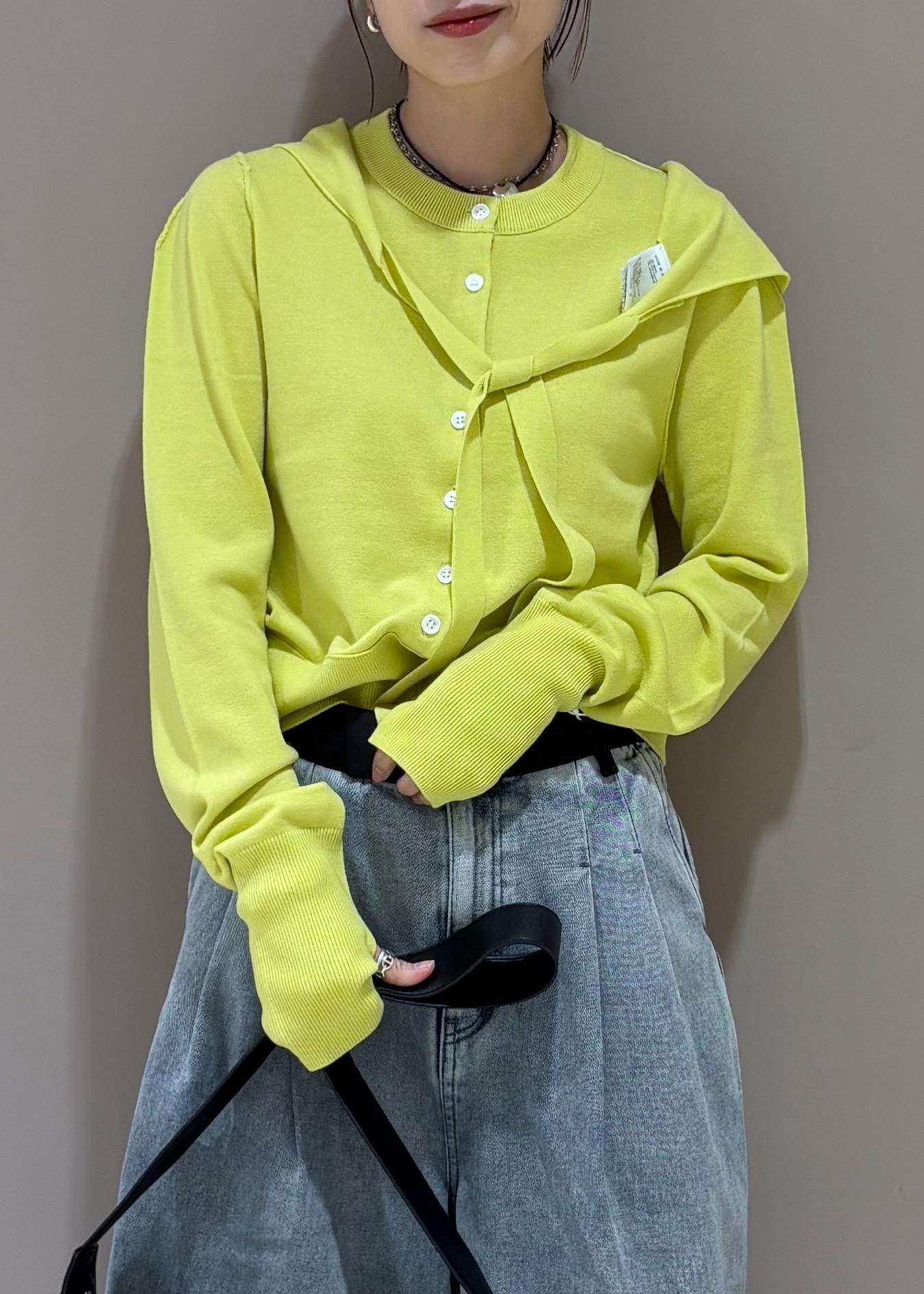 ADAM ET ROPÉ FEMME梳毛クルーネックカーディガンストールセットイエロー / F¥19,800レビューカーディガンとストールのセットアイテム◎