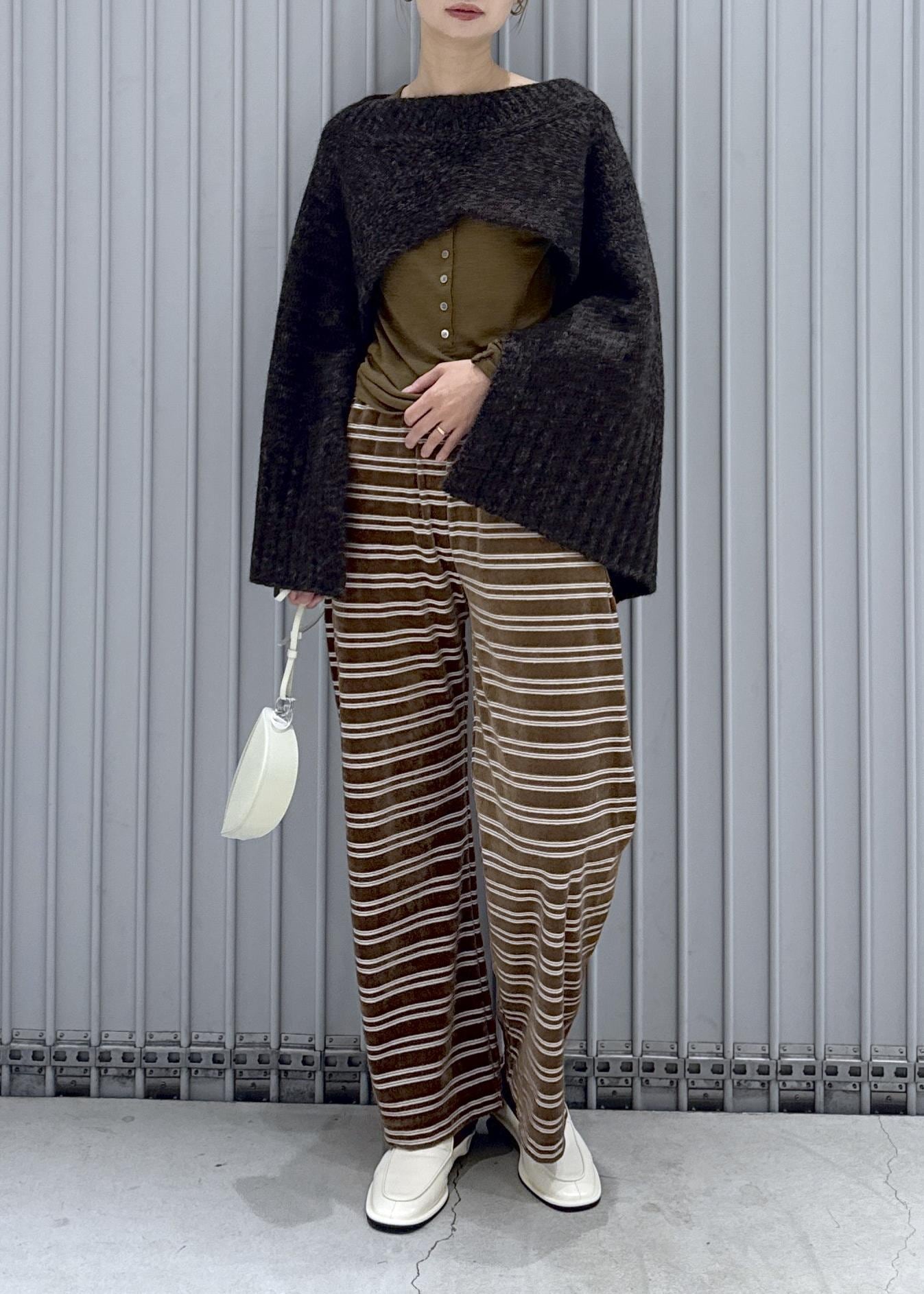 ADAM ET ROPÉ FEMMEヘンリーネックカットオフウールプルオーバーブラウン系 / F¥14,300レビュー首の開きは広めです。インナーを入れてレイヤードしても、上からニットを重ねても、もちろんメインで着ても使い勝手の良いシンプルなカットソーです◎