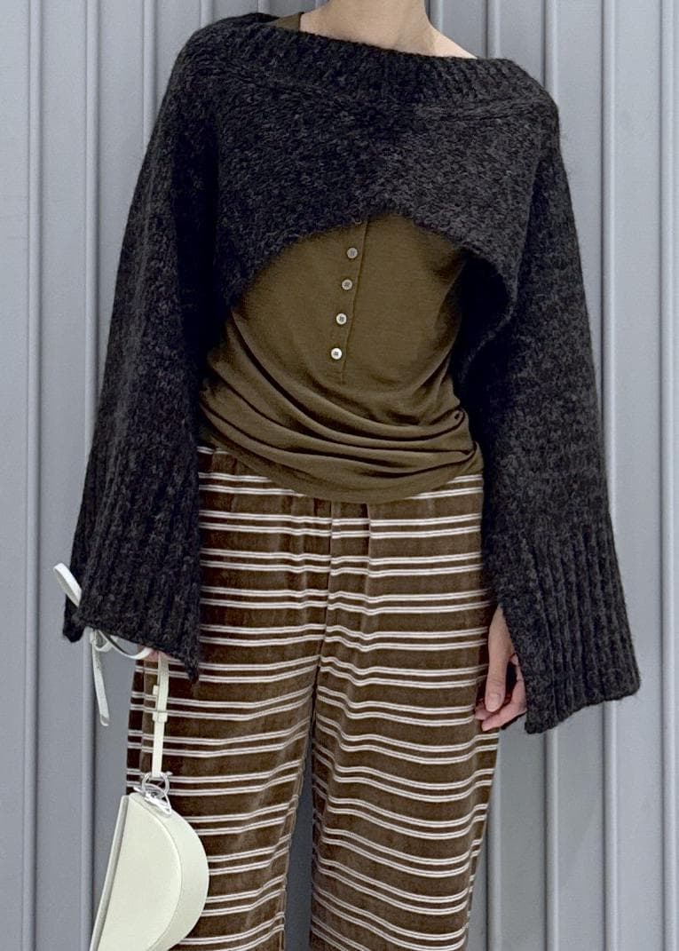 Vネックベストにも、ショート丈の長袖ニットにもなる2way仕様のこちらのニット