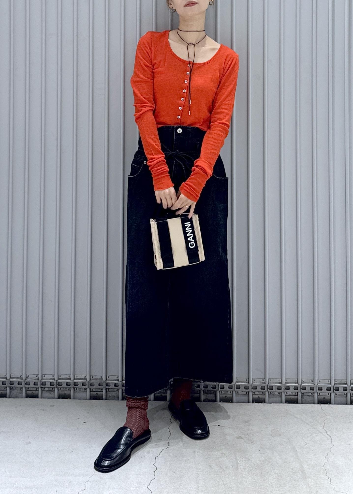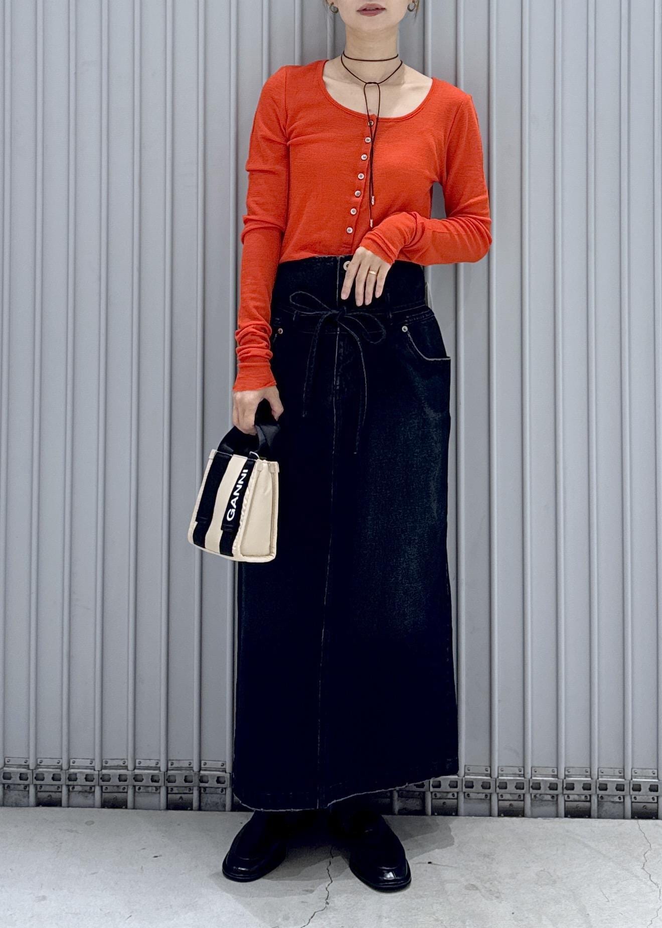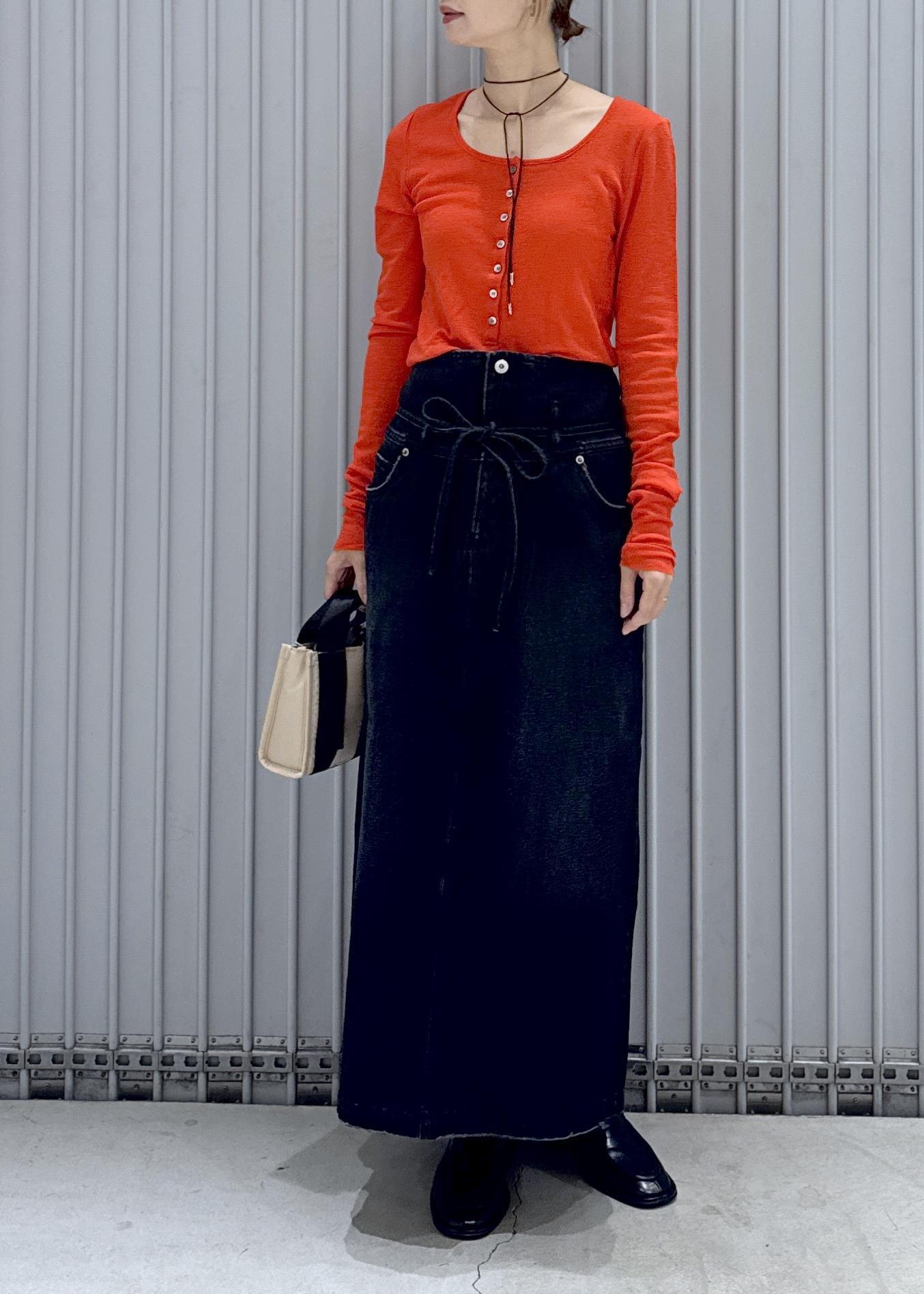 ADAM ET ROPÉ FEMMEローウエストデニムスカートブラック / 36¥18,700レビュー165センチ36サイズ着用。