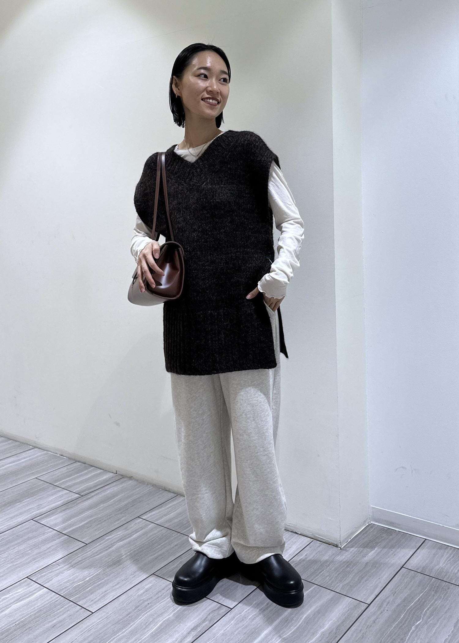 ADAM ET ROPÉ FEMME2WAYムリネニットベストダークブラウン系 / F¥24,200レビュー2wayでご着用頂けるニットベスト。インナーにシャツやロンTなど、色々な合わせを楽しむことができるアイテム。