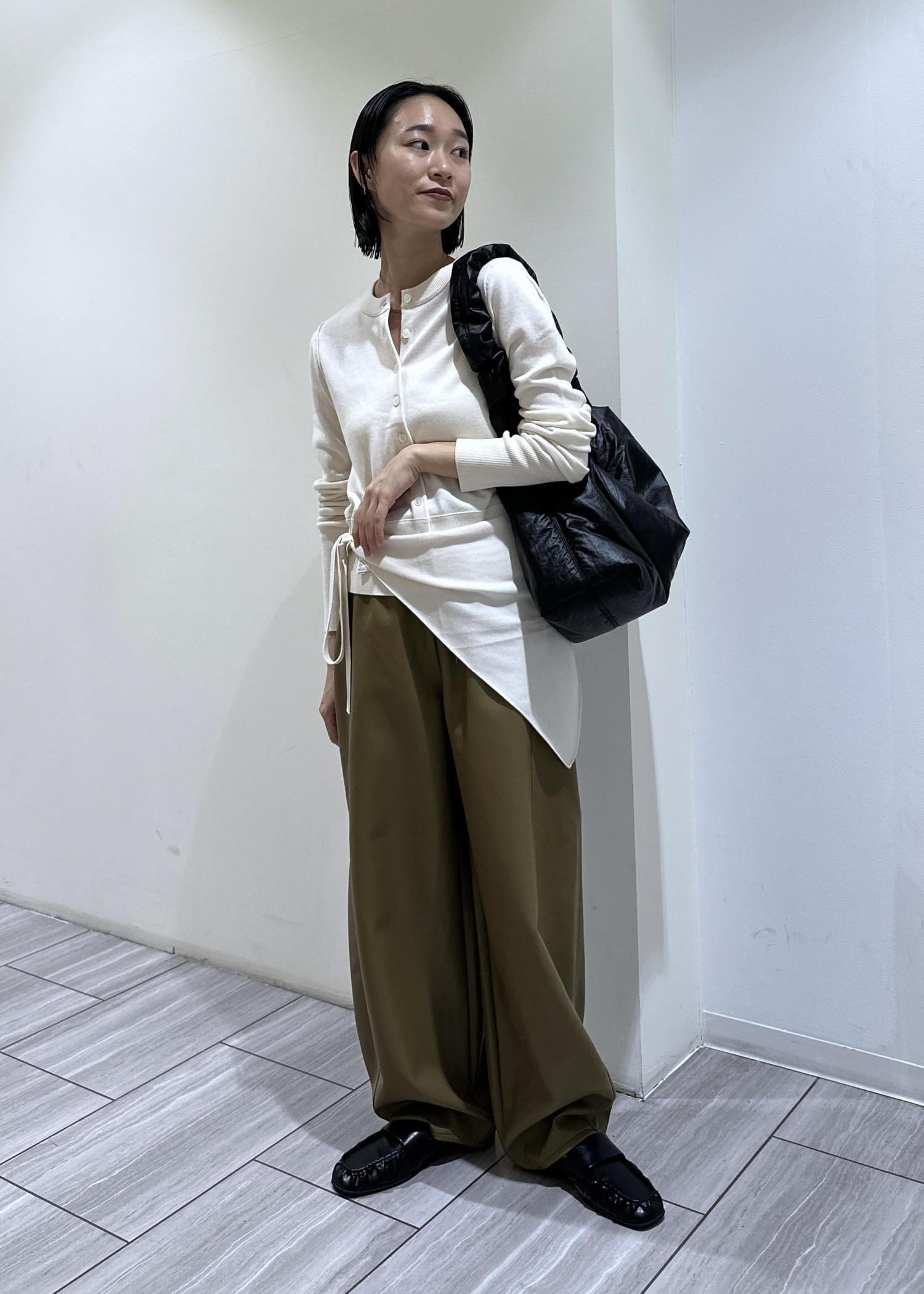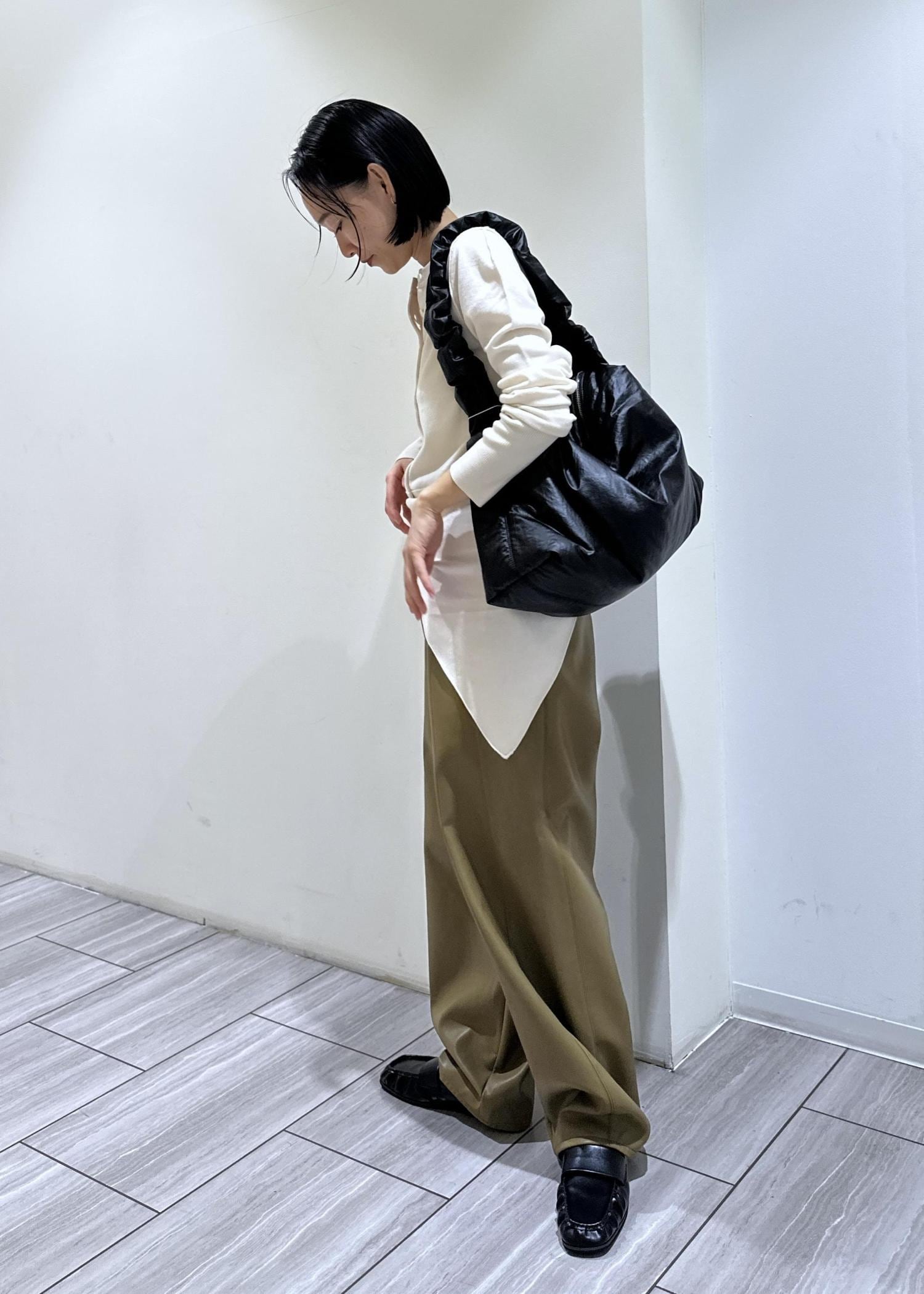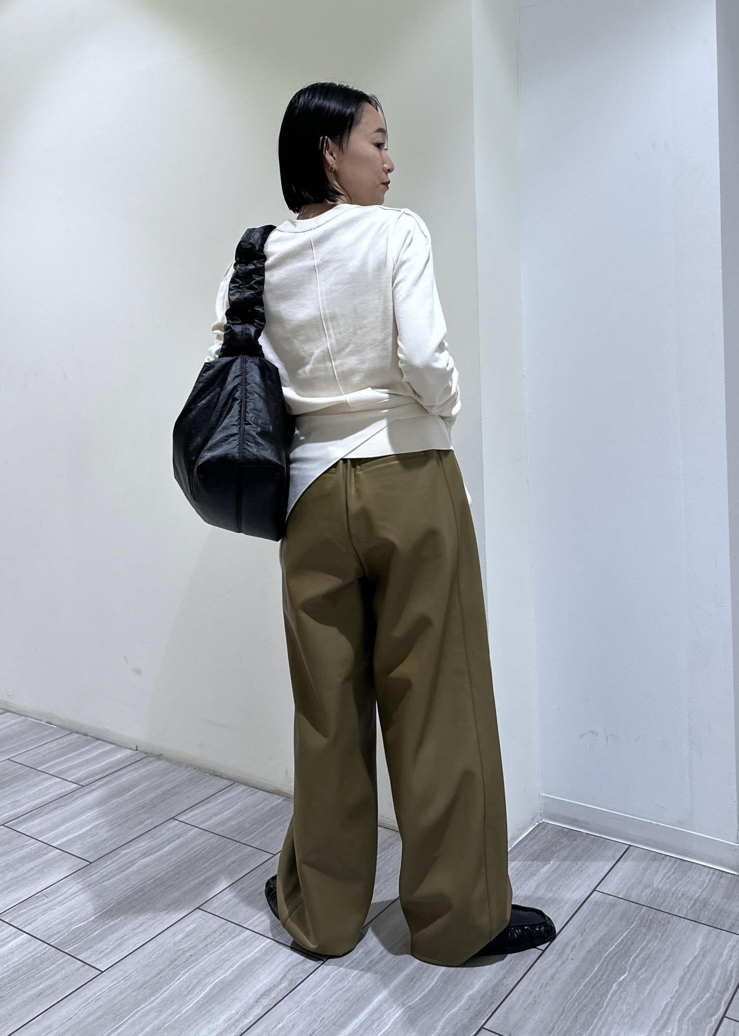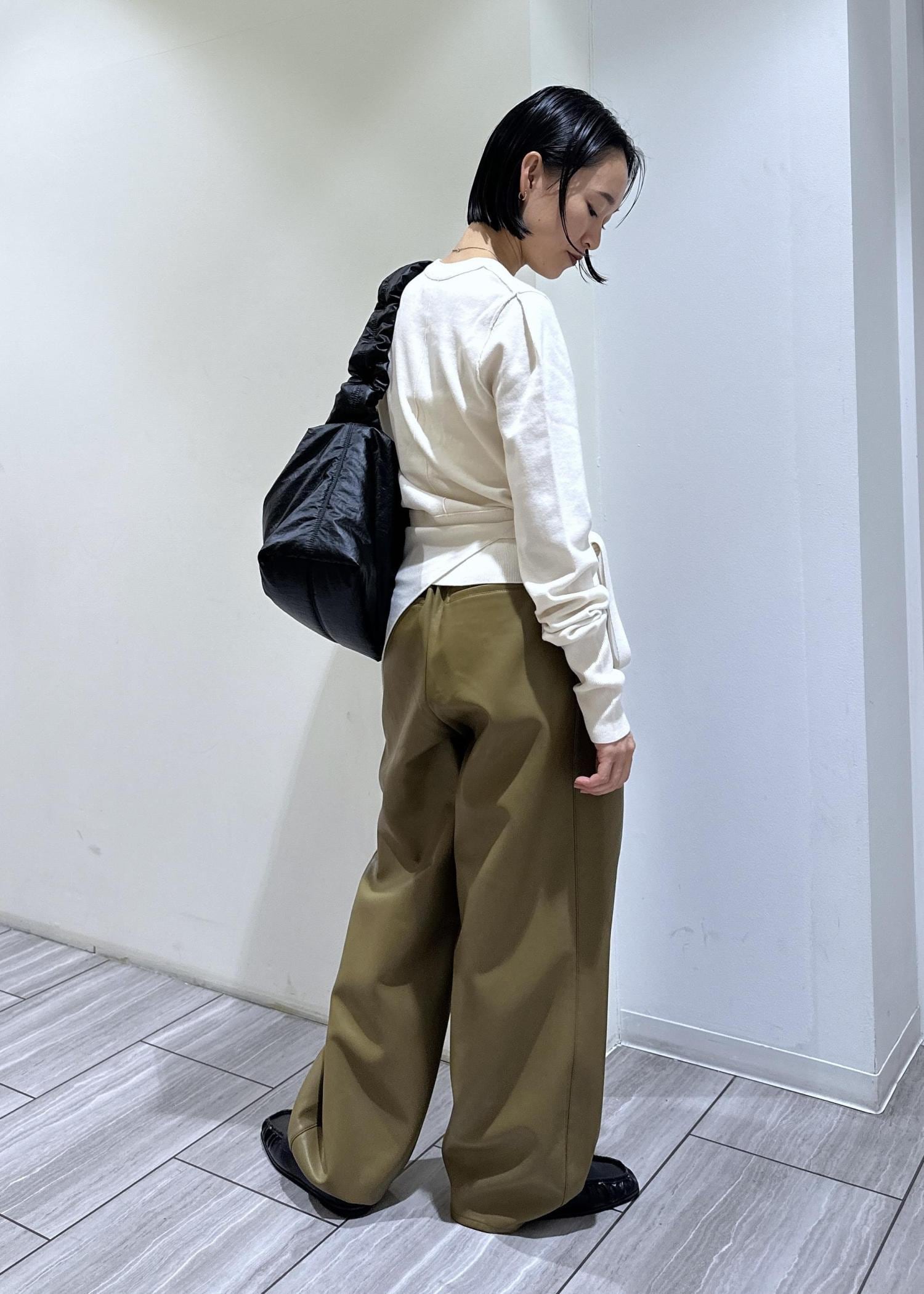ADAM ET ROPÉ FEMMEシンセティックレザートラックパンツオリーブ / 36¥20,900レビューレザー素材のパンツ。程良くカーブになったデザインなので一枚でパッと着映え出来る印象に◯ウエスト部分に紐が付いているので楽に調節可能!