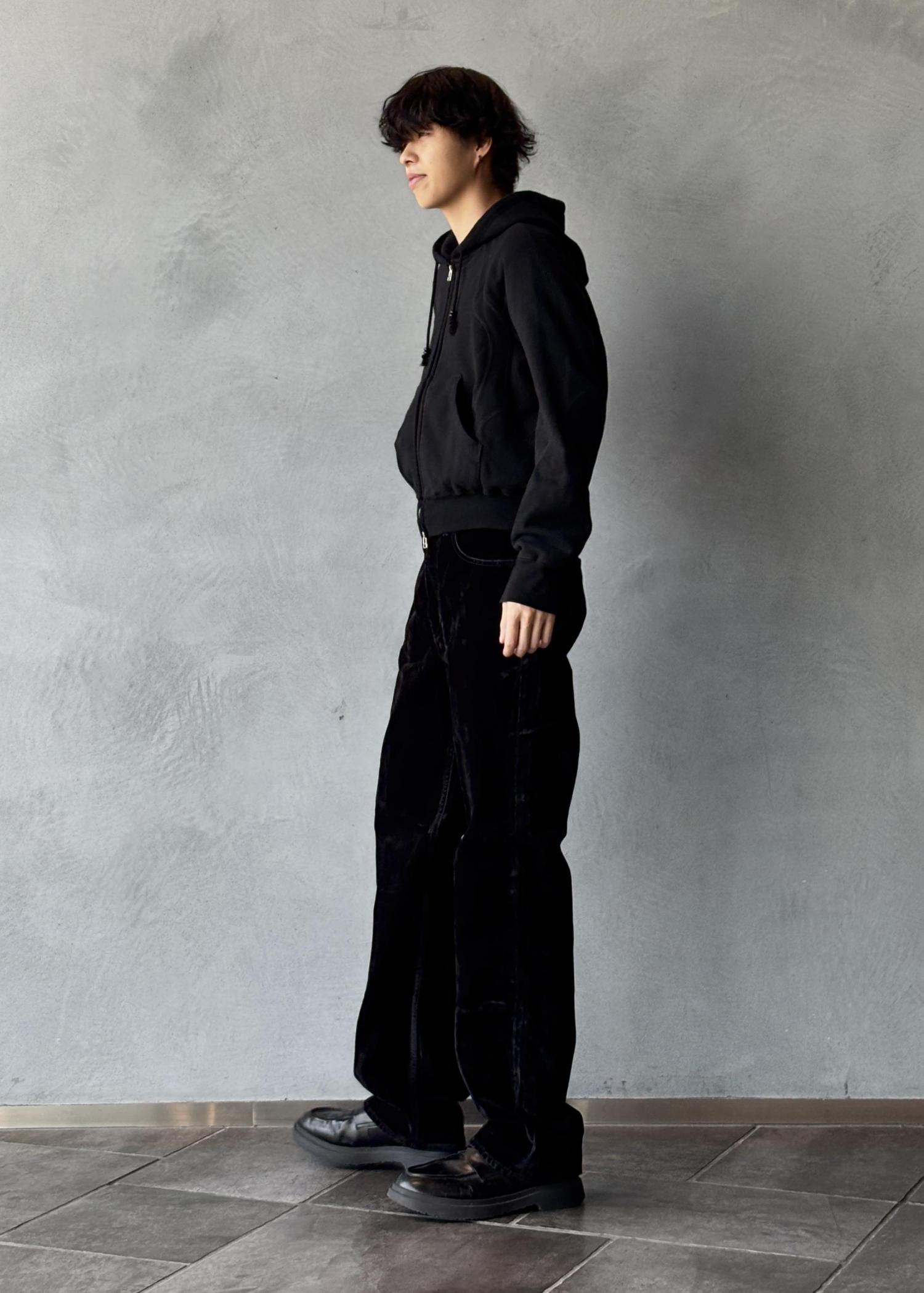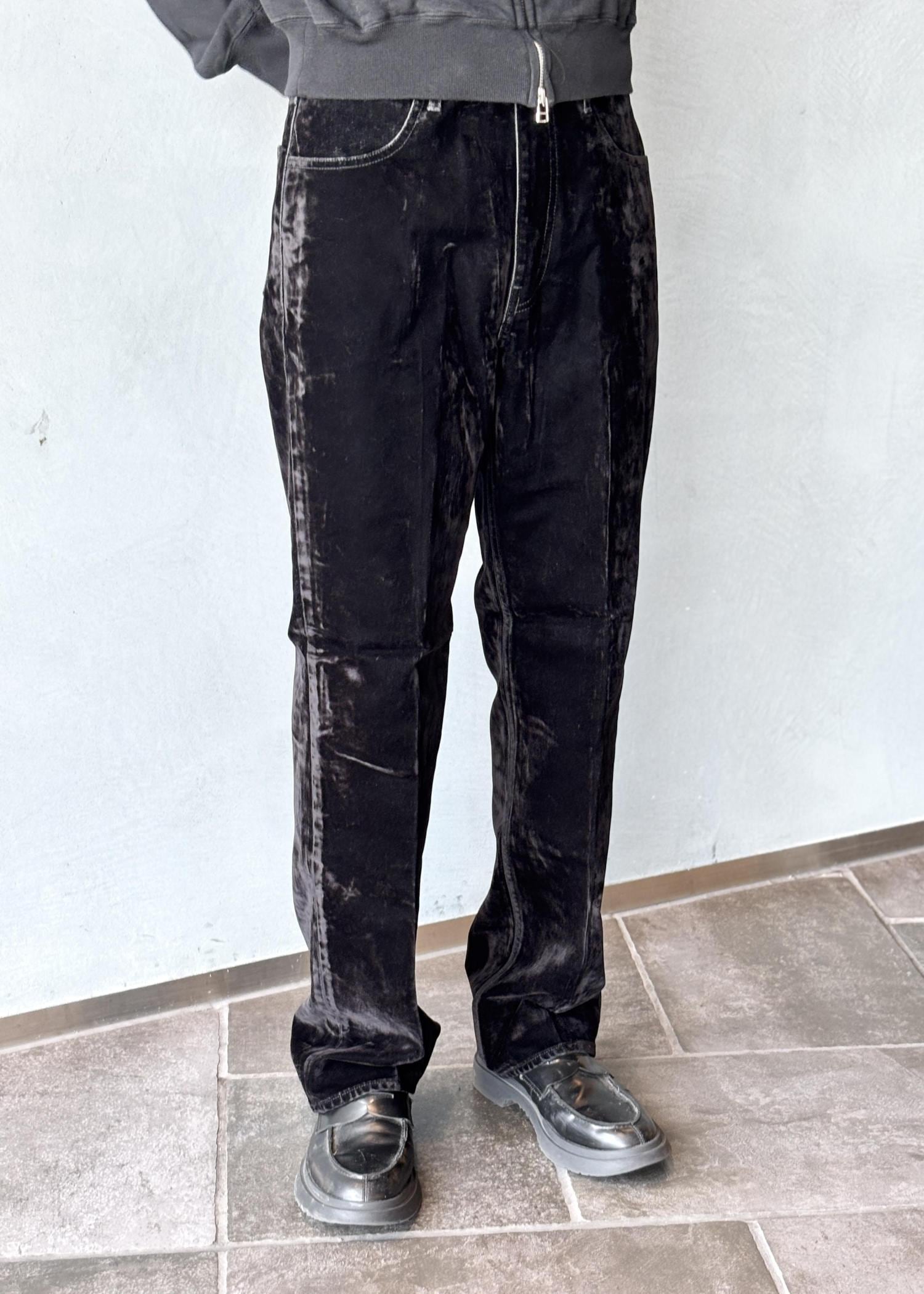 ADAM ET ROPÉ HOMME【ISKO】フロッキーデニム ストレートスラックス / ADAM ET ROPE' JEANS -IMAG-ブラック系 / L¥29,700レビュー細めでストレートにストンと落ちるようなシルエット感。
