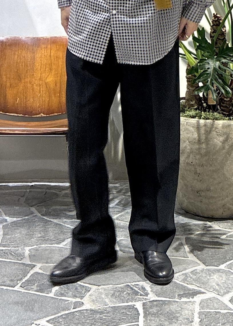 ウエスト周りは大きすぎず、僕の体型でMでベルトは無くても腰できちんと止まるくらいのサイズ感でした。生地感とシルエットがとにかく美しく、履くだけでスタイリングの主役になるようなパンツです。
