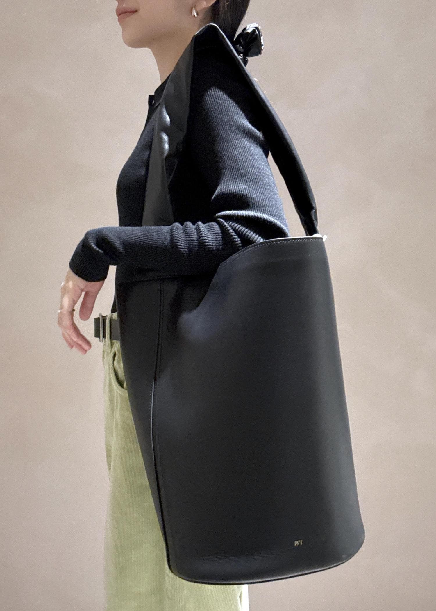 PFT【PFT】Fuka bucket Mediumブラック / F¥55,000レビューフォルムが魅力で、かなり大容量のバッグです!お仕事や旅行にもぴったりです☺︎ストラップが太めで柔らかいので、バッグの重さが分散され肩が痛くなりにくいです♪