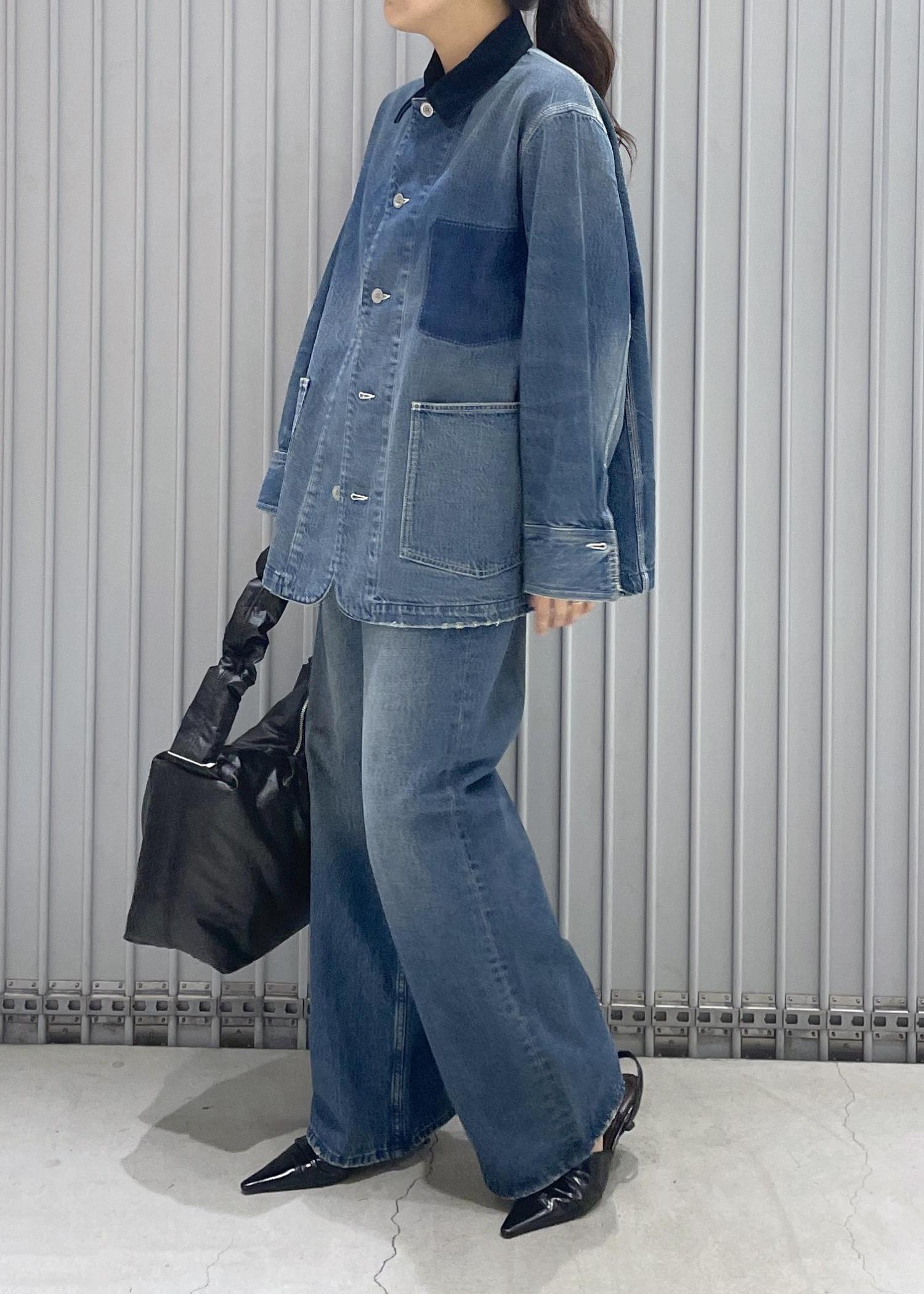 ADAM ET ROPÉ FEMME【サステナブル】デニム&カツラギカバーオールブルー系 / F¥24,200レビュー襟部分がコーデュロイになっています。