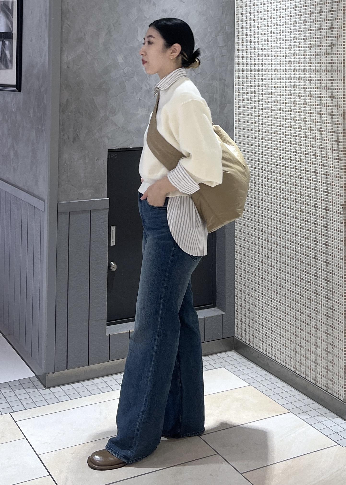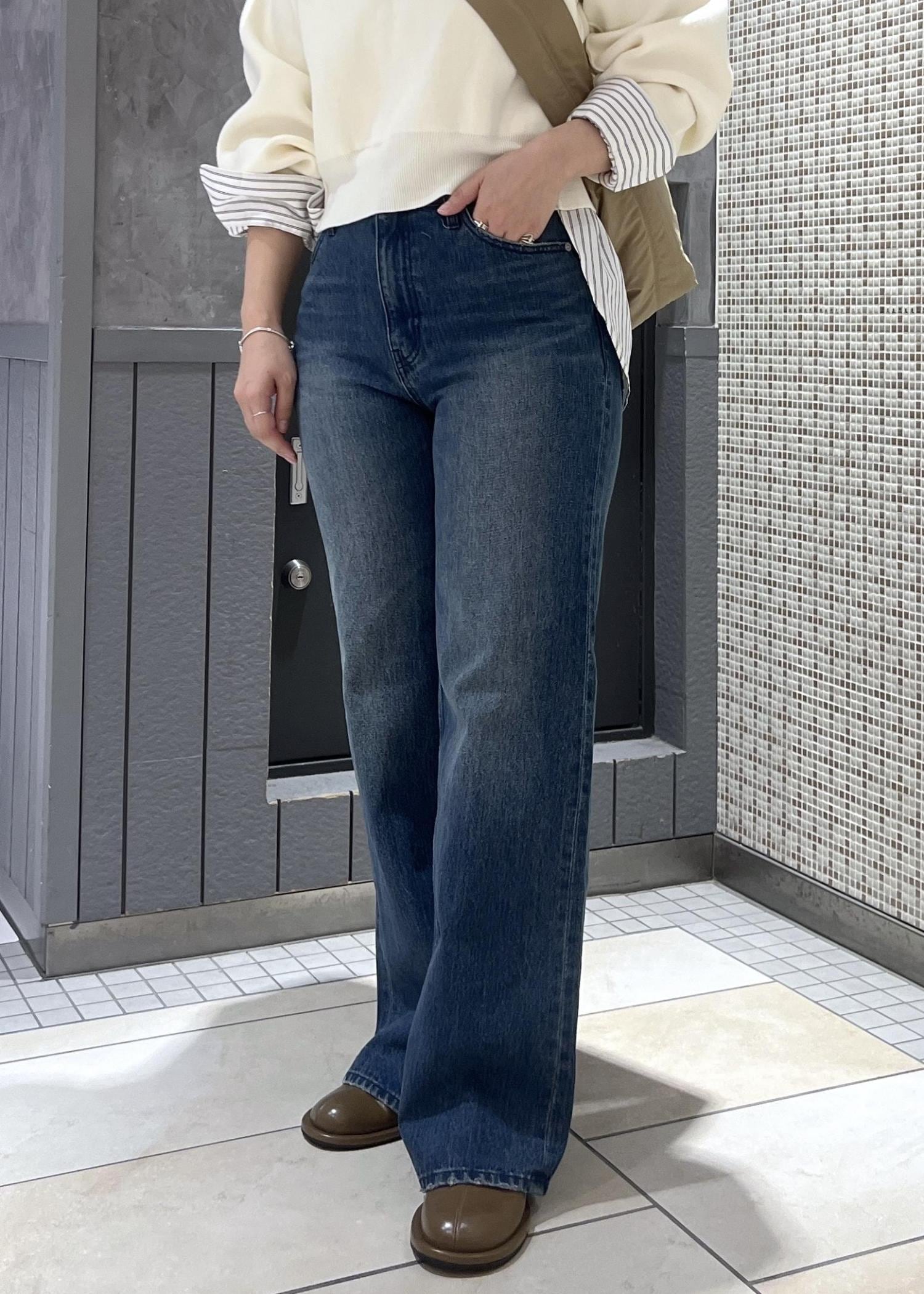 ADAM ET ROPÉ FEMME【サステナブル】デニム&カツラギセミフレアパンツブルー系 / 38¥18,700レビューストレートタイプのデニムです。腰も周りもすっきり見えてヒールと合わせるとより脚長効果を感じられます♡デニムジャケットとセットアップでも着られるので、気分に合わせてデニムonデニムも楽しめます♪