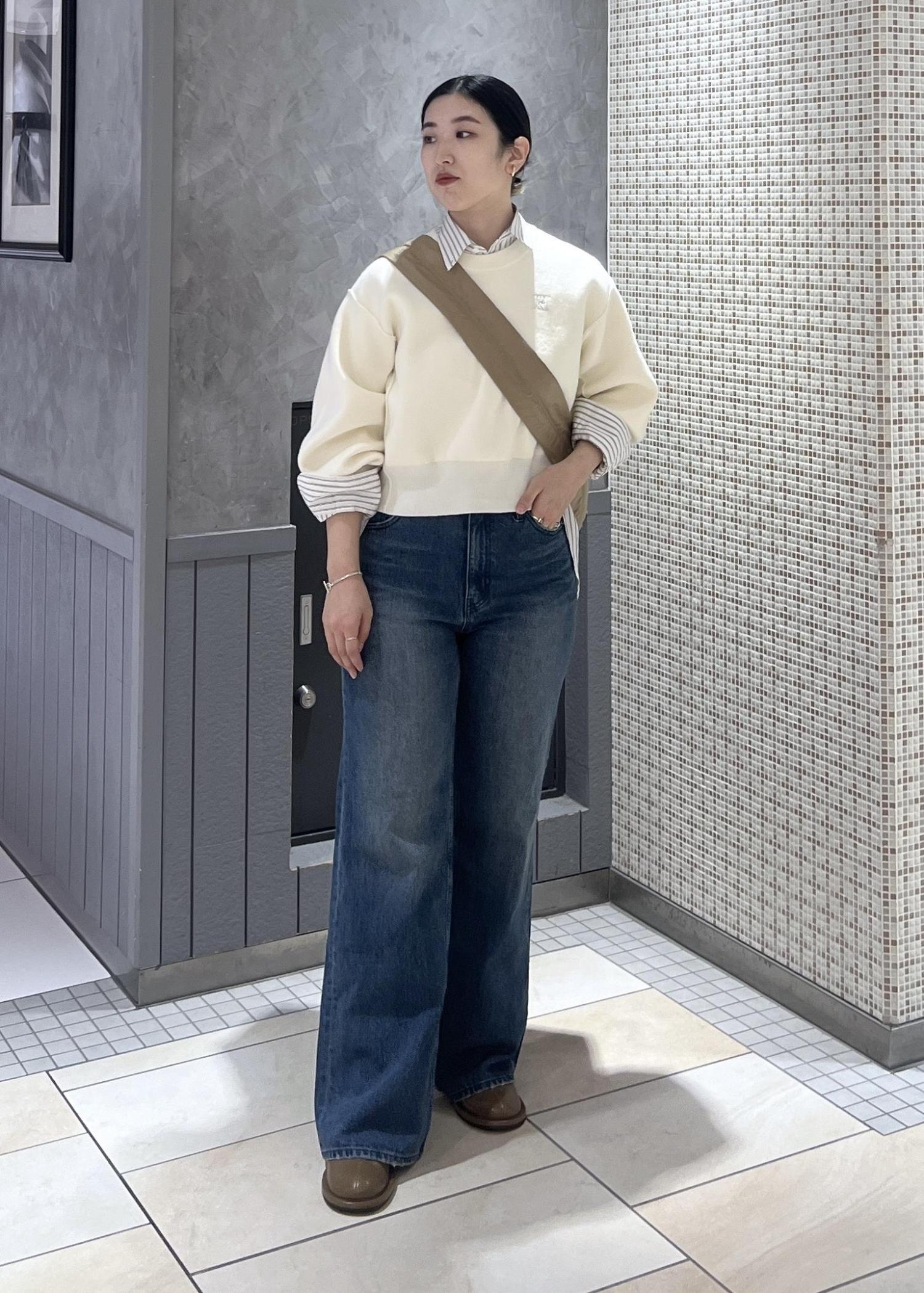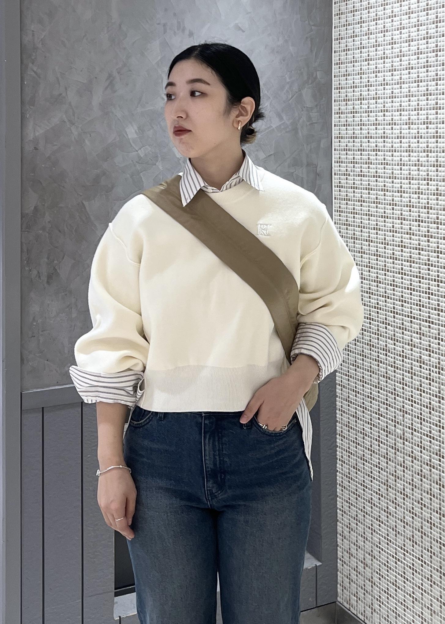 バックスタイルのロゴも程よいカジュアル感も出しつつ、光沢感のある素材感でカジュアルダウンしすぎず綺麗に着られるスウェットニットです♡ -