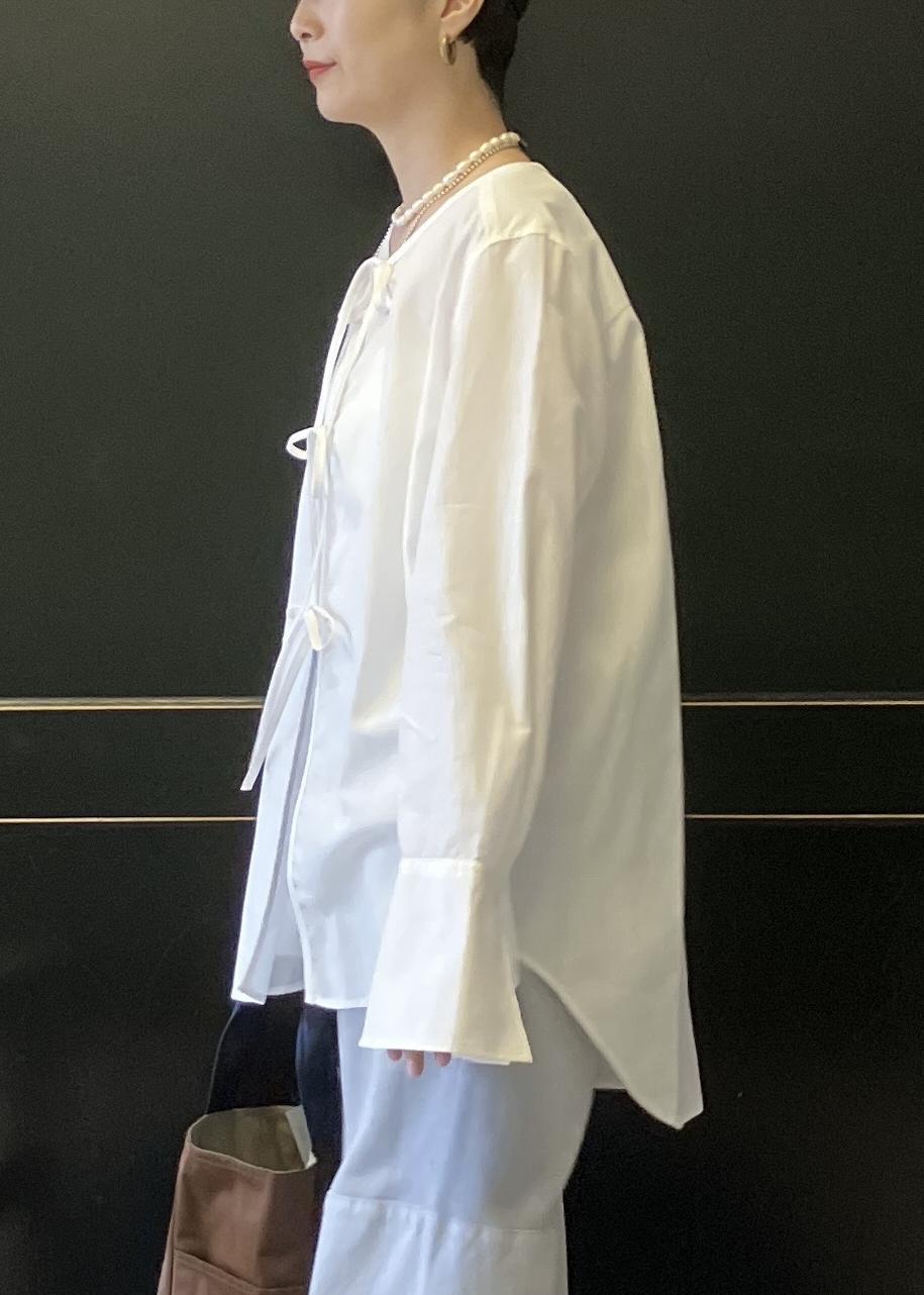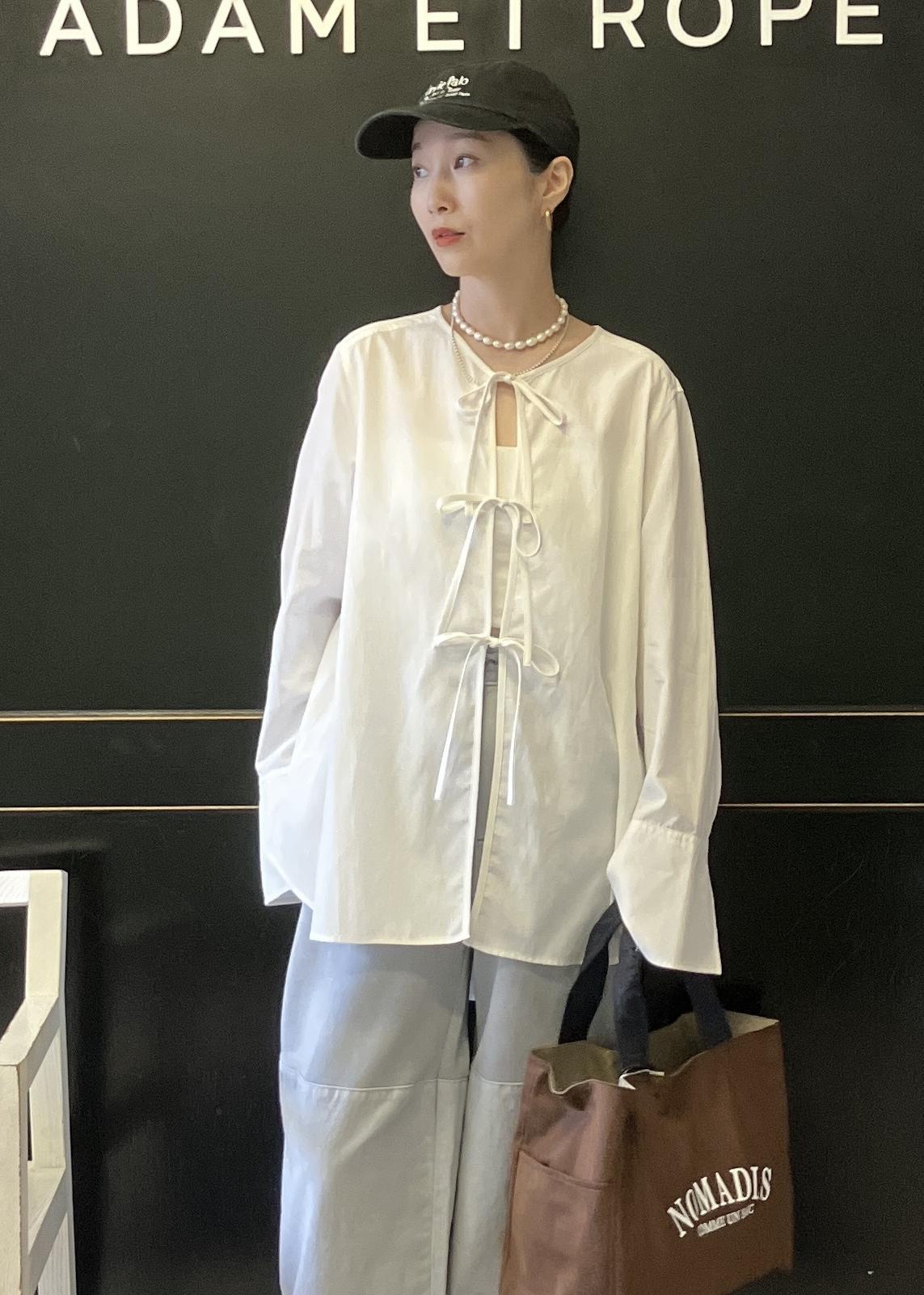 ADAM ET ROPÉ FEMME【サステナブル】リボンブラウスホワイト / F¥17,600レビュー一枚で着ても、ジャケットやカーディガンの中に着て、リボンを見せても可愛いブラウス。