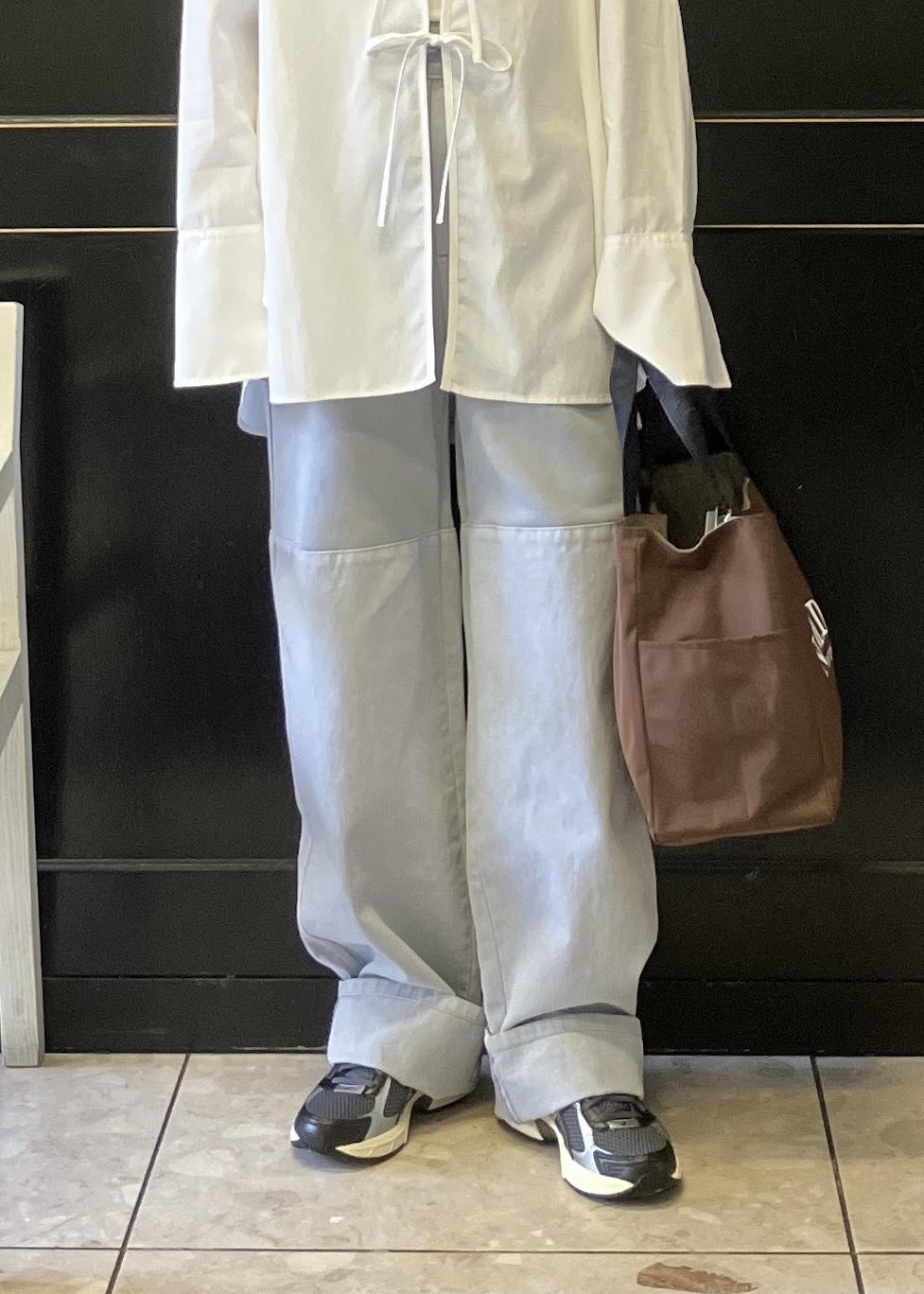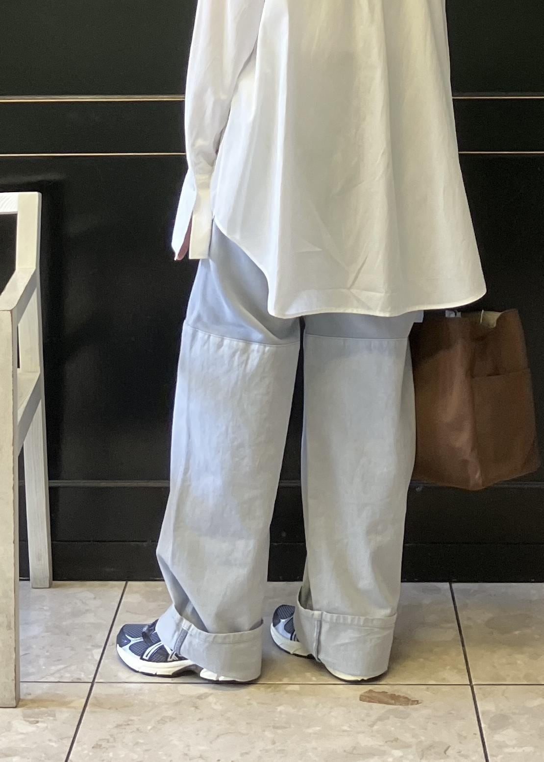 スウェットとデニムのコンビになったパンツで、タポッとしたシルエットでとにかくオシャレに履けます。