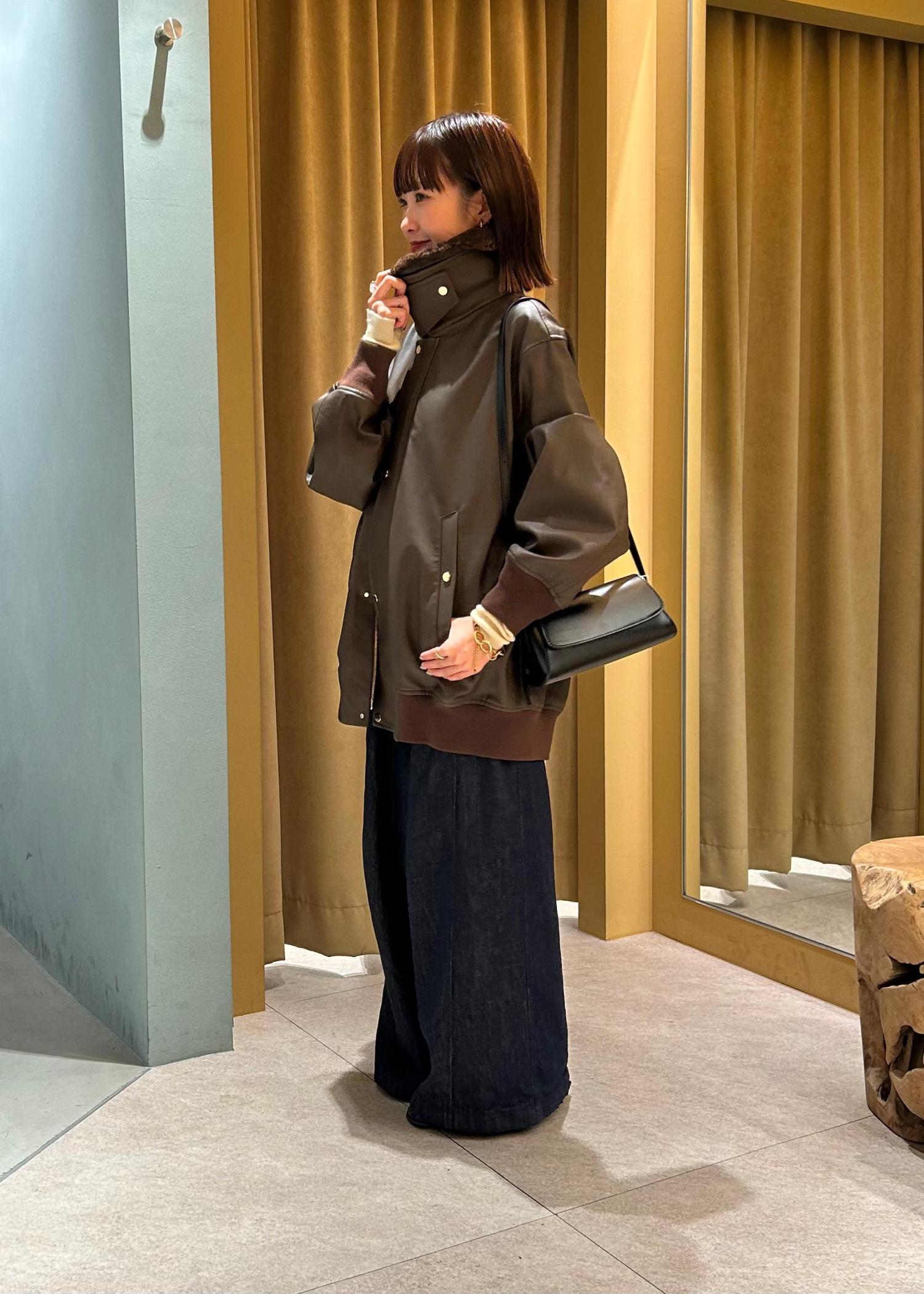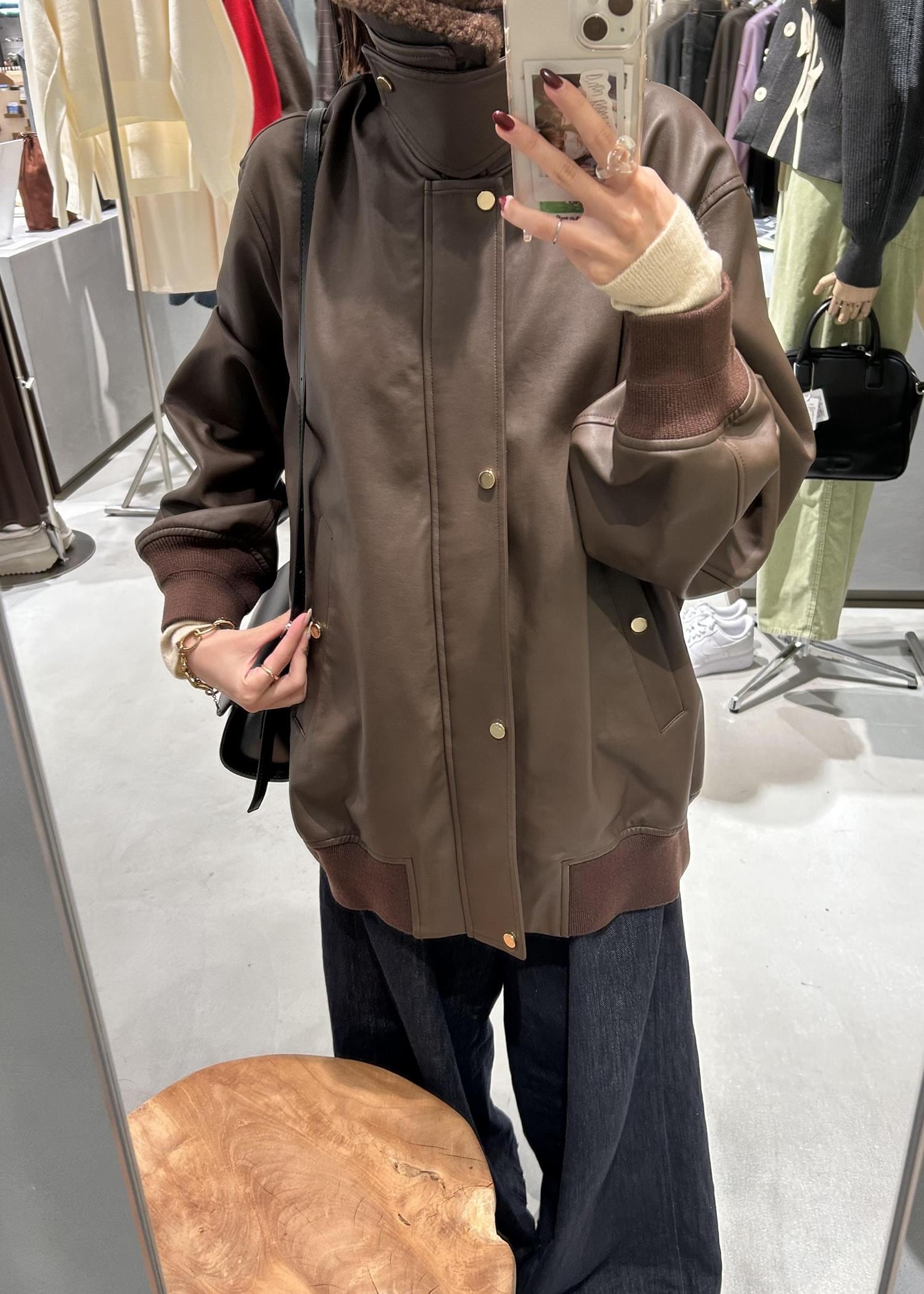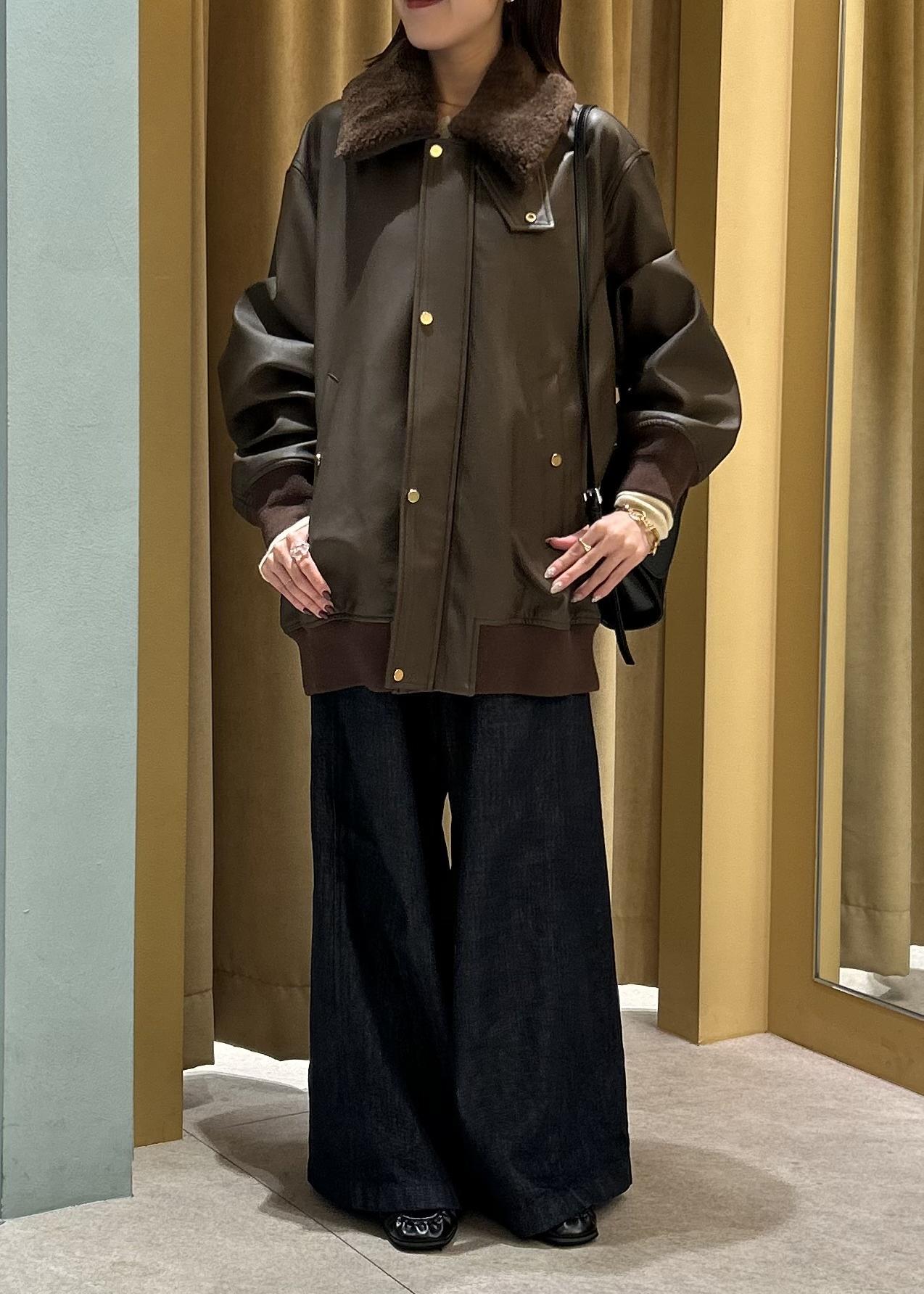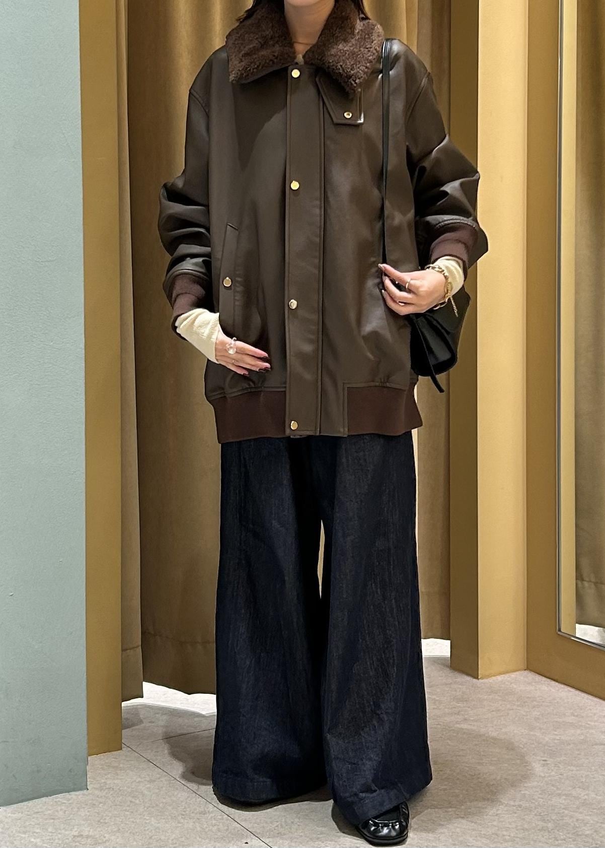 ADAM ET ROPÉ FEMMEシンセティックレザーフライトジャケットダークブラウン / F¥39,600レビュー襟元のボアが大人っぽさを
