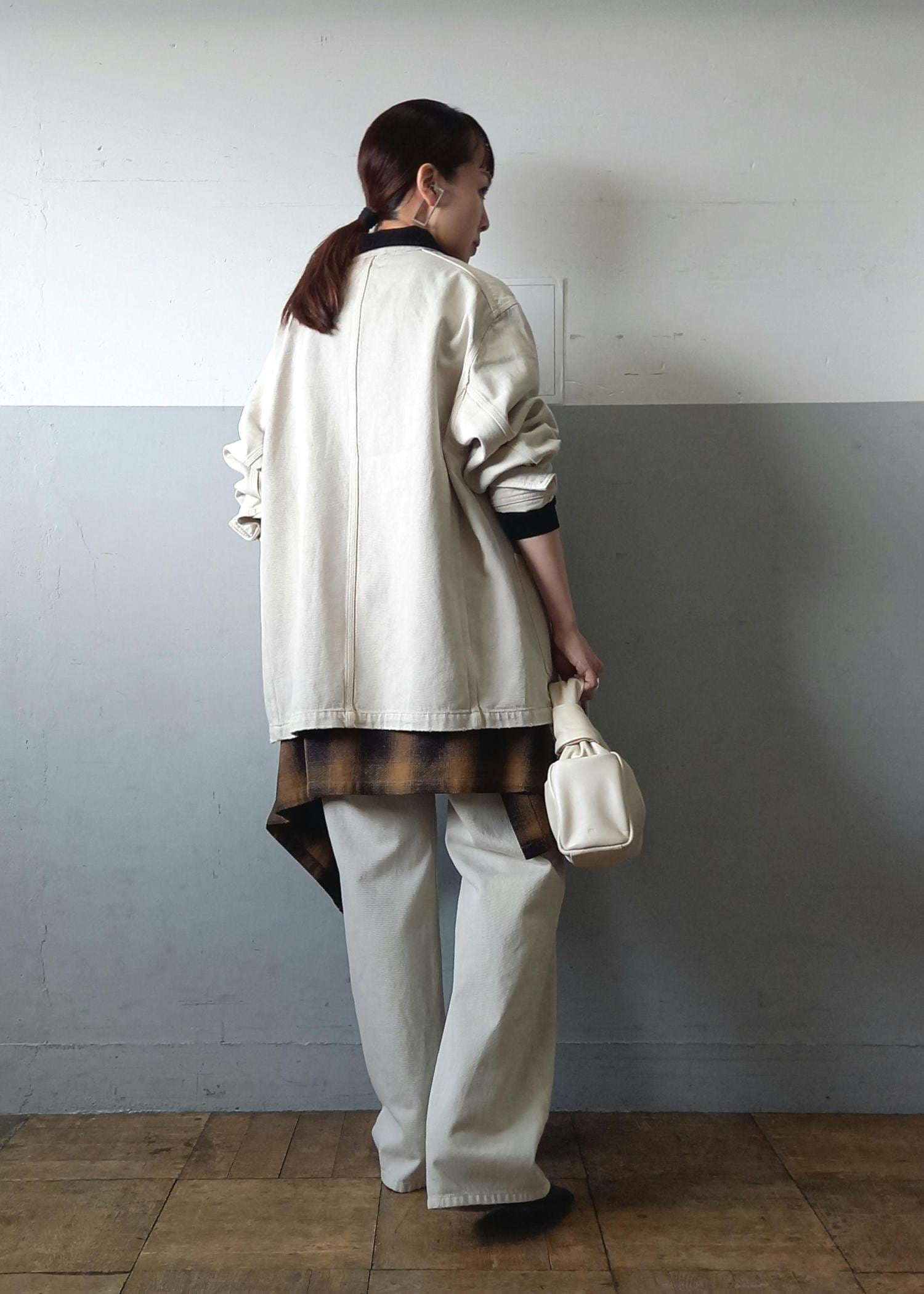 ヒップがちょうど隠れる着丈です。中にスウェットやニットなども着込めます☺️