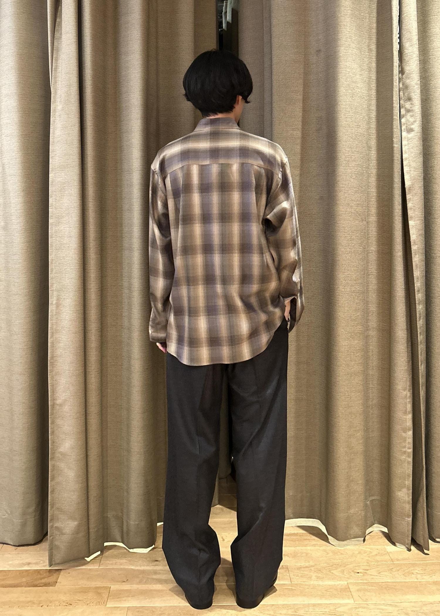 ADAM ET ROPÉ HOMME【AURALEE/オーラリー】SUPER LIGHT WOOL CHECK SHIRTダークブラウン / 4¥49,500レビュー180cm size4着用
