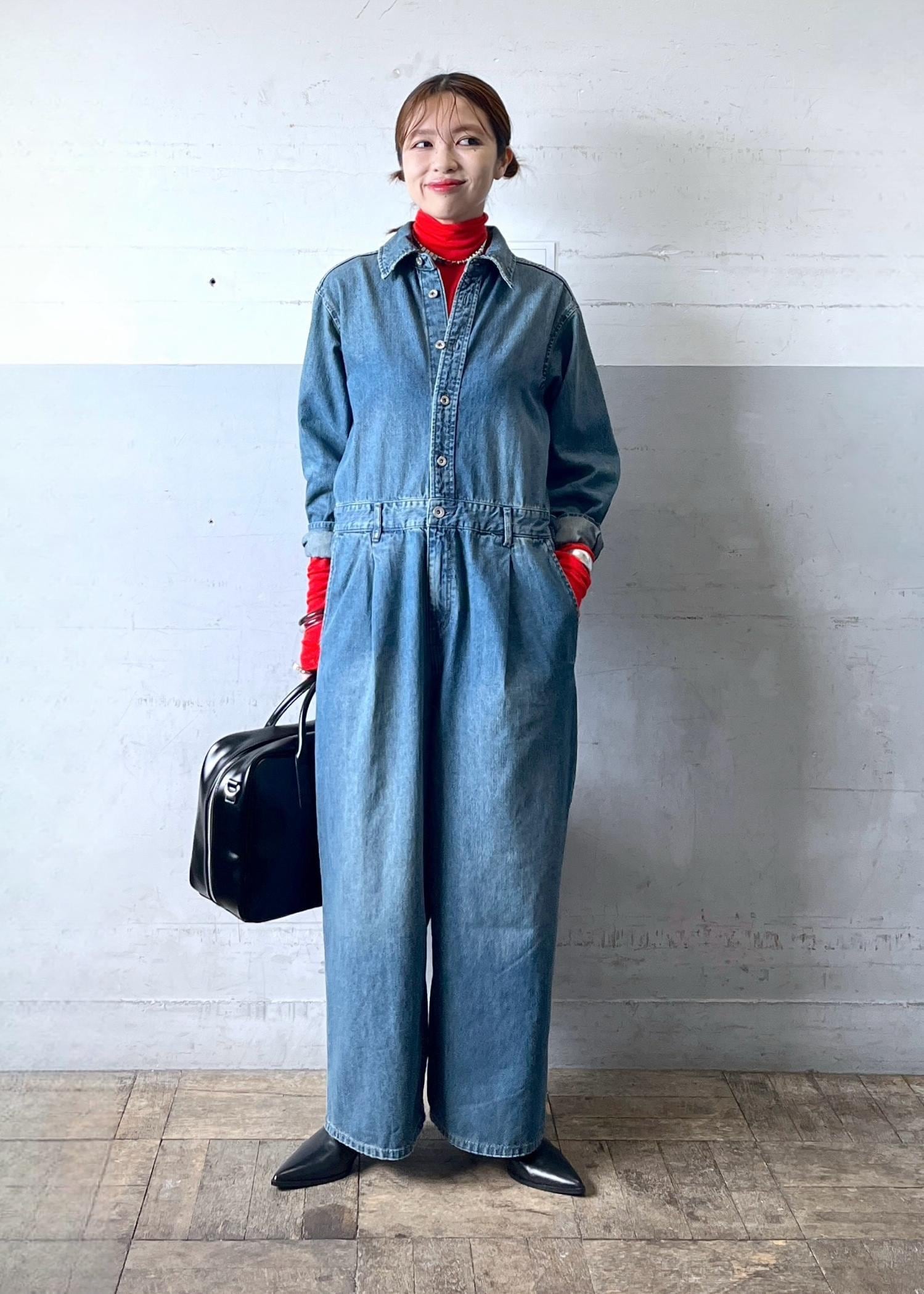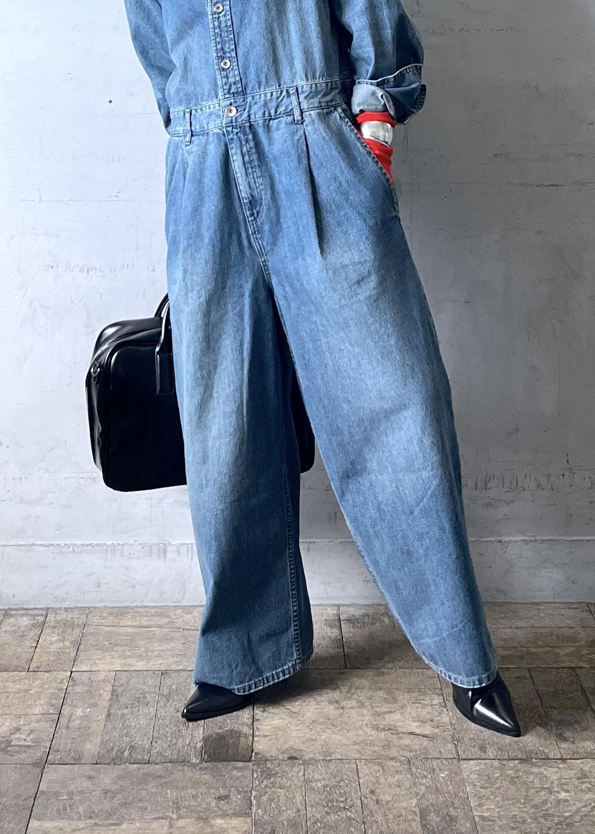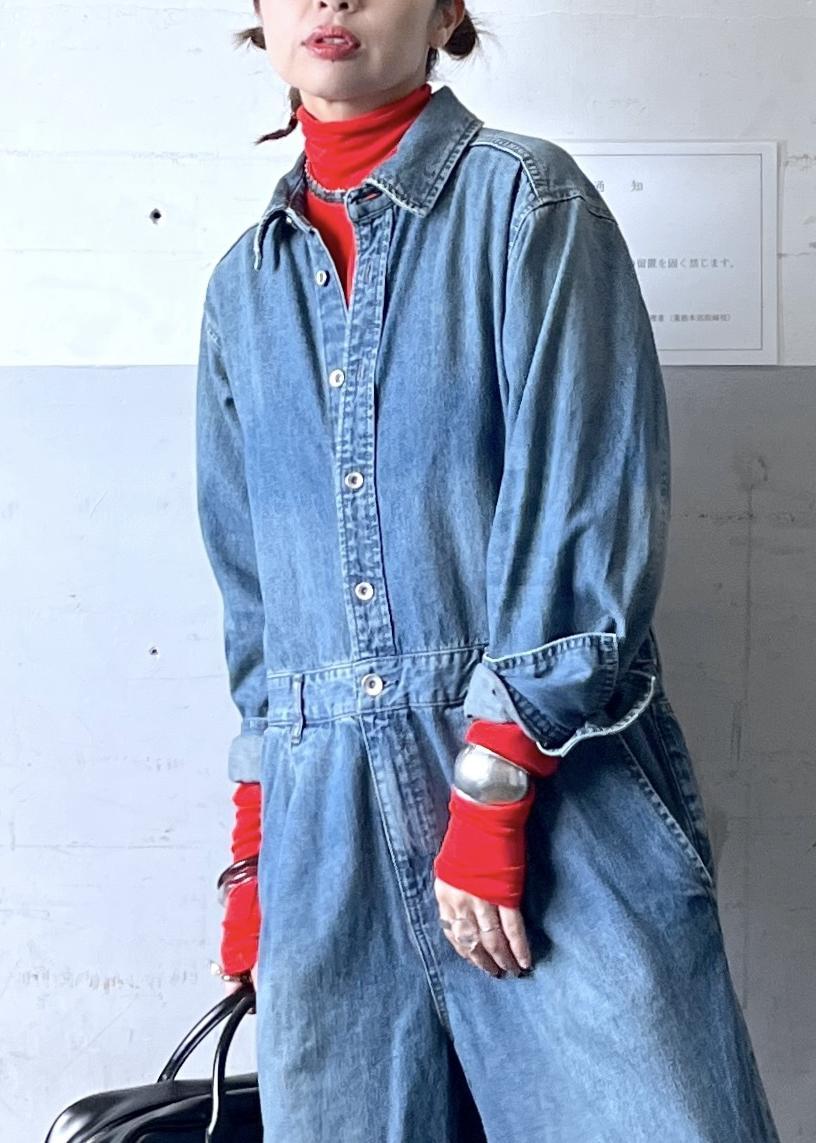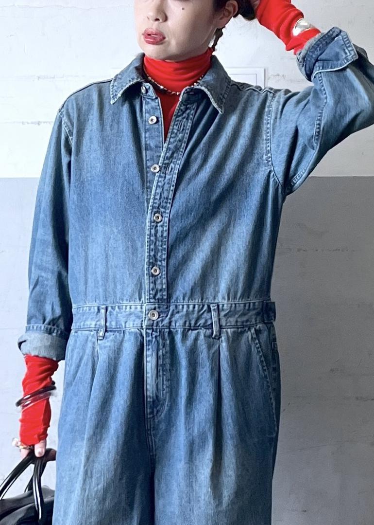 着るだけでこなれ感たっぷりのデニムロンパース。