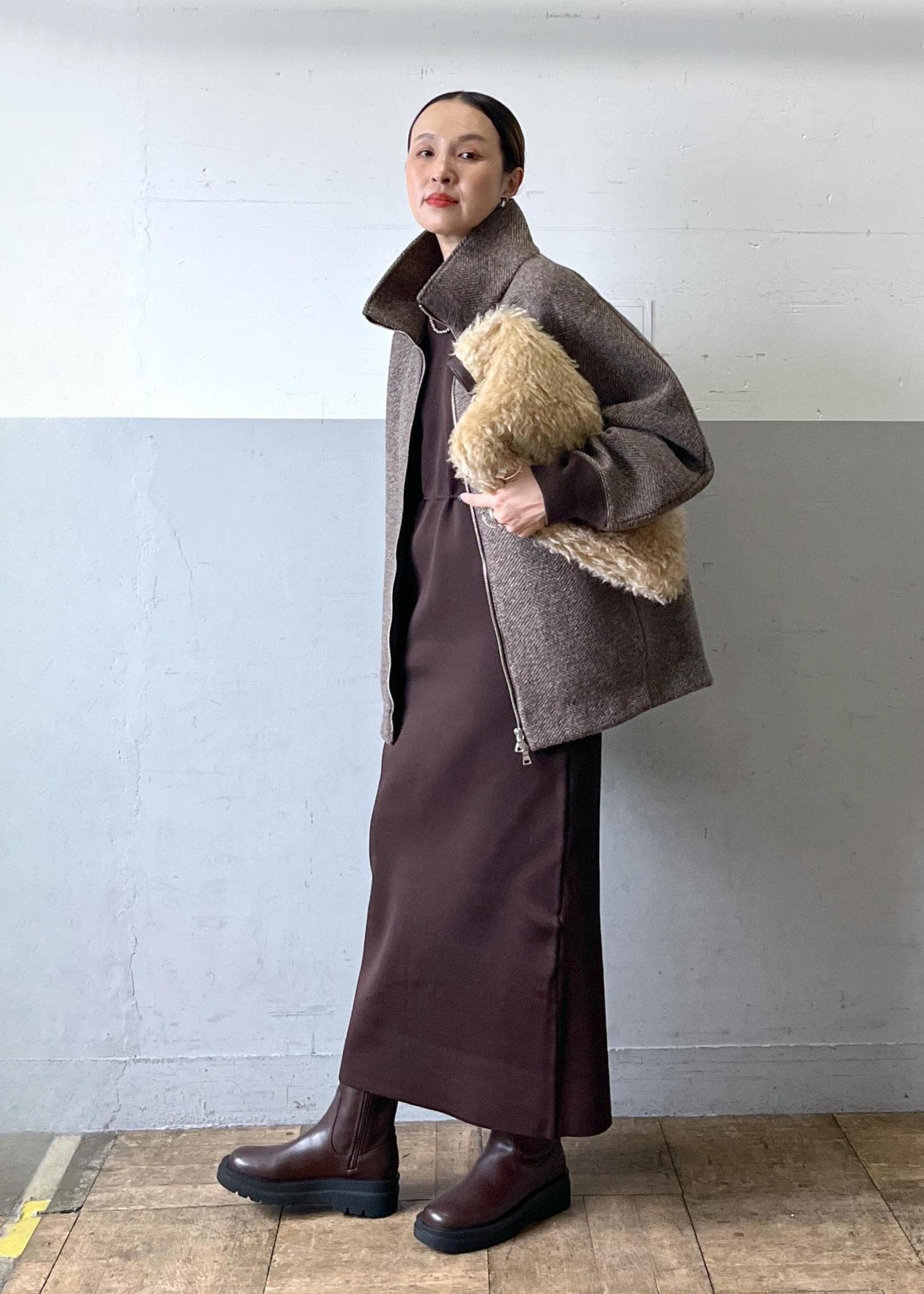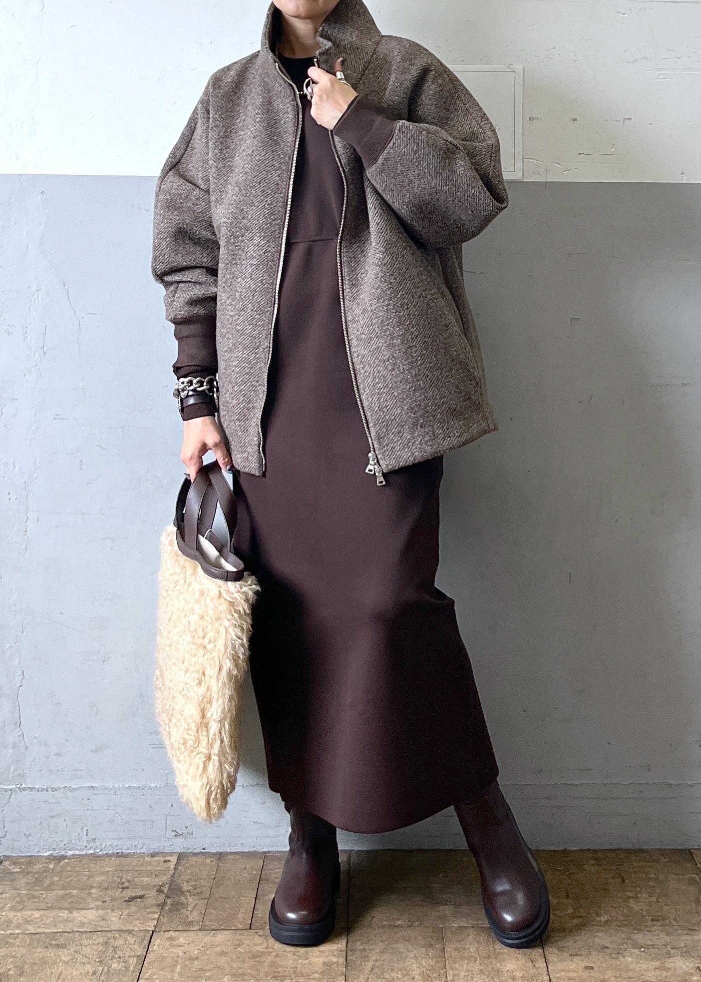 軽くて柔らかく羽織りやすいアウターです!高めのスタンドカラー、ダブルジップ、お尻が隠れる長さでどんなスタイリングにも合わせやすくてバサっと羽織れるのがオススメです!