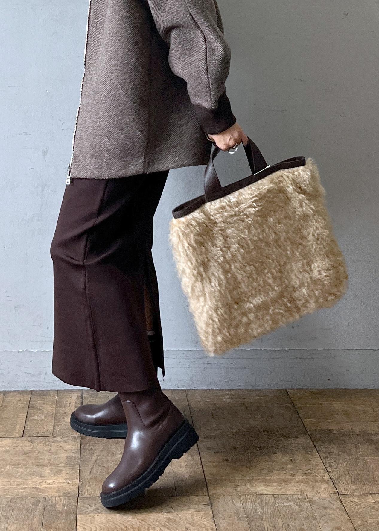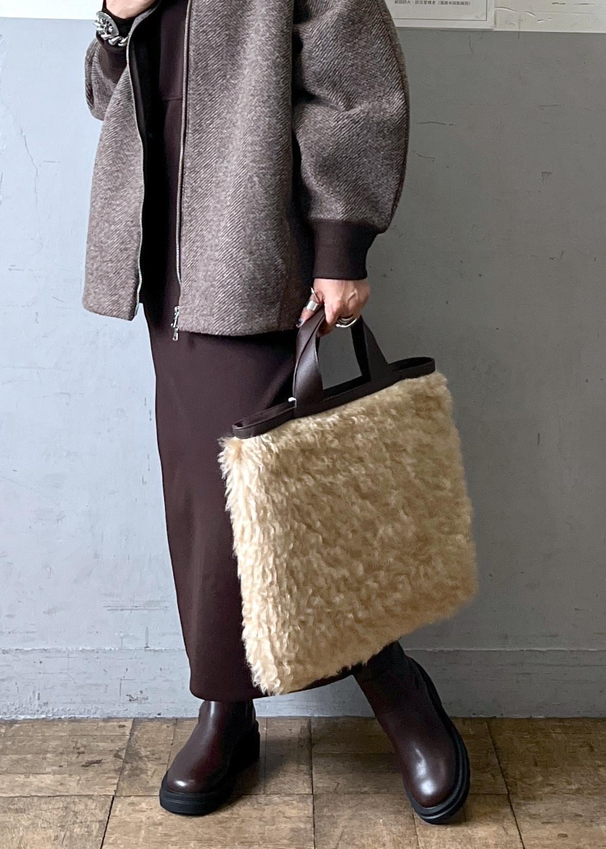 ドイツのぬいぐるみブランド《シュタイフ》のモヘアを使用したフワフワのバッグです。大きさもちょうど良く便利。このボリューム感のあるモヘアファーはスタイリングの大きなポイントにもなります☺︎