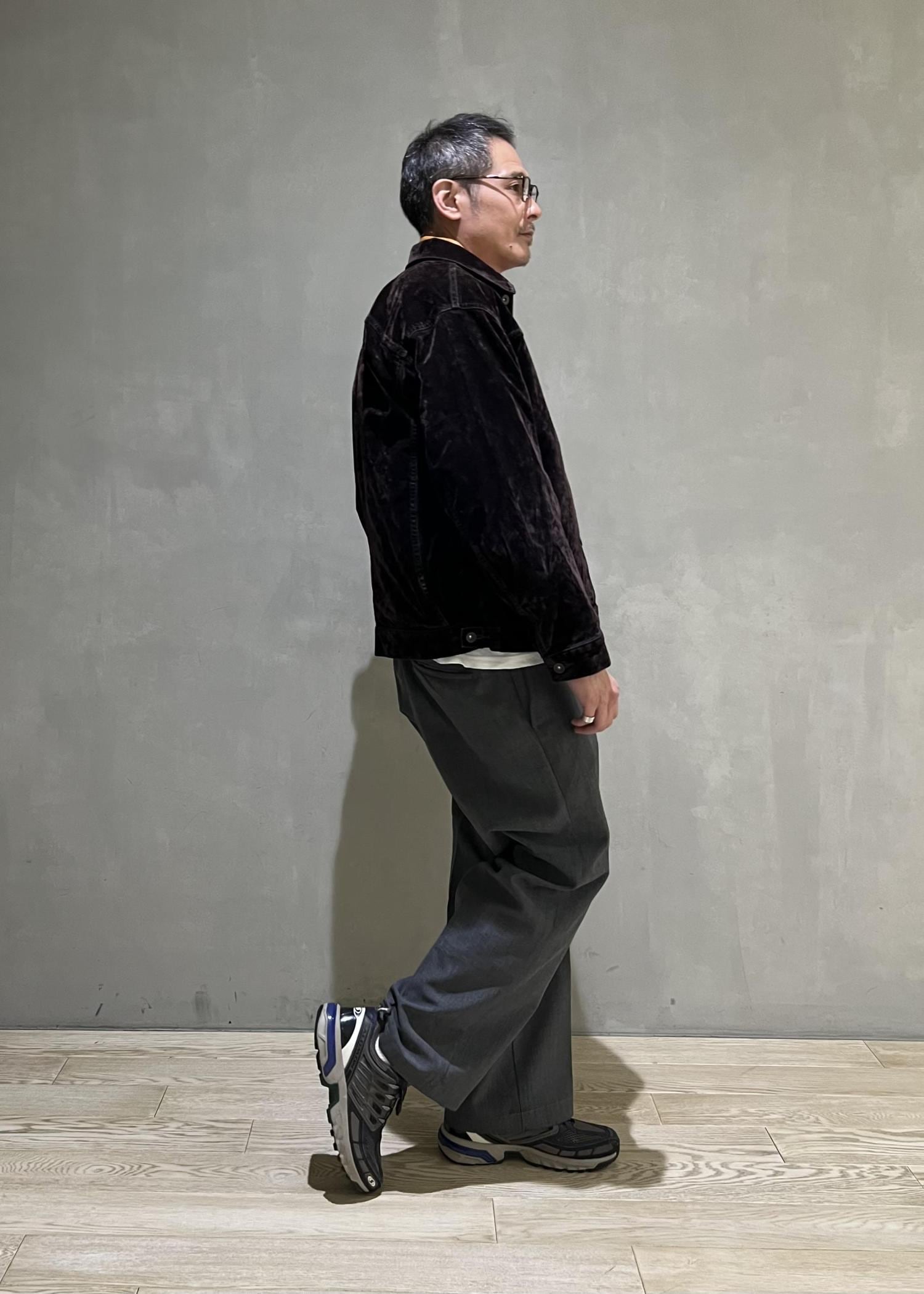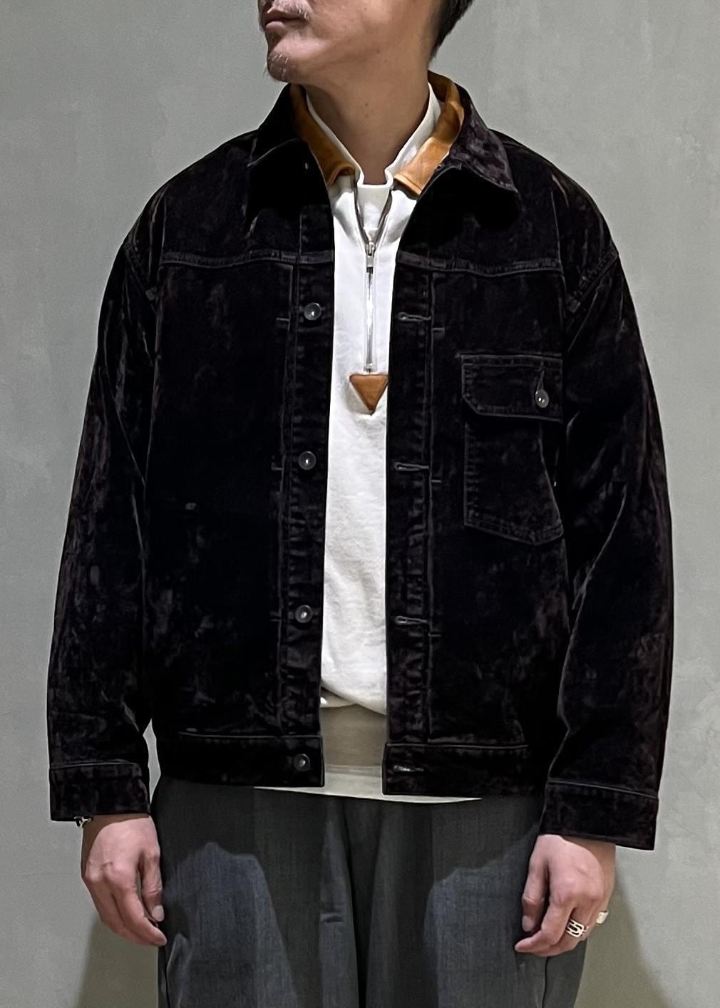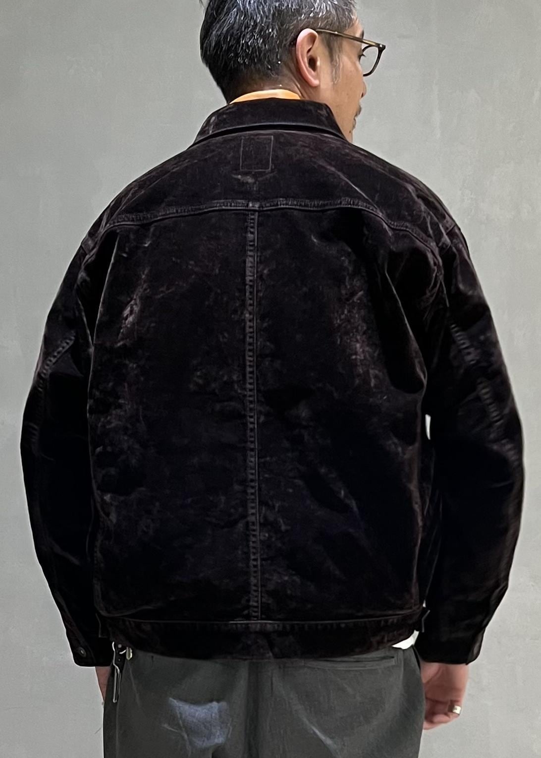ヴィンテージベルベットのようなフロッキー加工をデニムに施したジャケットで、エイジングも楽しめそうです!
