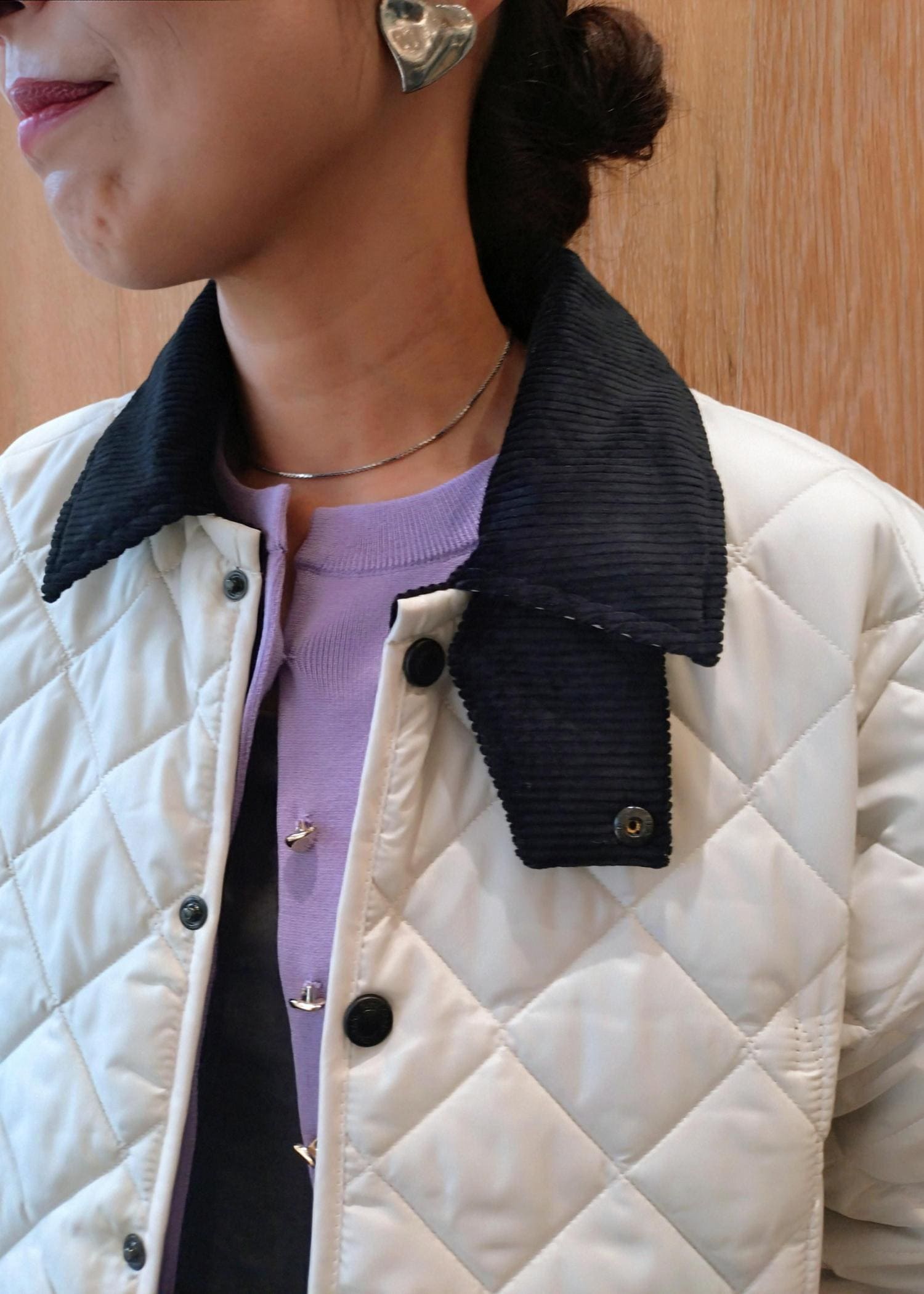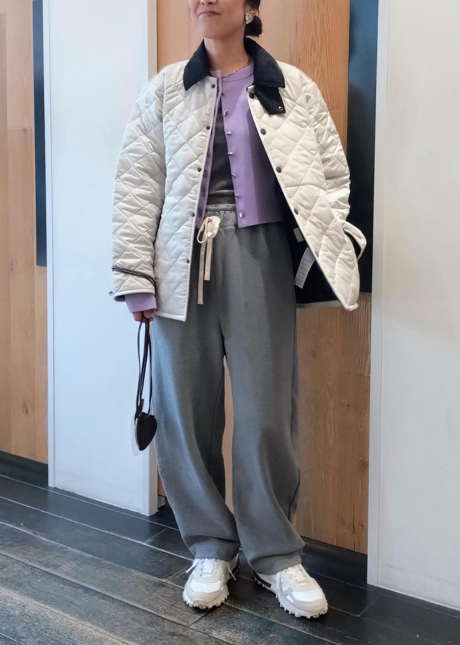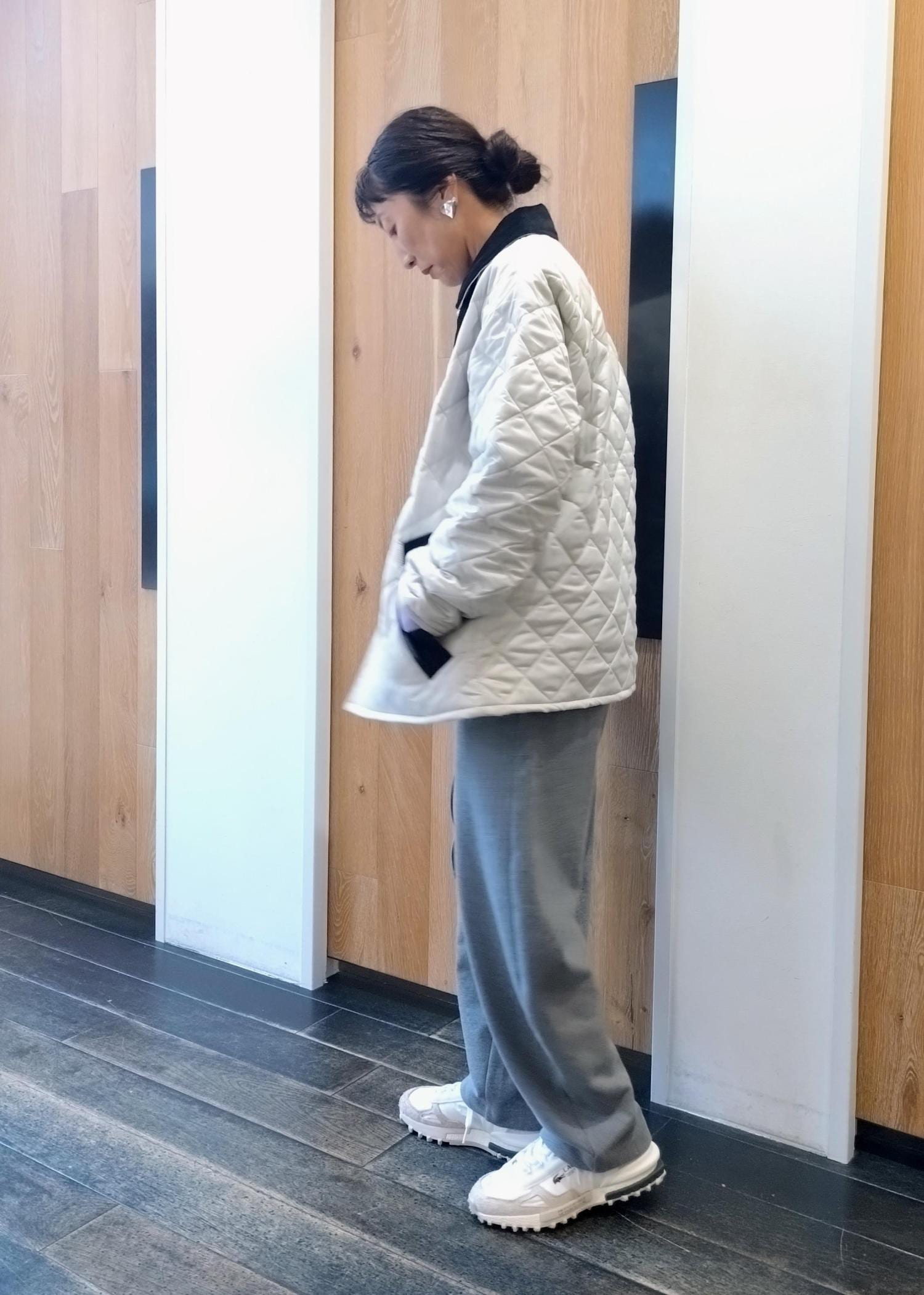 キルティングなのでカジュアルに、休日のんびりスタイリングにしてみました。