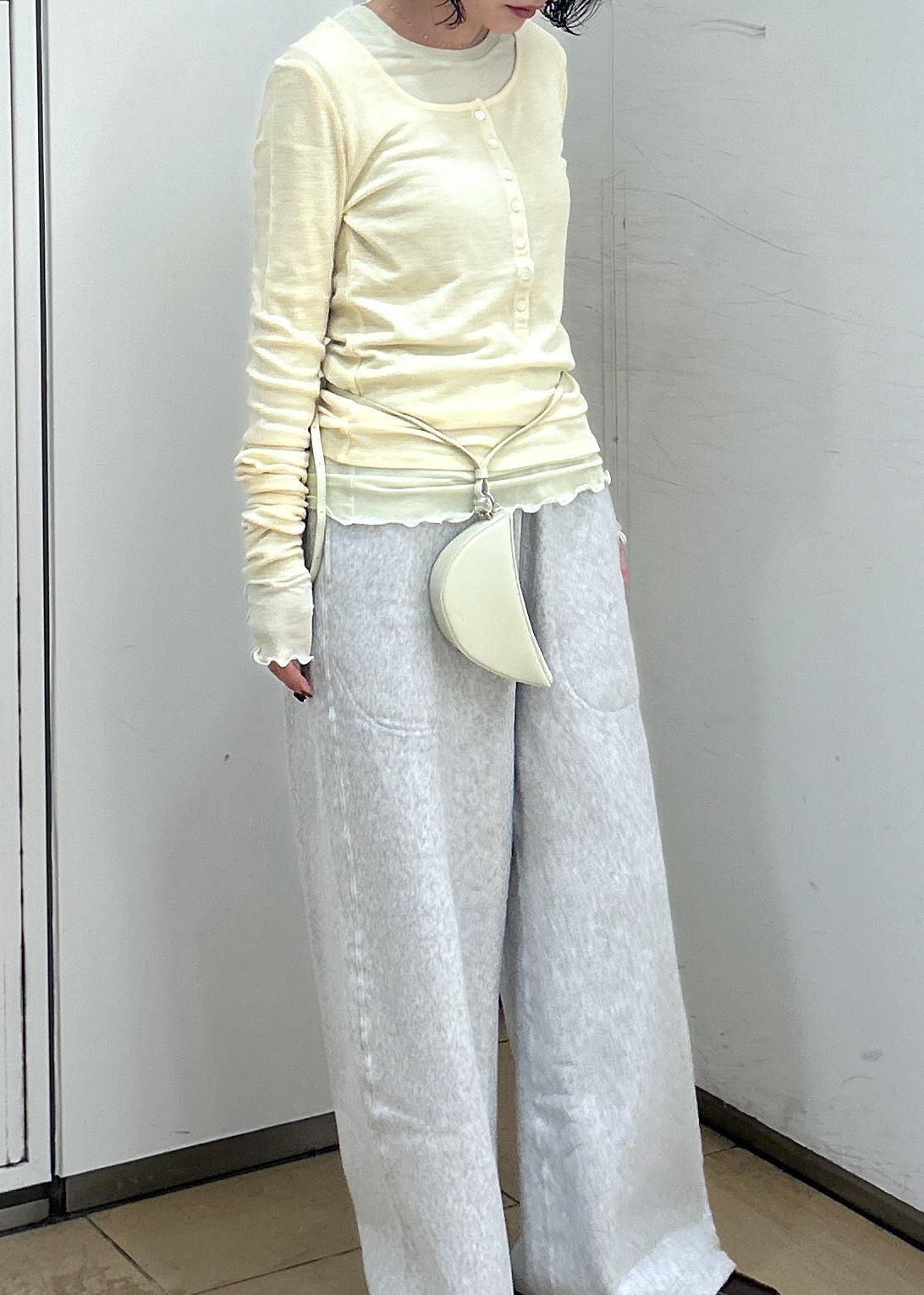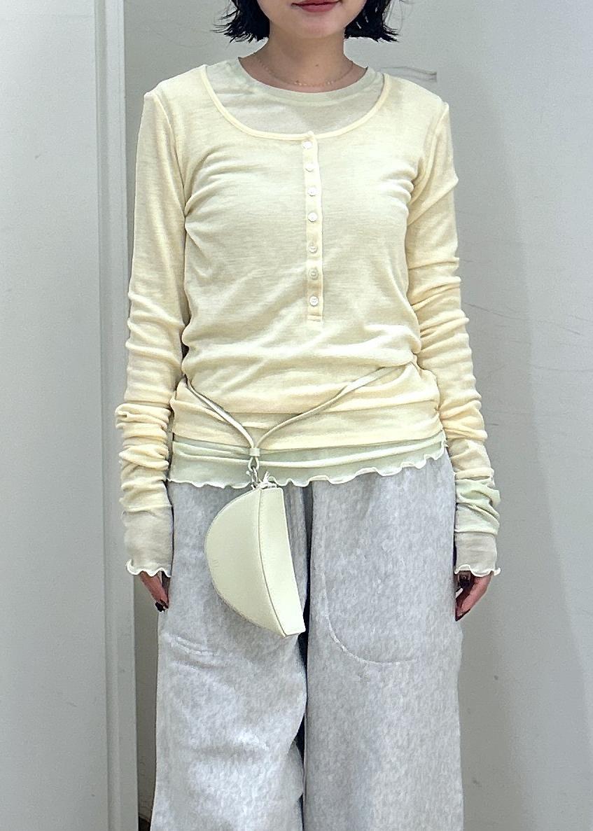 ADAM ET ROPÉ FEMMEヘンリーネックカットオフウールプルオーバーキナリ / F¥14,300レビュー襟が大きく開いたトップスで、鎖骨を綺麗に見せてくれます!