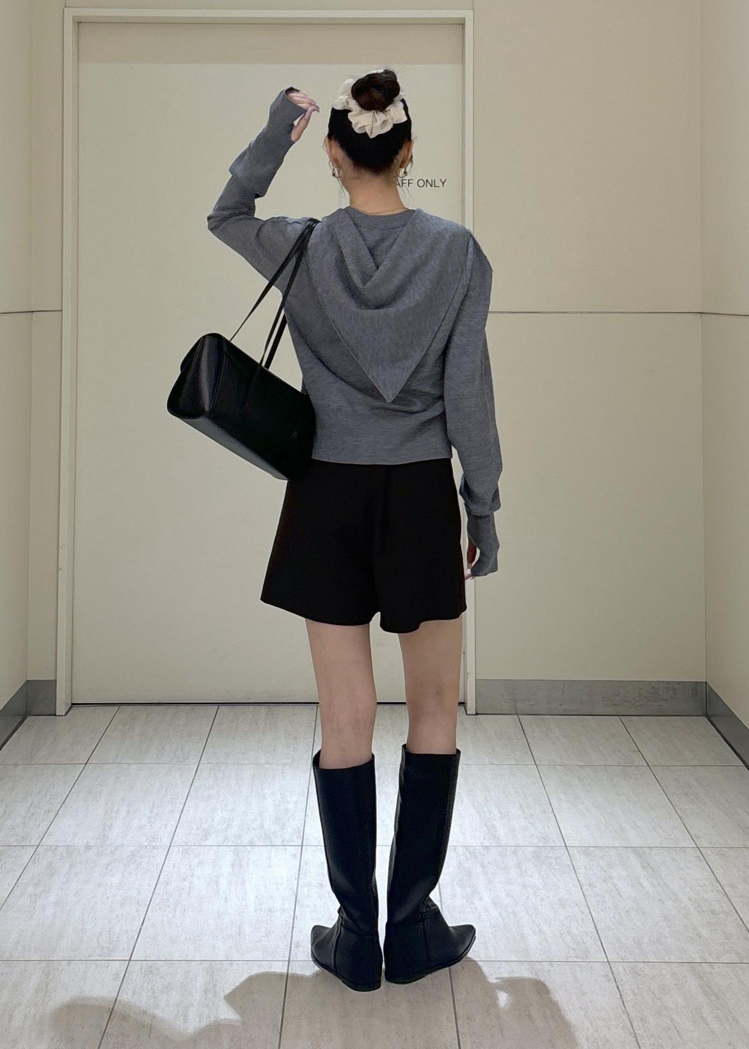 伸縮性があり、程よく身体のラインを拾ってくれるので、すっきり見えます! -