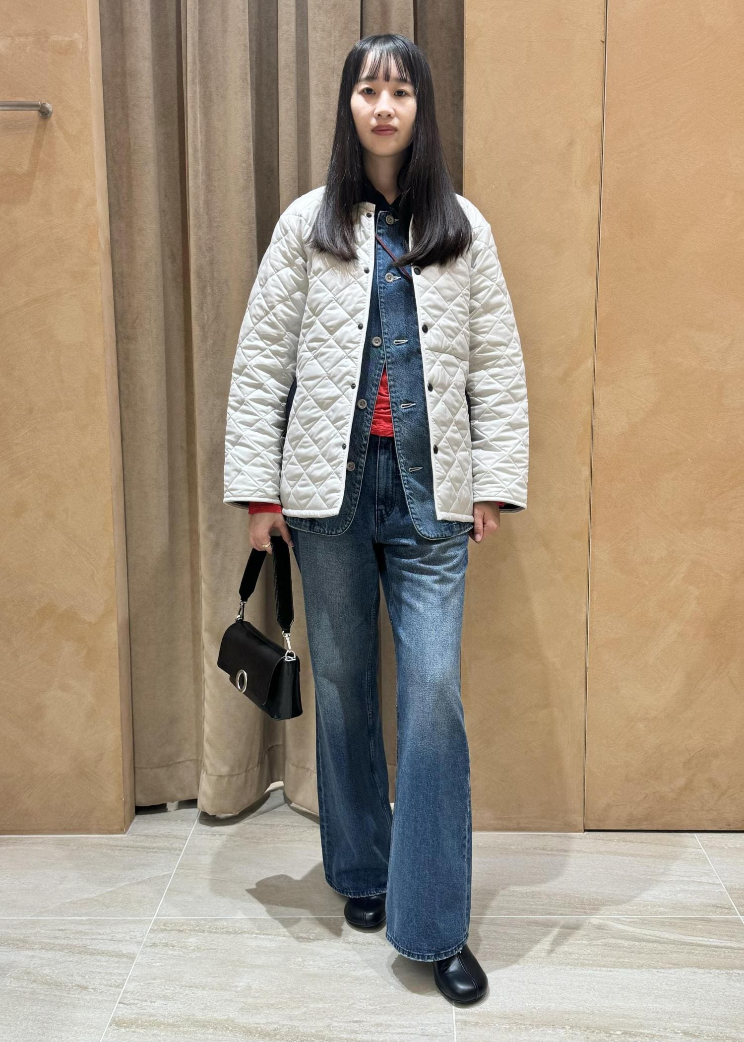 ADAM ET ROPÉ FEMME【LAVENHAM for ADAM ET ROPE'】別注 SQUARE HEM RAYDONオフホワイト / M¥69,300レビューアームが広いのでデニムジャケットがまたつかずに着れました。とても軽いです。