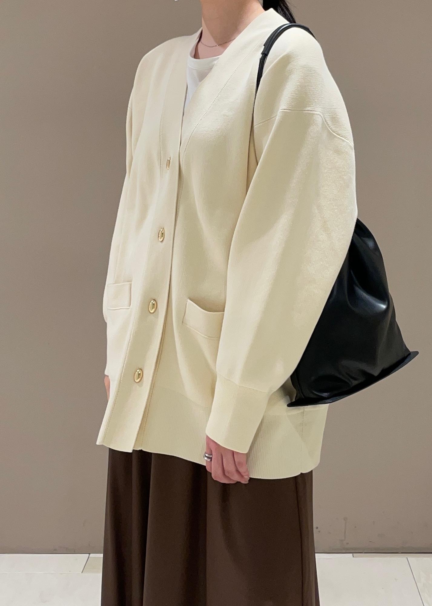 楕円形の金ボタンが大人かわいい、ゆったりカーディガンのご紹介です❤︎