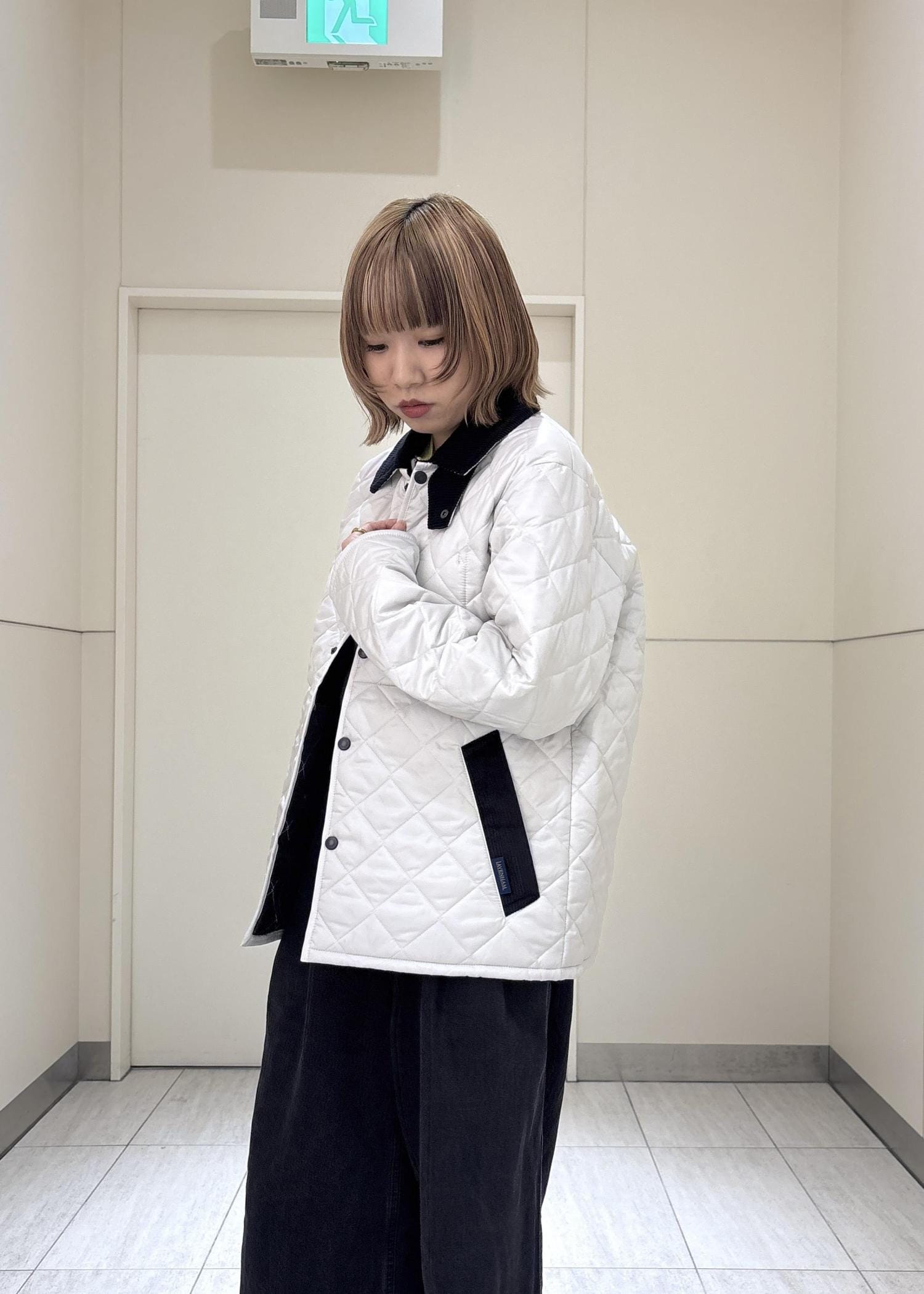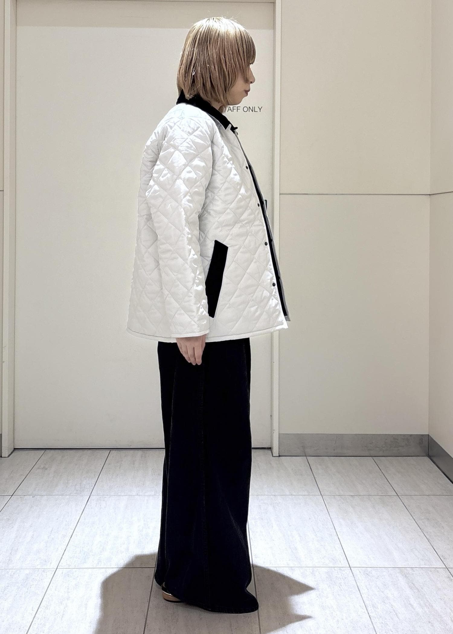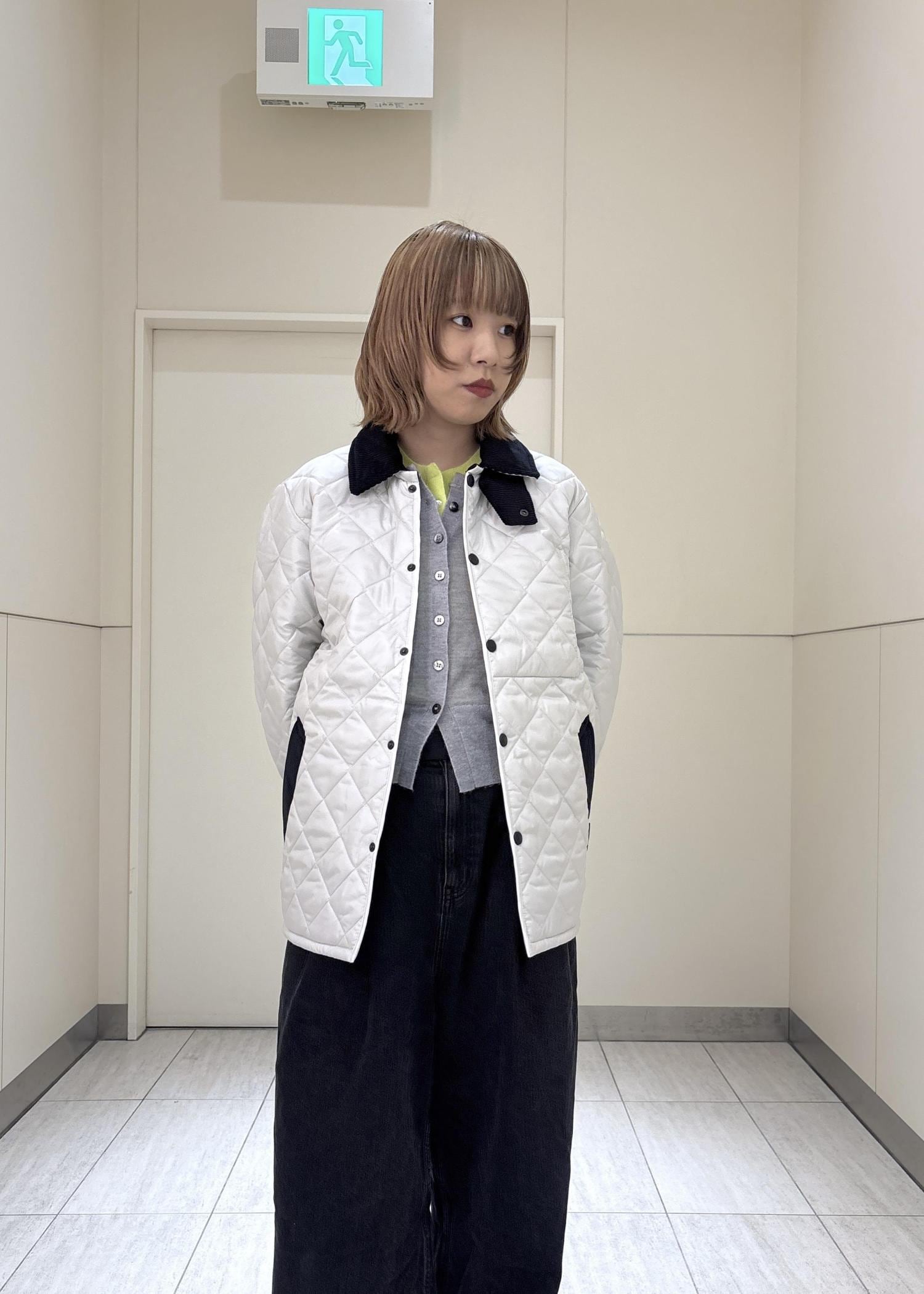 襟元のコーデュロイが可愛いく女性らしさがあり冬に着用アウター間違いなしです!