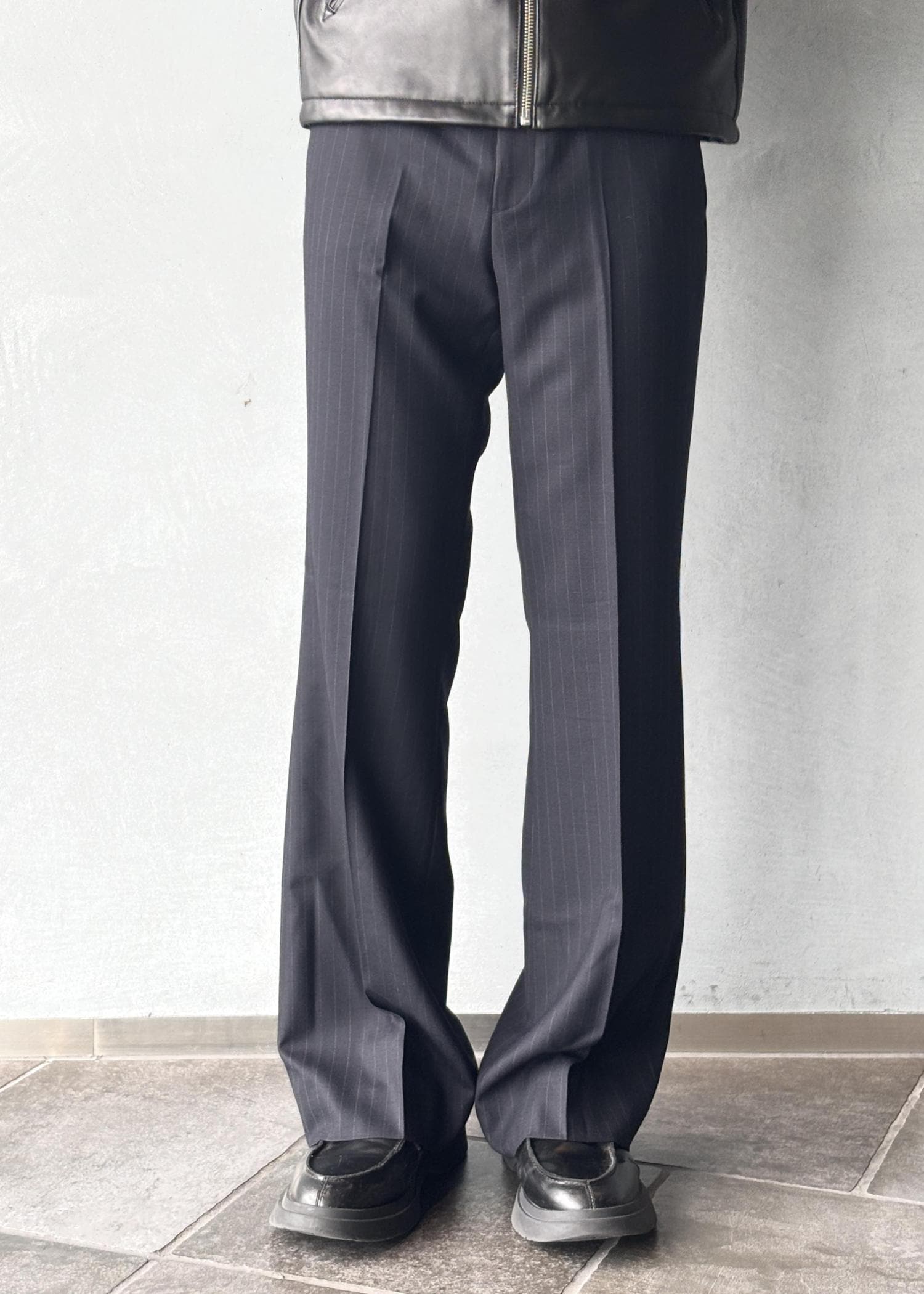 ADAM ET ROPÉ HOMME【TONYWACK/トニーウェック】STRIPED WOOL FLARED TROUSERSネイビー系 / M¥40,700レビュー181cm細身ですがMサイズでちょうどいい丈感とフィット感。