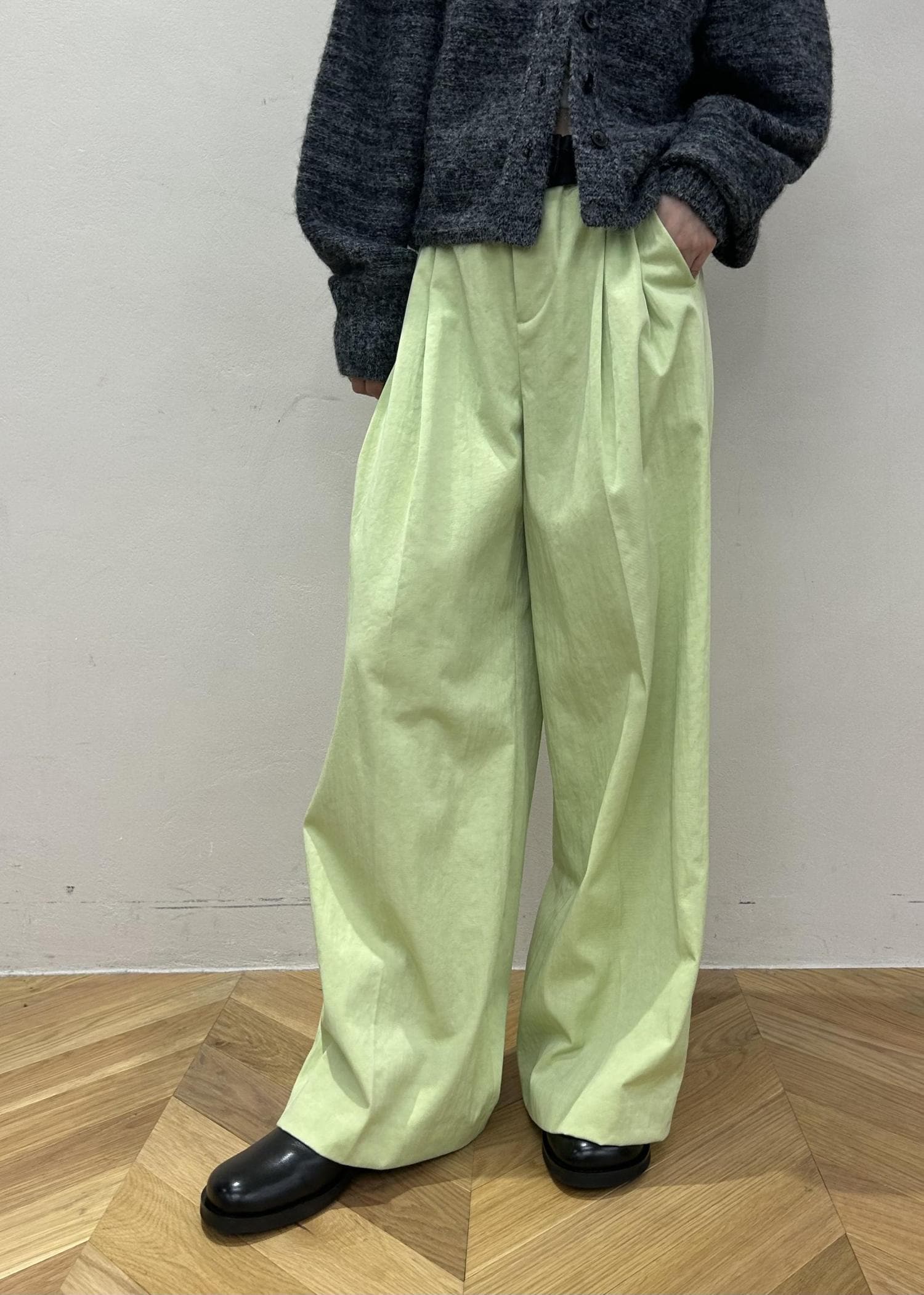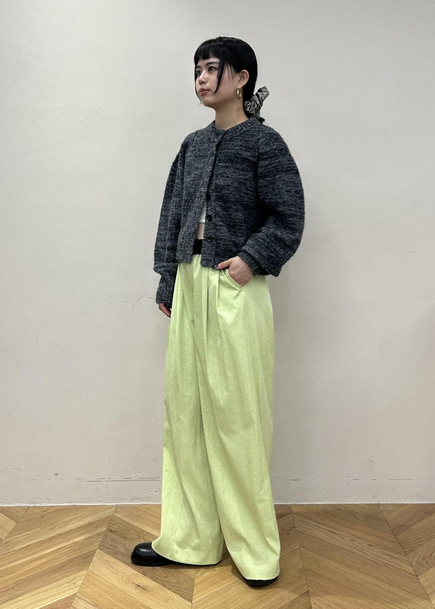 今回はトップスが優しい色合いなのでボトムは鮮やかな色を合わせてメリハリのあるコーディネートにしてみました。