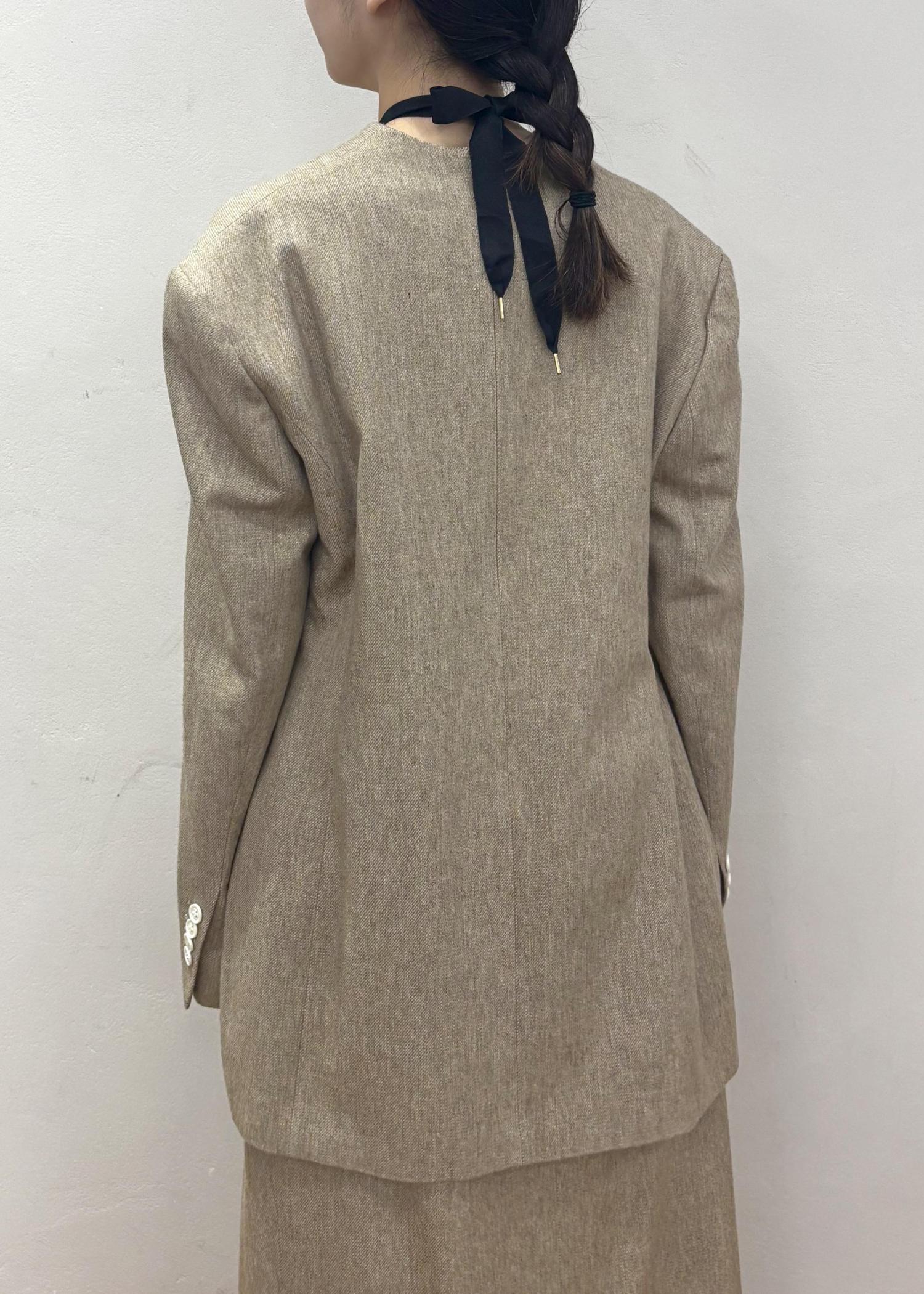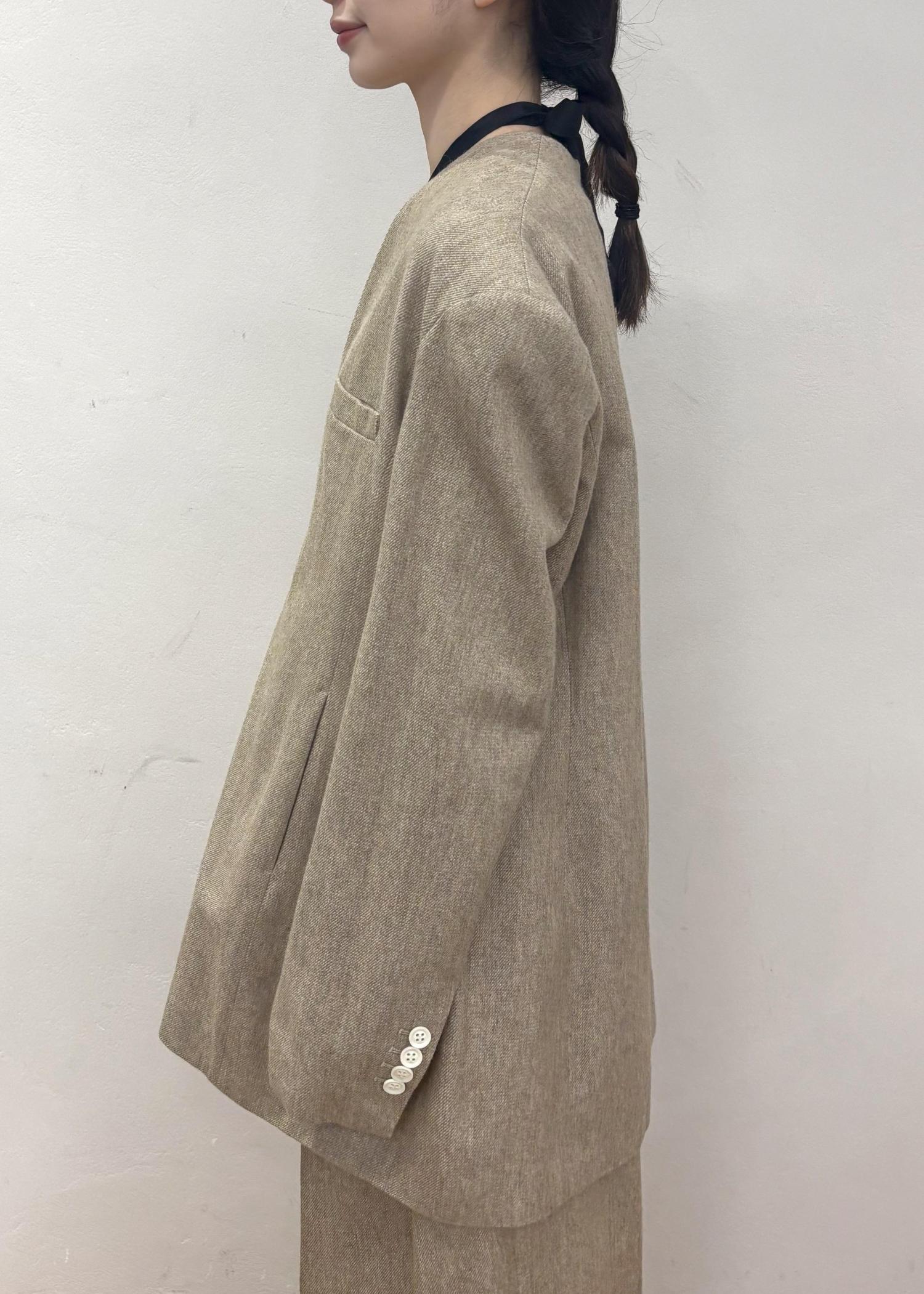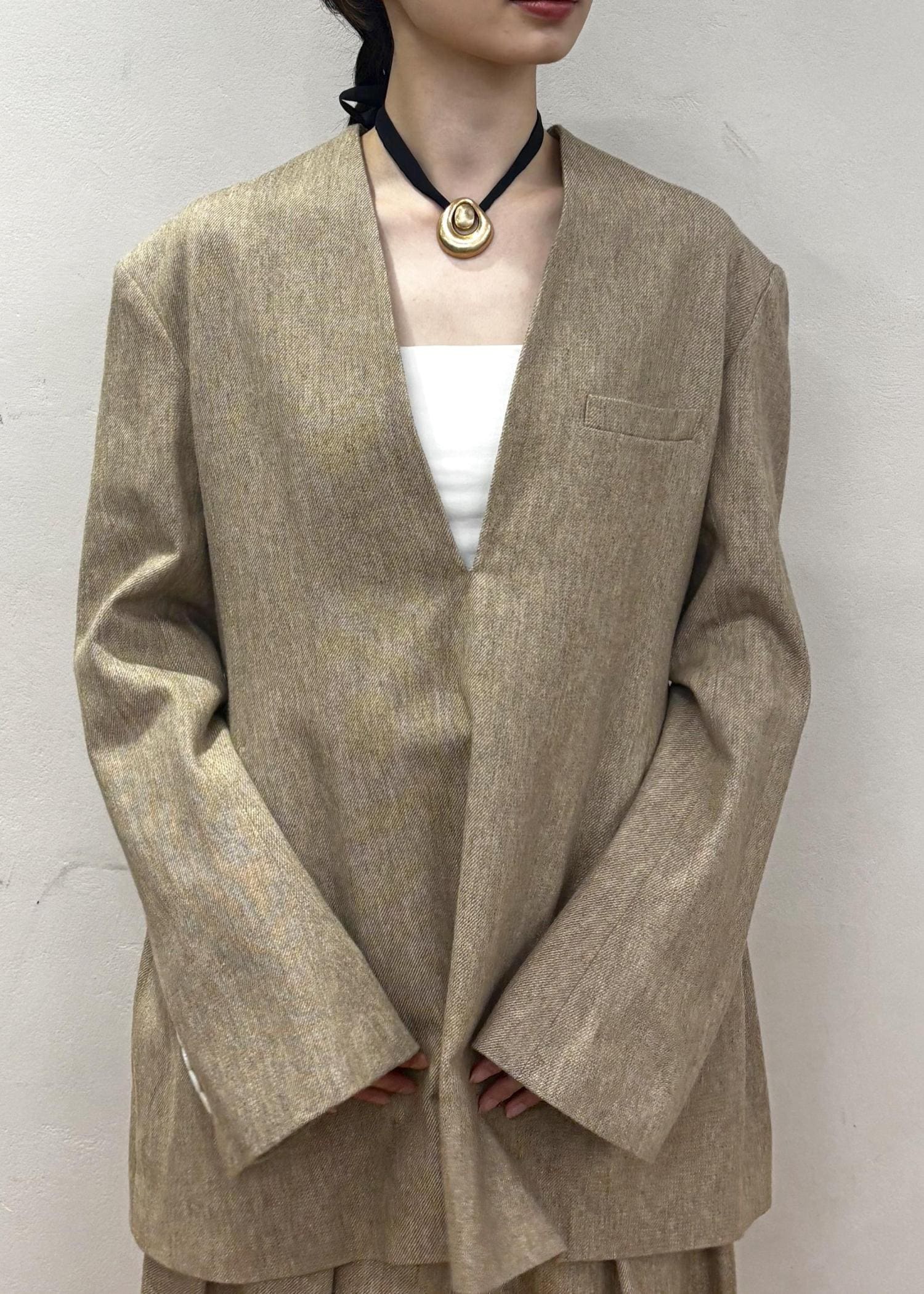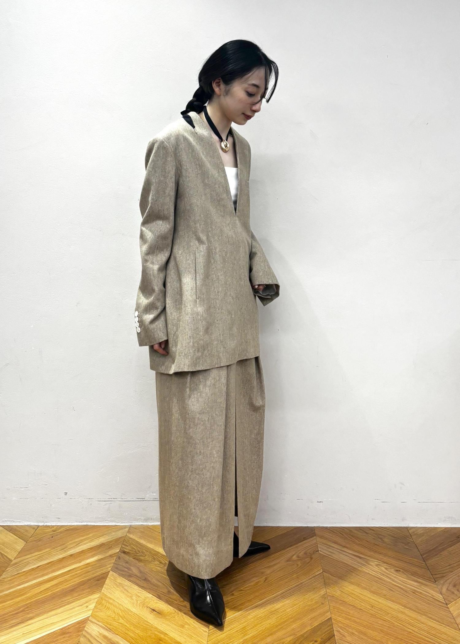 EMOELLE【EMOELLE】ウールコットンジャケットライクブラウスベージュ系 / 38¥39,600レビューブラウンや白っぽい糸が混ざった生地なので、深みが出てより上品な印象にしてくれます☺︎サイズ感はオーバーめですが、首元のVや、太すぎない腕のラインでルーズな印象にならないです♪オケージョンだけでなく、カジュアルダウンしたスタイリングにもハマるので様々なシーンで着ていただけます!