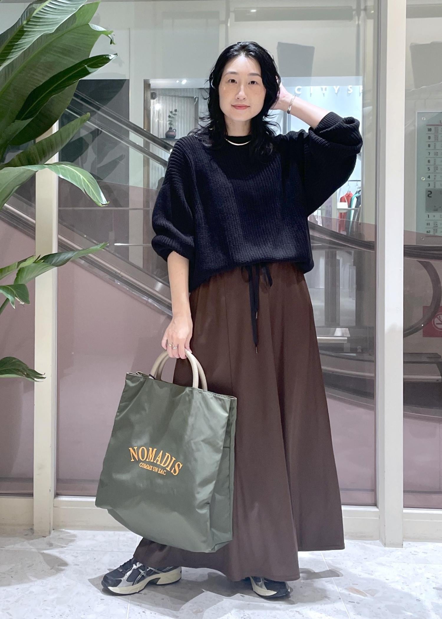 長時間の移動にもストレスにならず、シワも気にせず楽に履けるスカートがおすすめです。