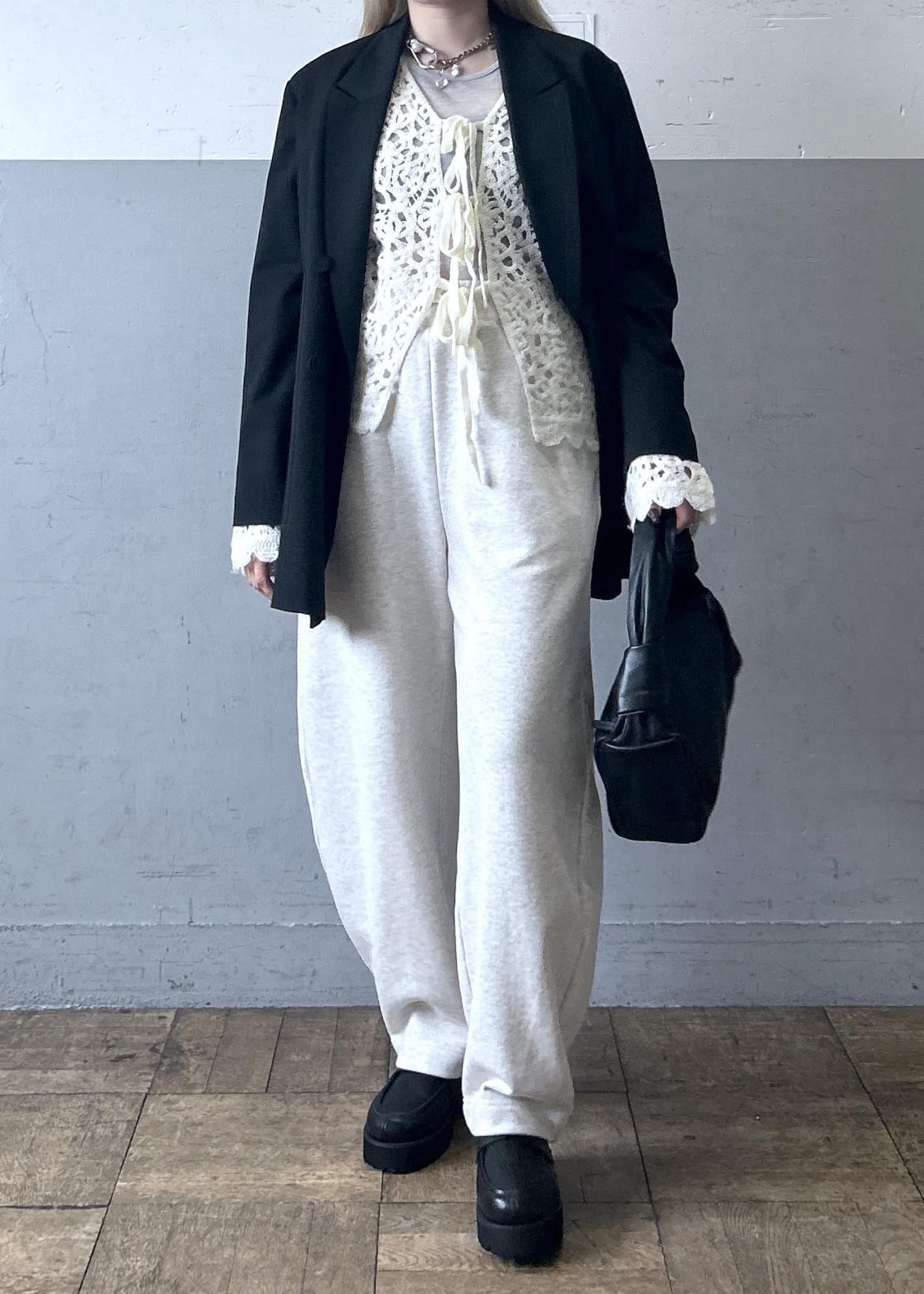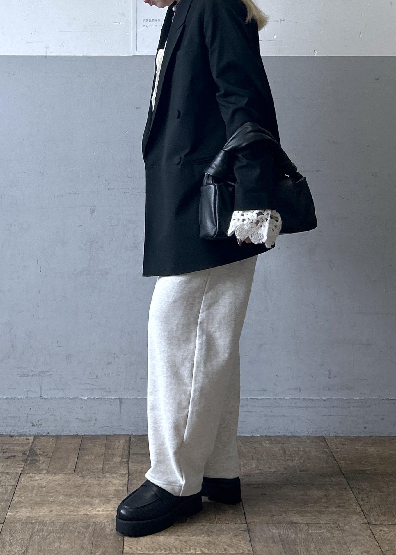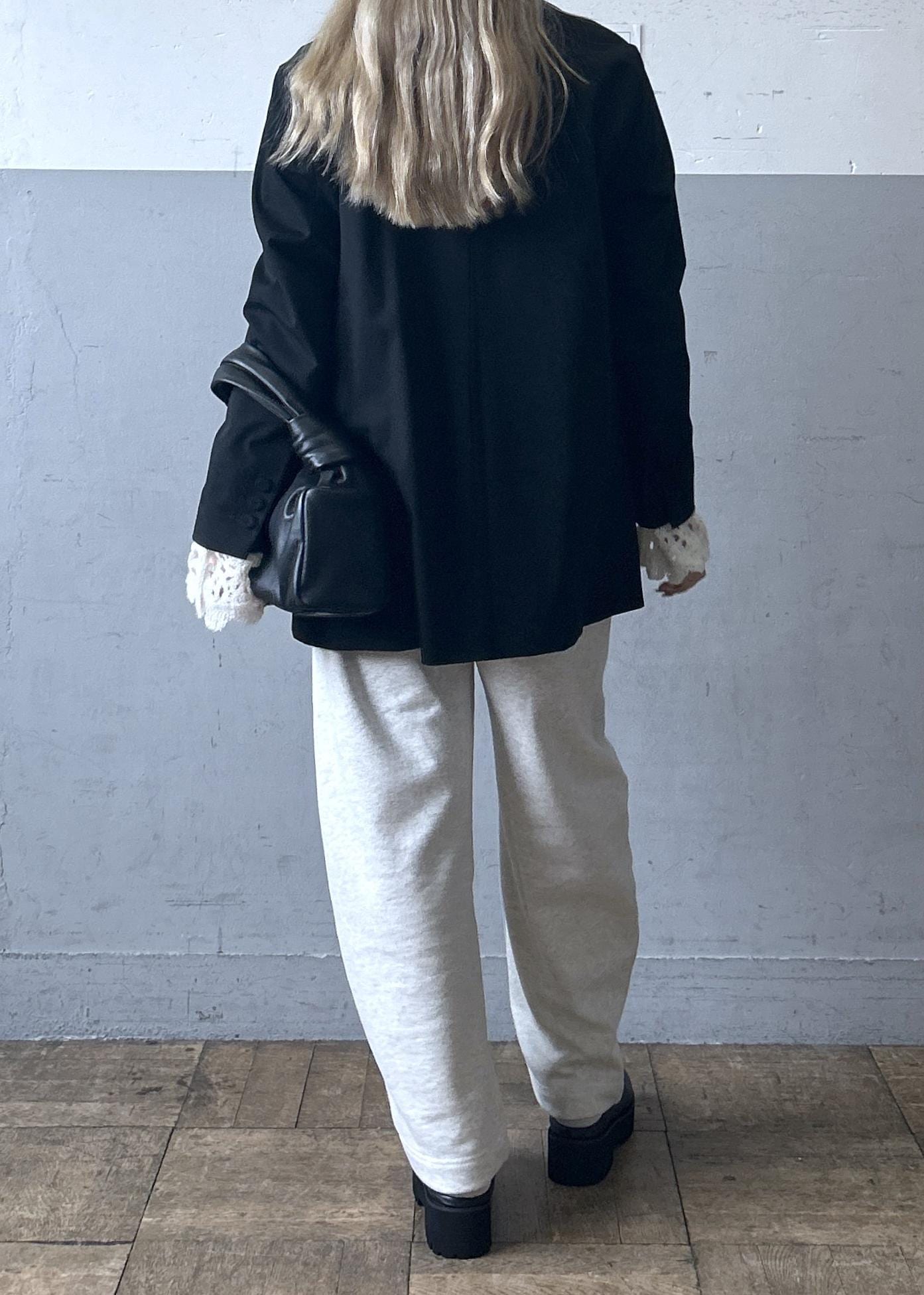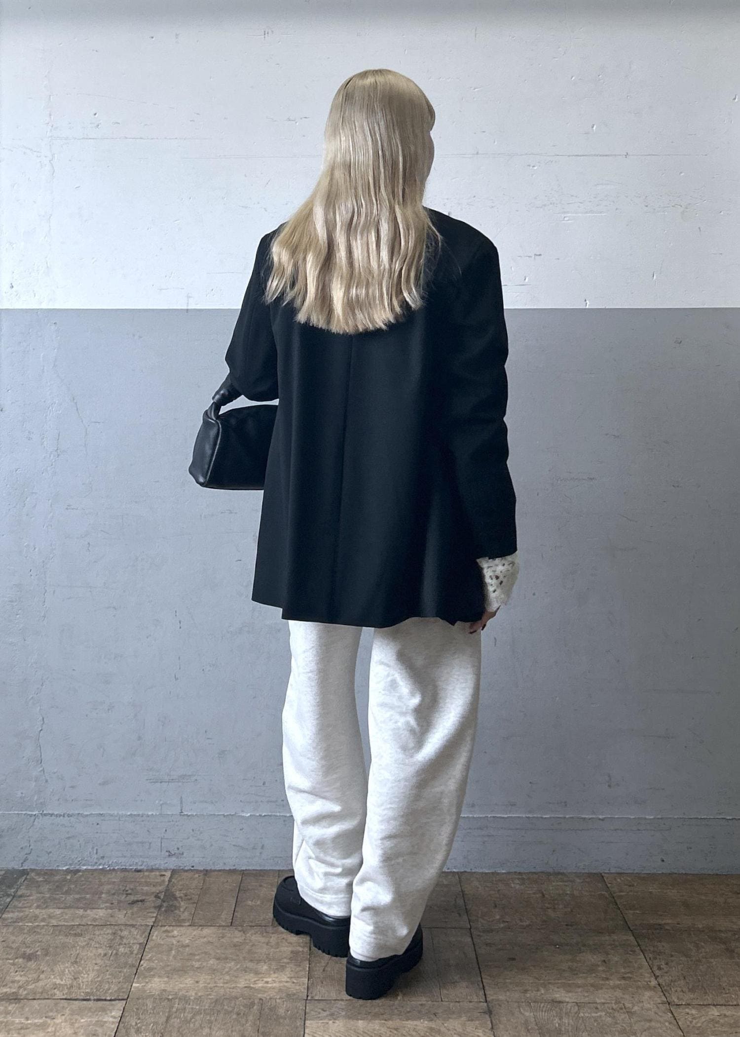 ジャケットはオーバーサイズのシルエットなので、厚手のニットなどの上から着てもかさばらずにスッキリ着ていただけます。