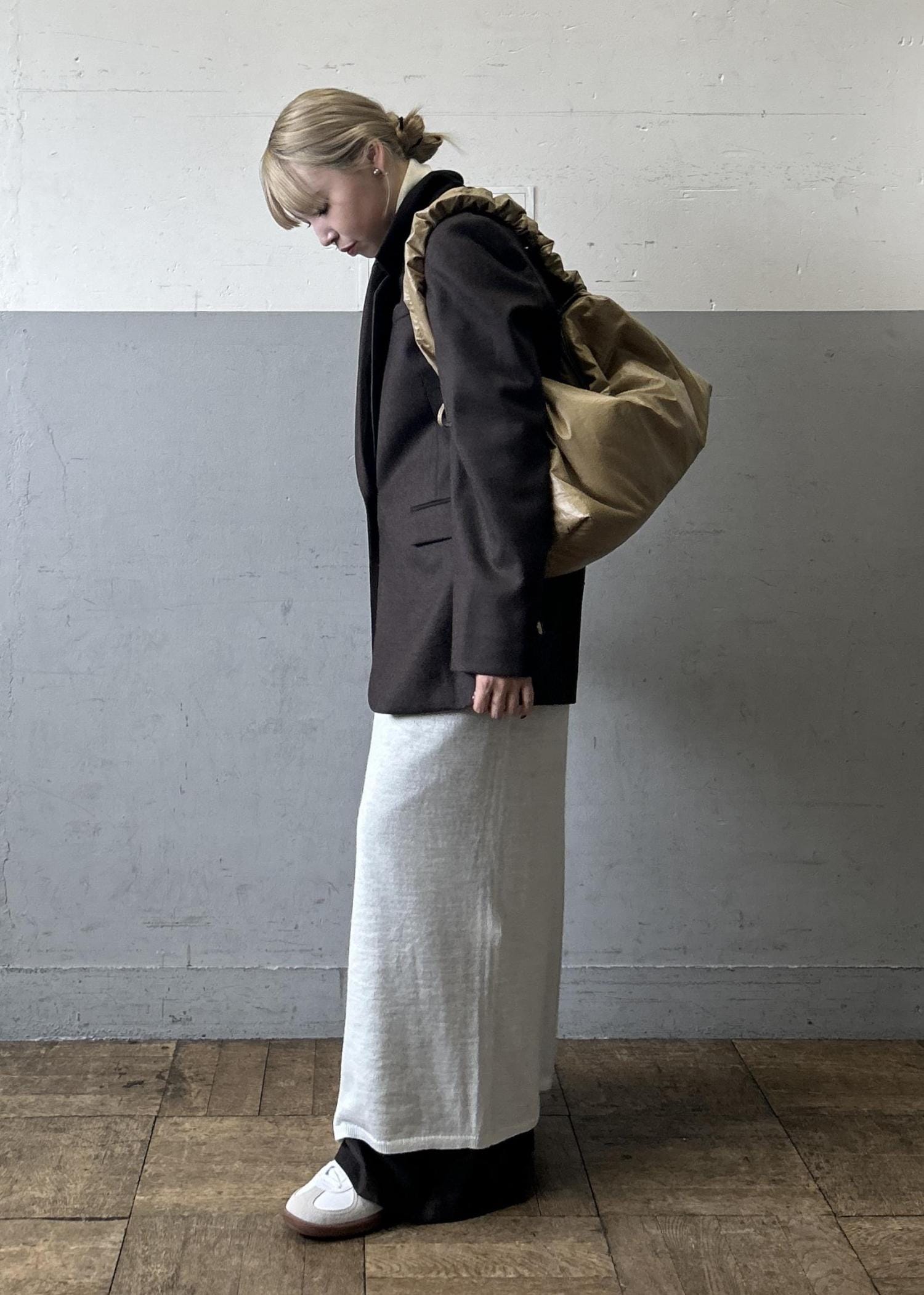 でも下にストンと落ちるシルエットが綺麗で、ラフに見えすぎずないデザインです。