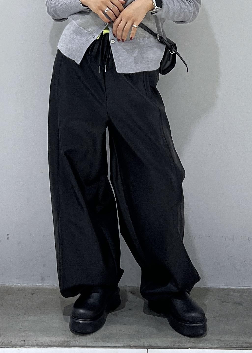 ADAM ET ROPÉ FEMMEシンセティックレザートラックパンツブラック /¥20,900レビューシルエットがカーブのデザインになっているのでカジュアルコーデにぴったり◎
