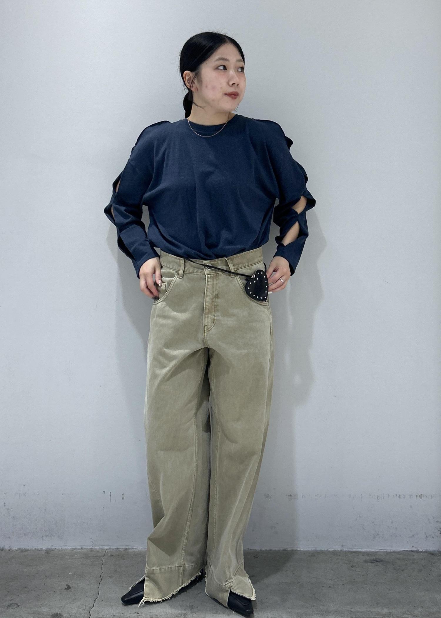 ネイビーでシンプルで使いやすいアイテムですが、袖のデザインがとても可愛く、中にインナーをレイヤードしても可愛いと思います♡