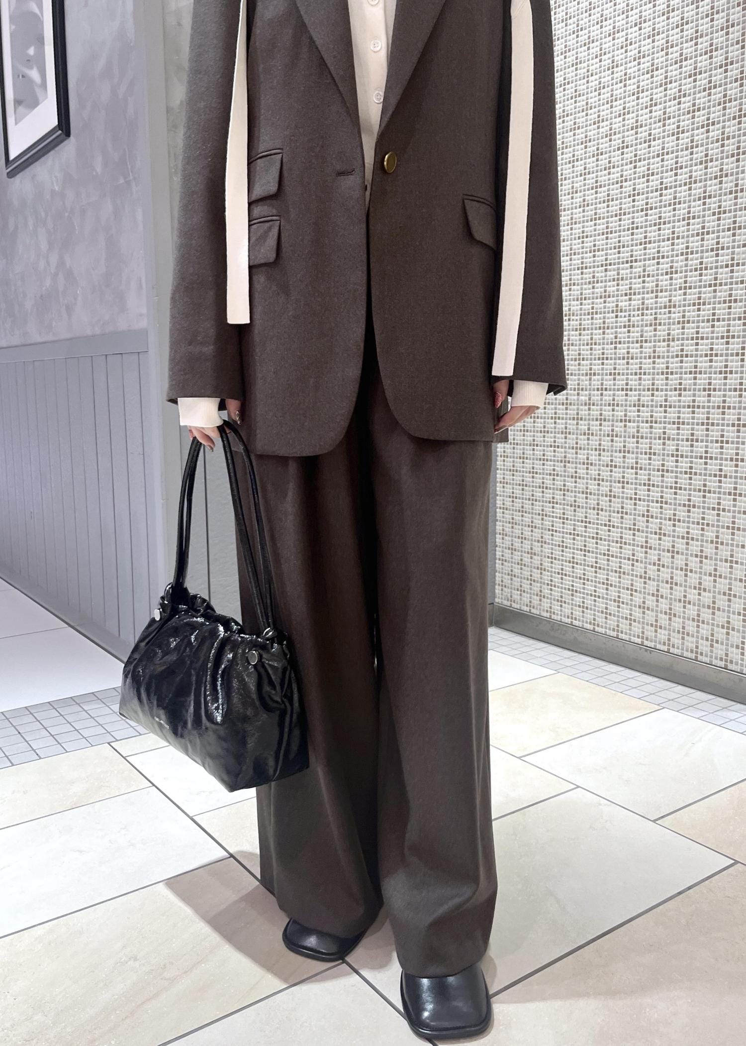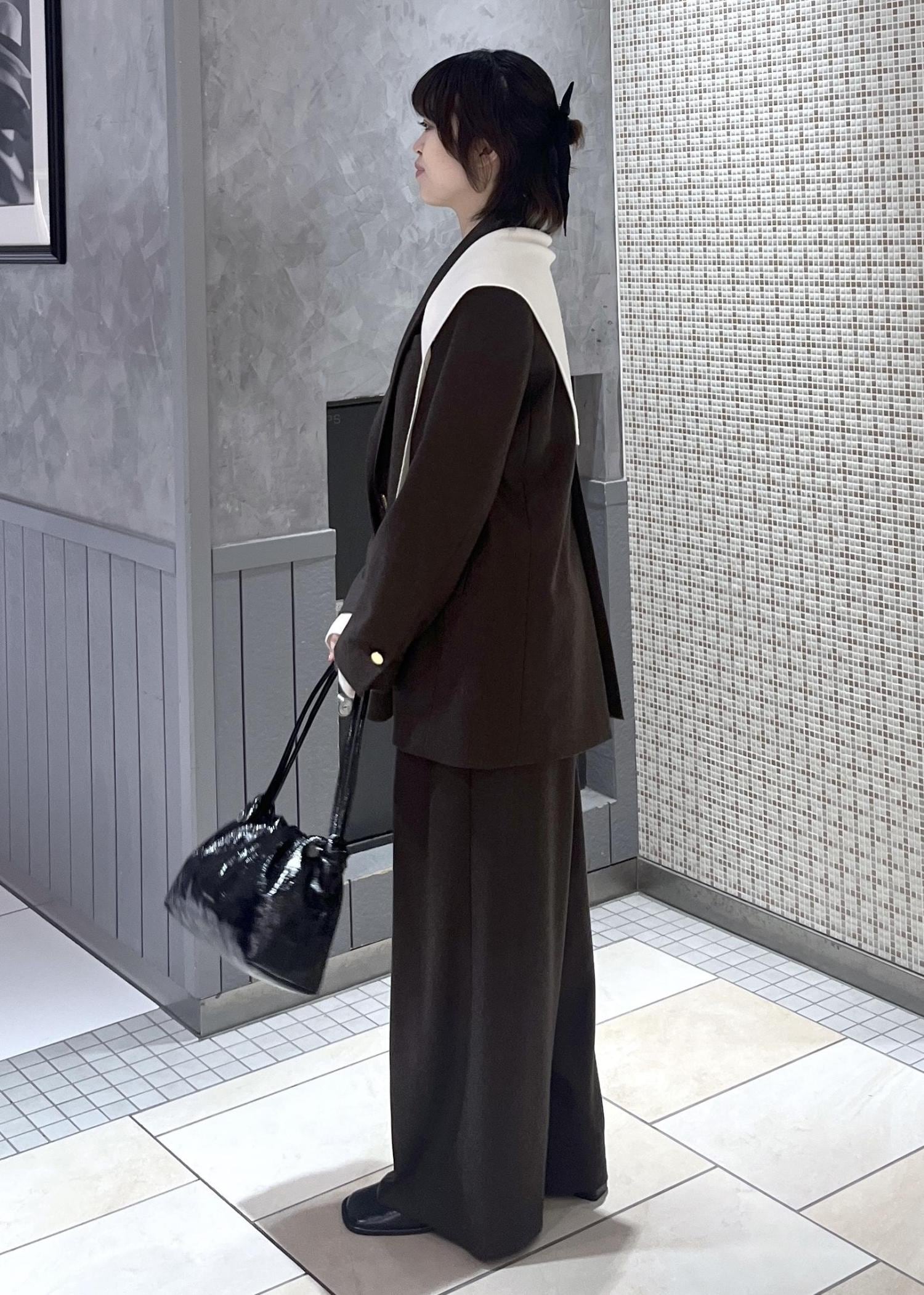 ADAM ET ROPÉ FEMMEイージースラックスダークブラウン / 36¥26,400レビュー158cmの私は、フラットシューズだと擦ってしまう長さでした。ワイドで着心地も楽ちんなのに、きちんと感もあってお気に入りです!特にセットアップだとしっかり決められます◎