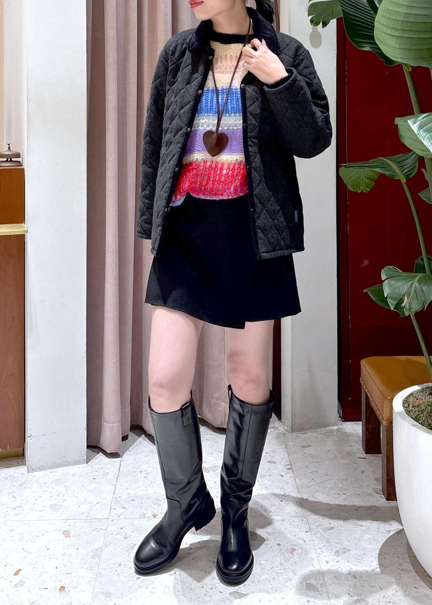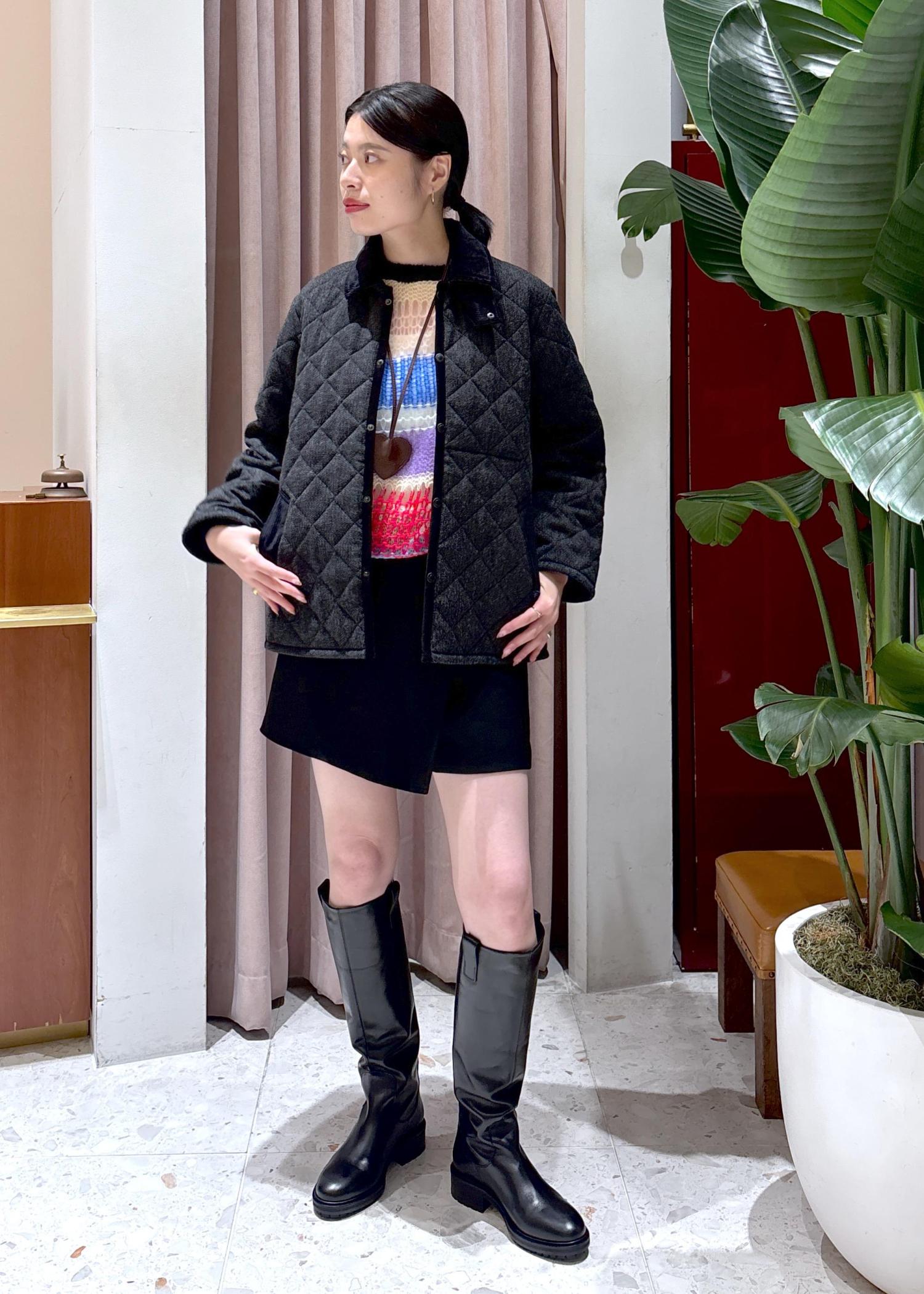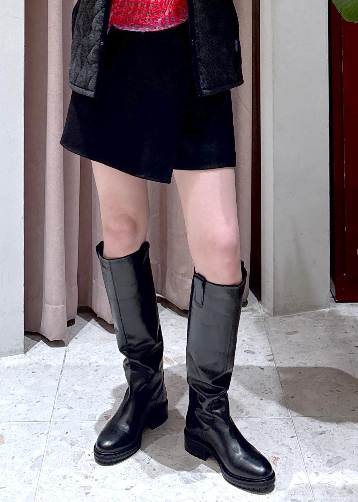 私は今回気になっていたショートパンツ+ロングブーツと合わせてみました♪(スカートに見えますが、実はショートパンツなんです!)