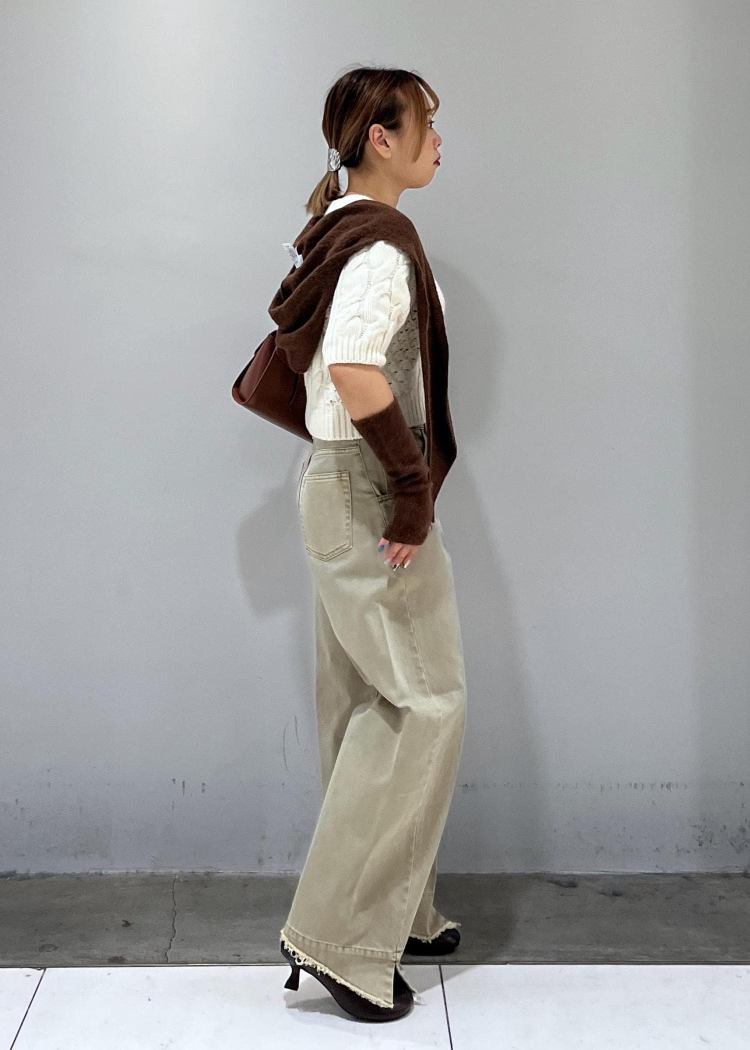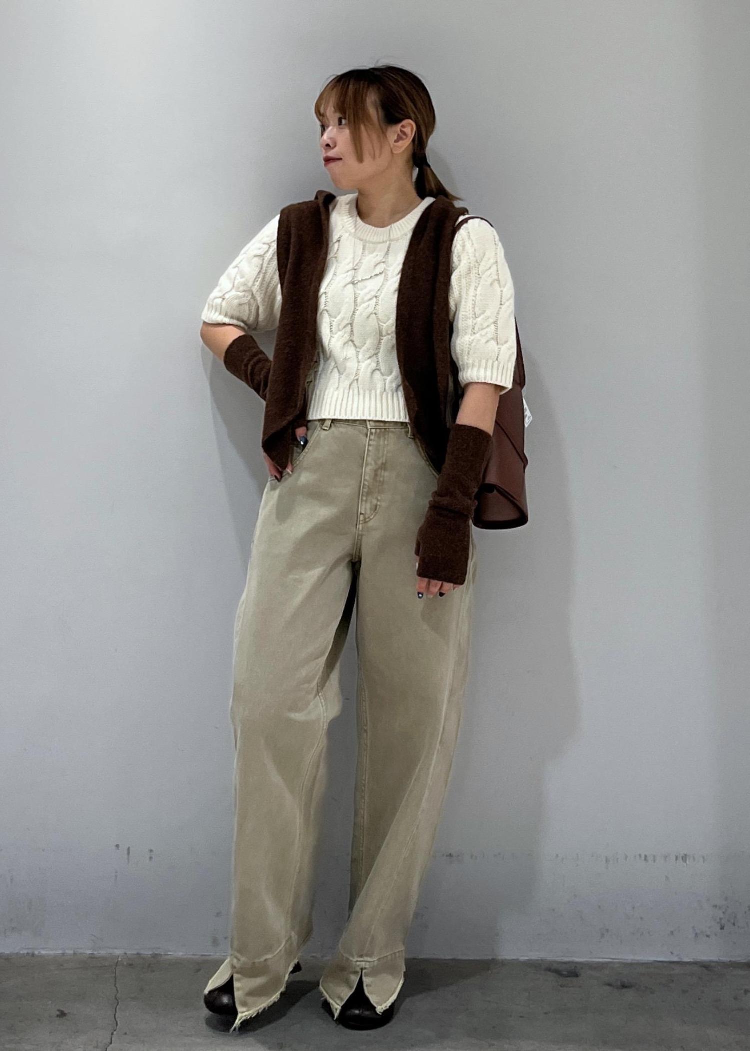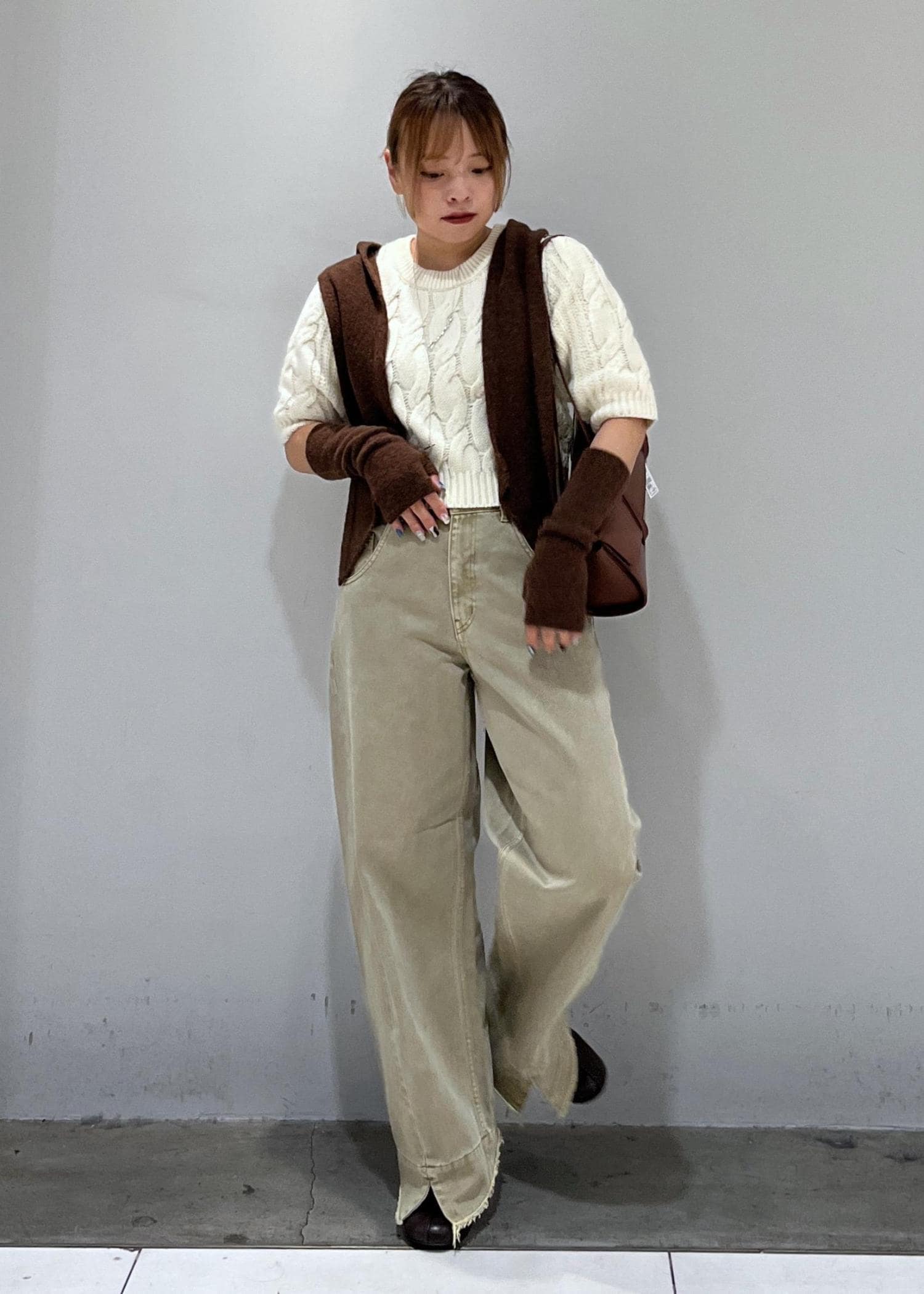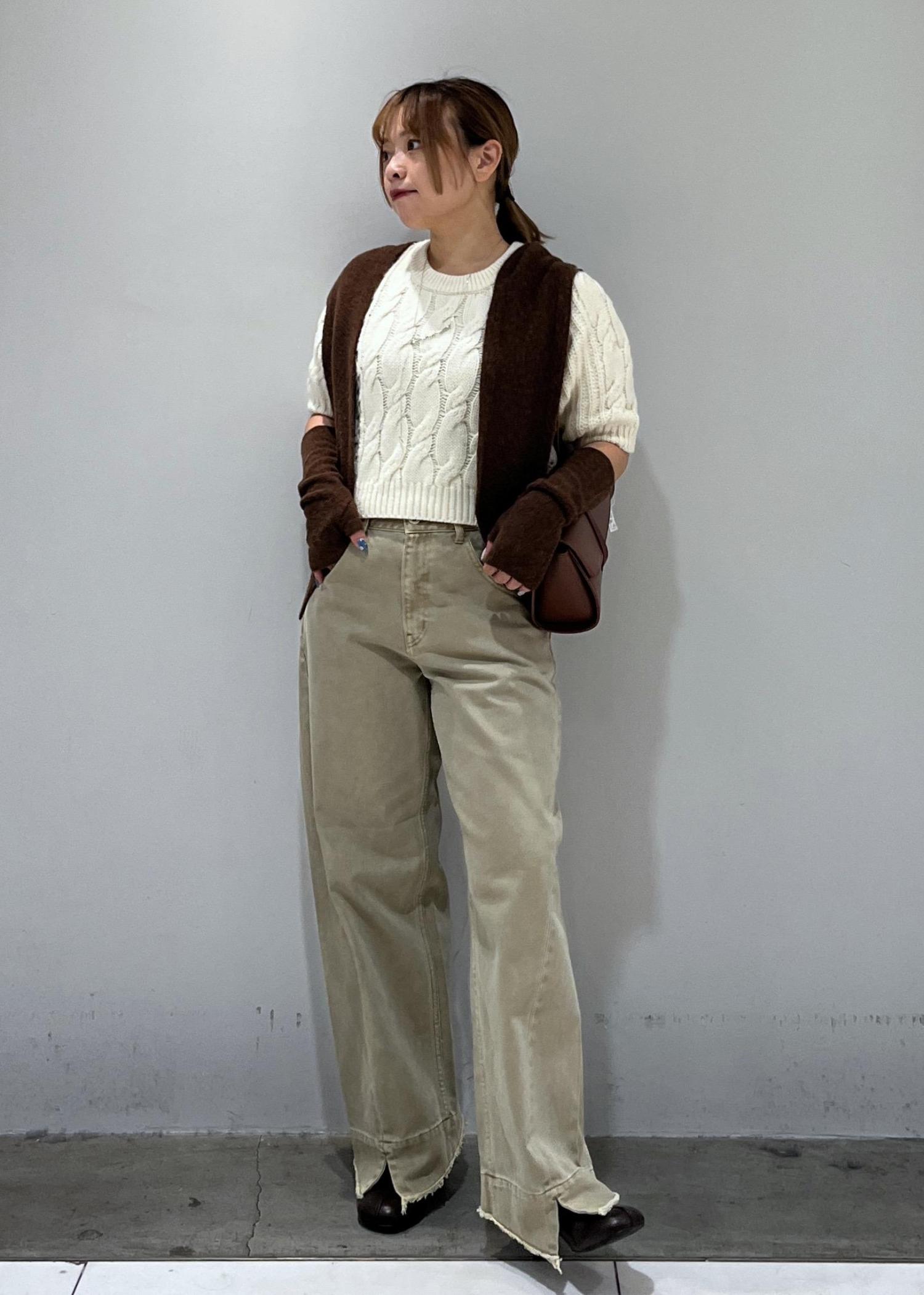 今回は女性らしいハーフスリーブニットに、トレンド感満載のブラウンで差し色を足してみました♡