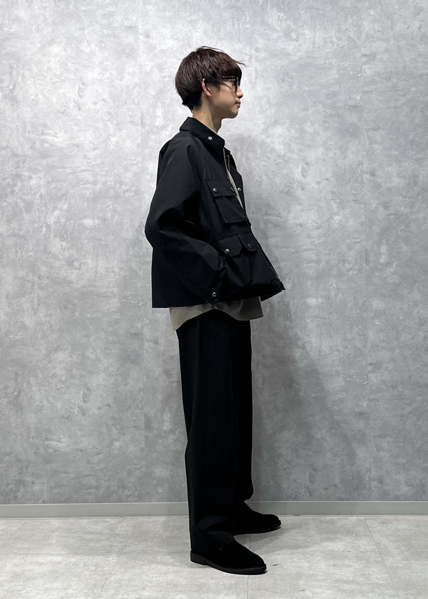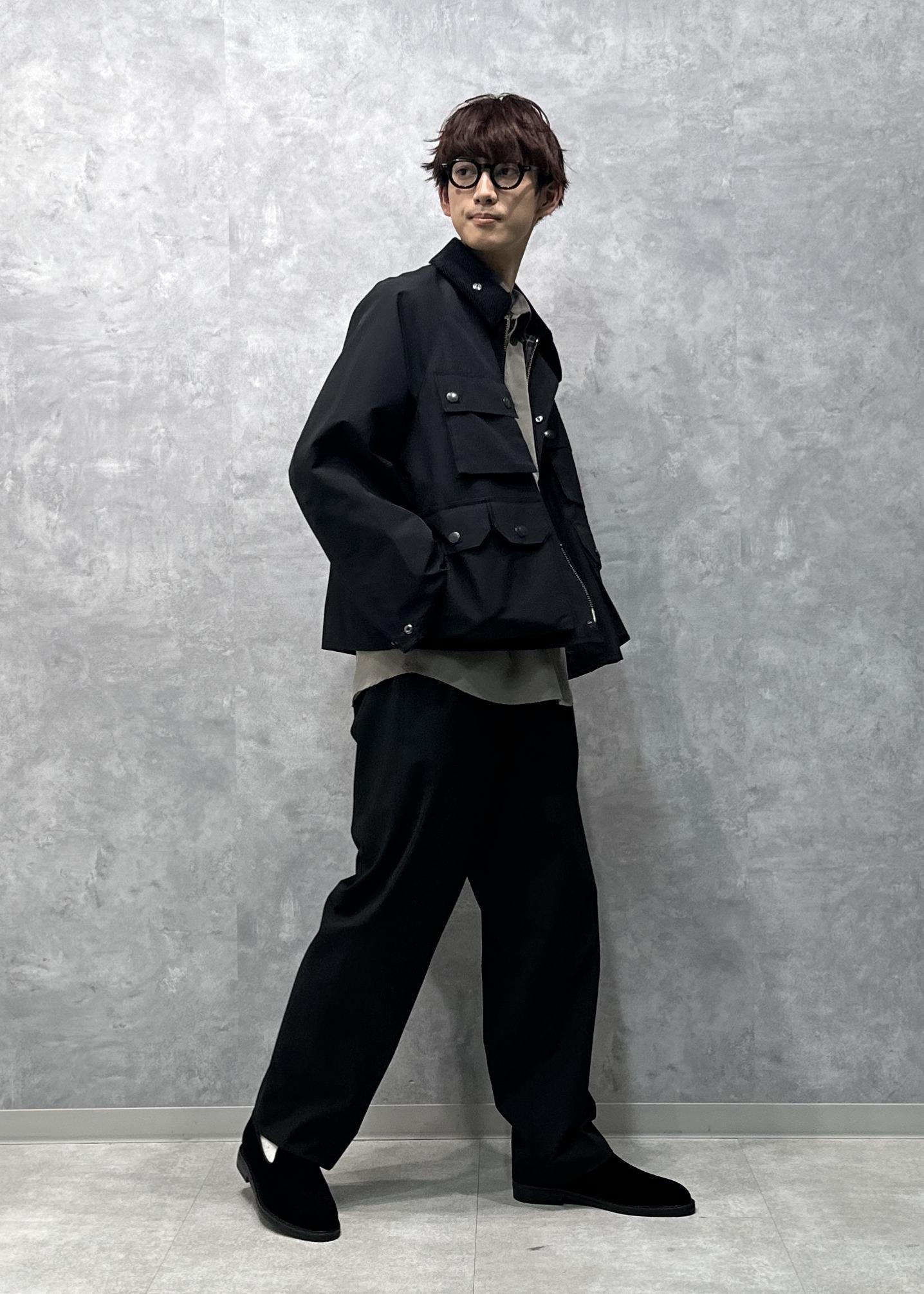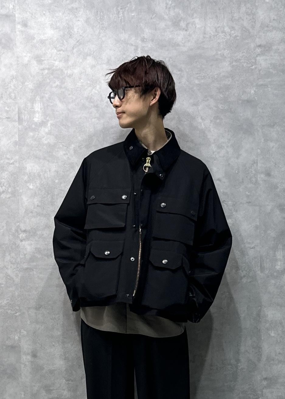 「TRANSPORT」をベースモデルに、ミリタリーやフライフィッシングの要素をインパクトのある4つのアウトポケットとして表現したブルゾン。どこかレインウェア味も感じる雰囲気。ゴールドボタンが高級感溢れていいアクセントに。ダブルジップ、スタンドカラーにもなる仕様です。 -