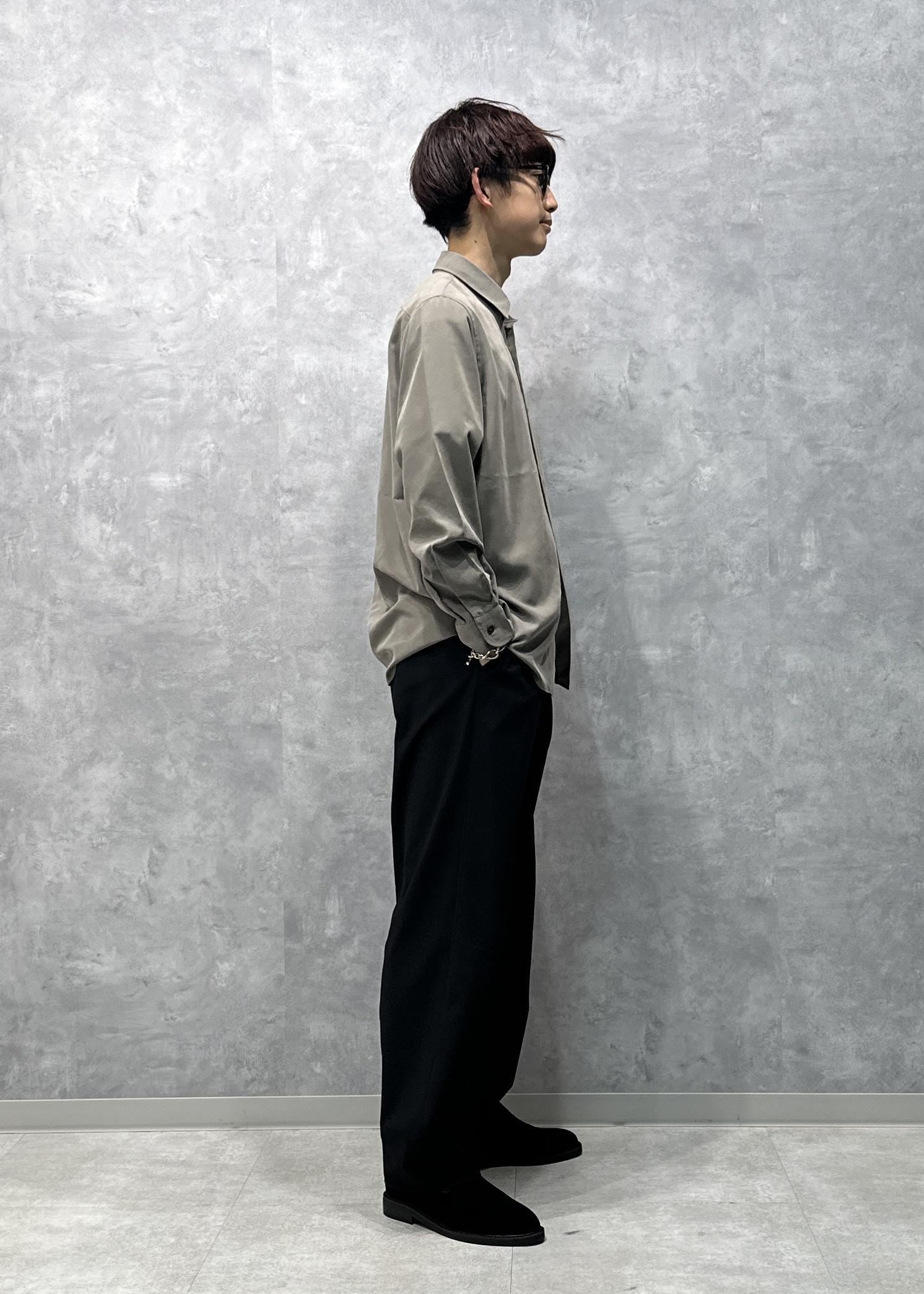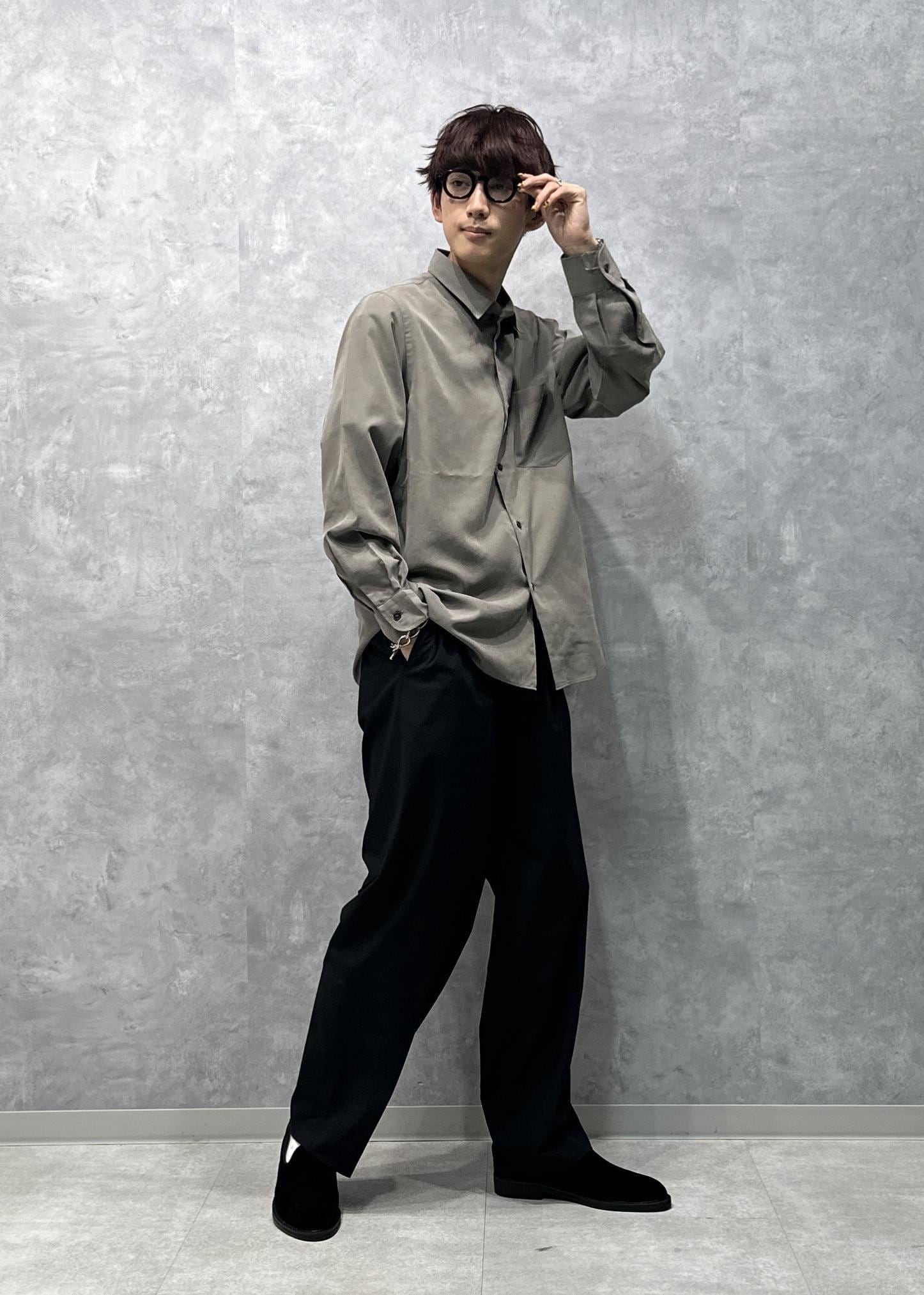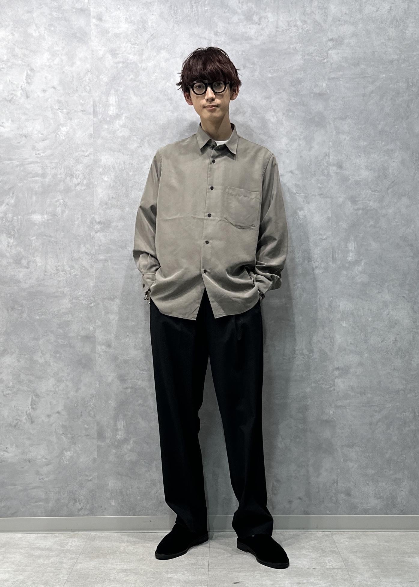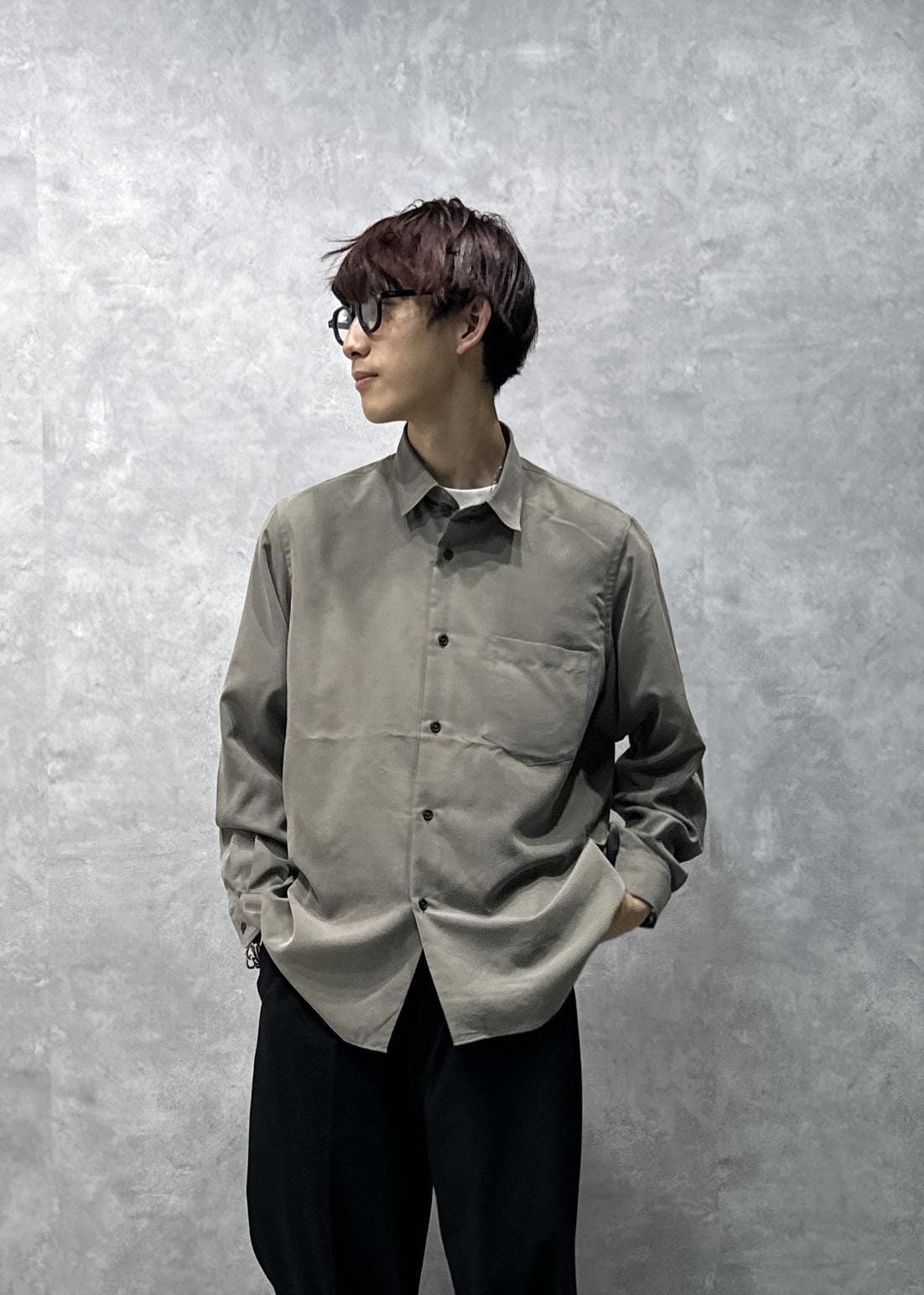 上品な光沢感、程よいドレープ感、滑らかな肌触りが特徴のシャツ。ゆとりのある着心地ながらも、見た目のシルエットはスタイリッシュ。私服にもキレイな場面にも使える、大人見えするシャツです。 -