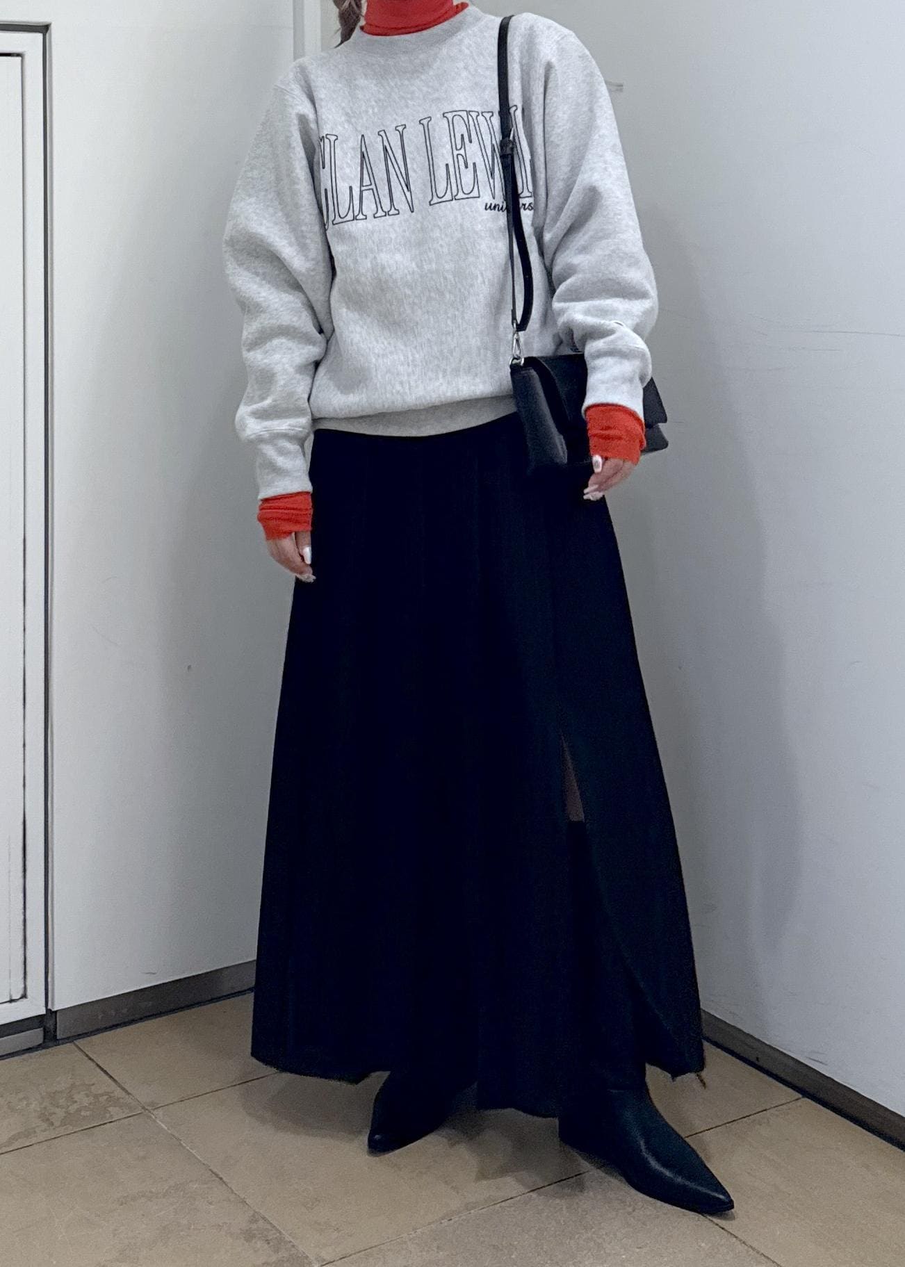 サイドに大胆なスリットが入っていてロングブーツやパンツをレイヤードしても可愛いと思います^_^